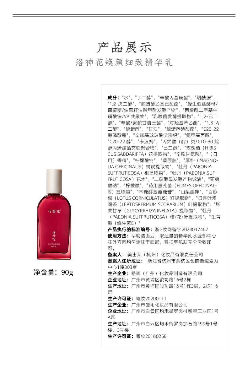 【会员购买送10倍积分】花皙蔻洛神花焕肤细致精华乳90g