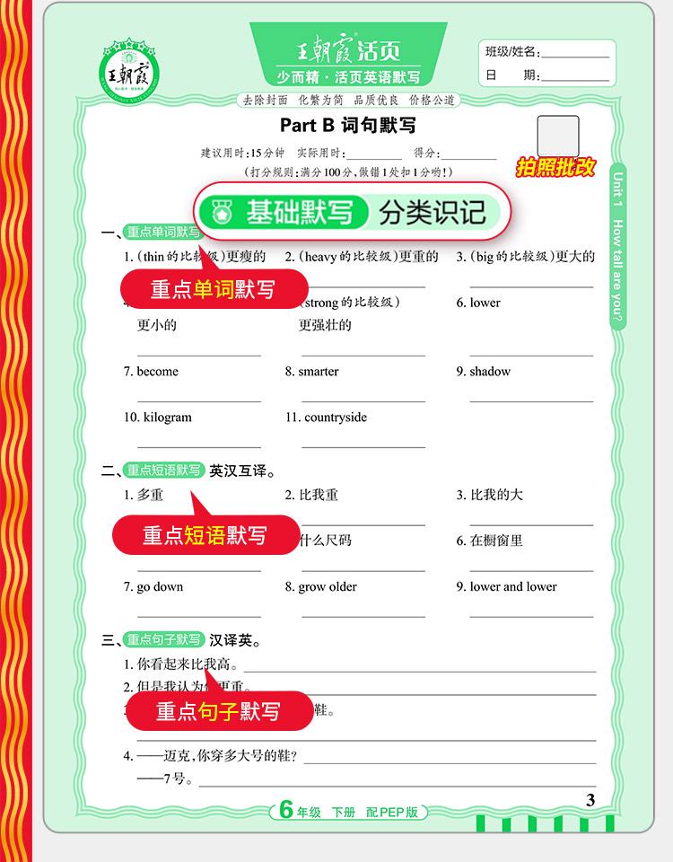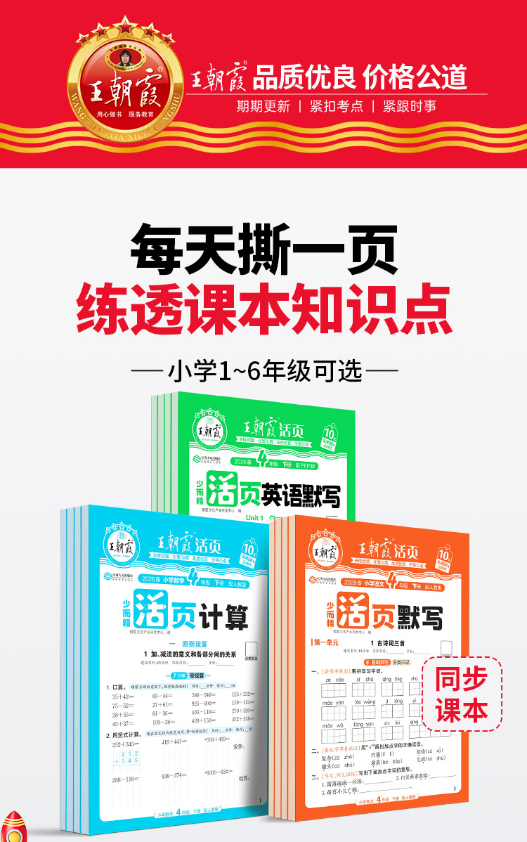 【秒杀】2026春王朝霞语文默写+字帖+计算+英语默写3年级下册-人教版1-6年级