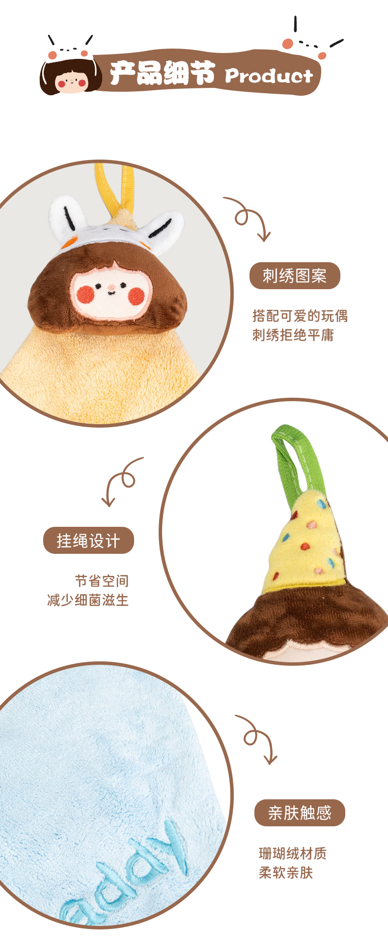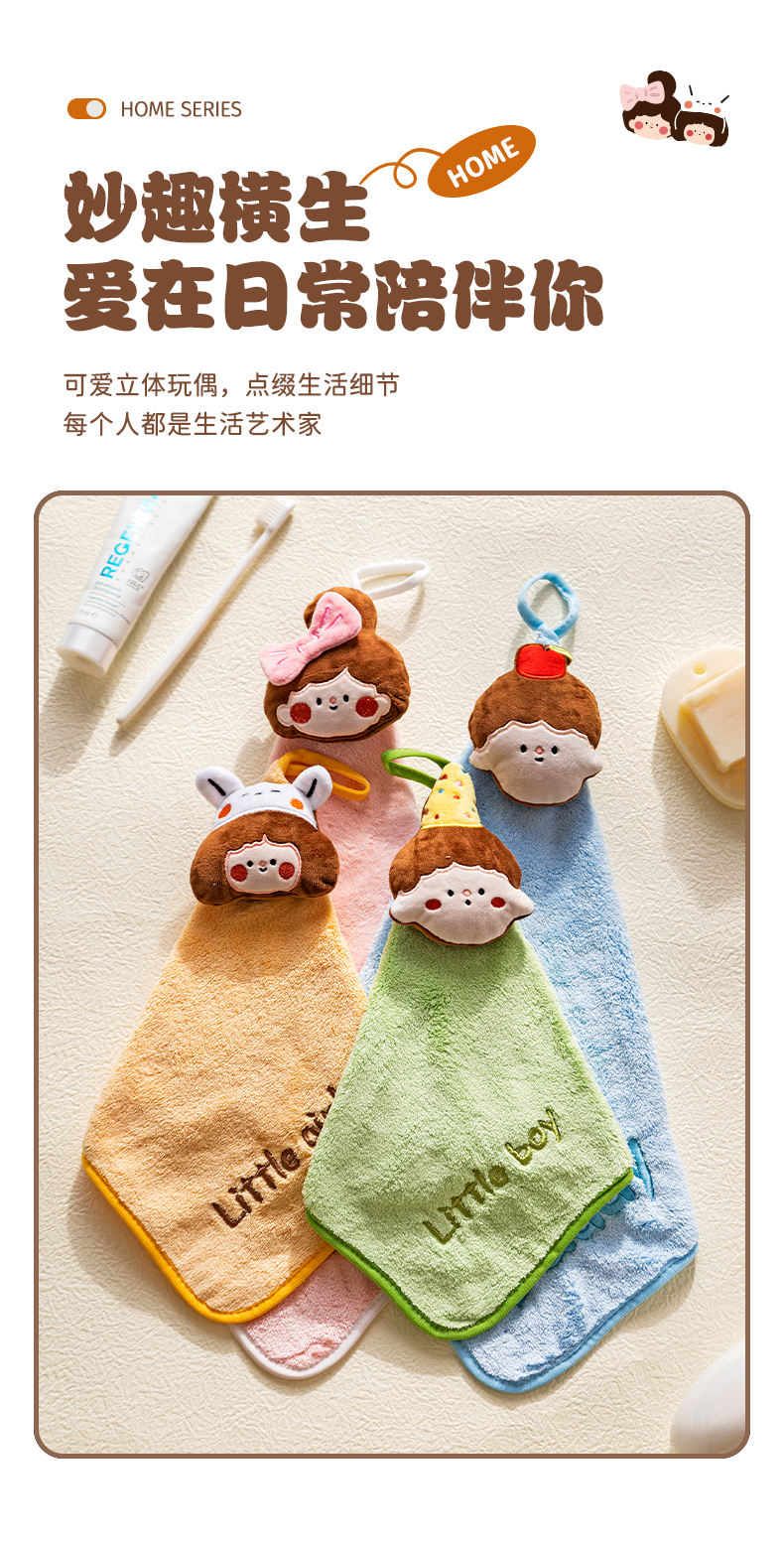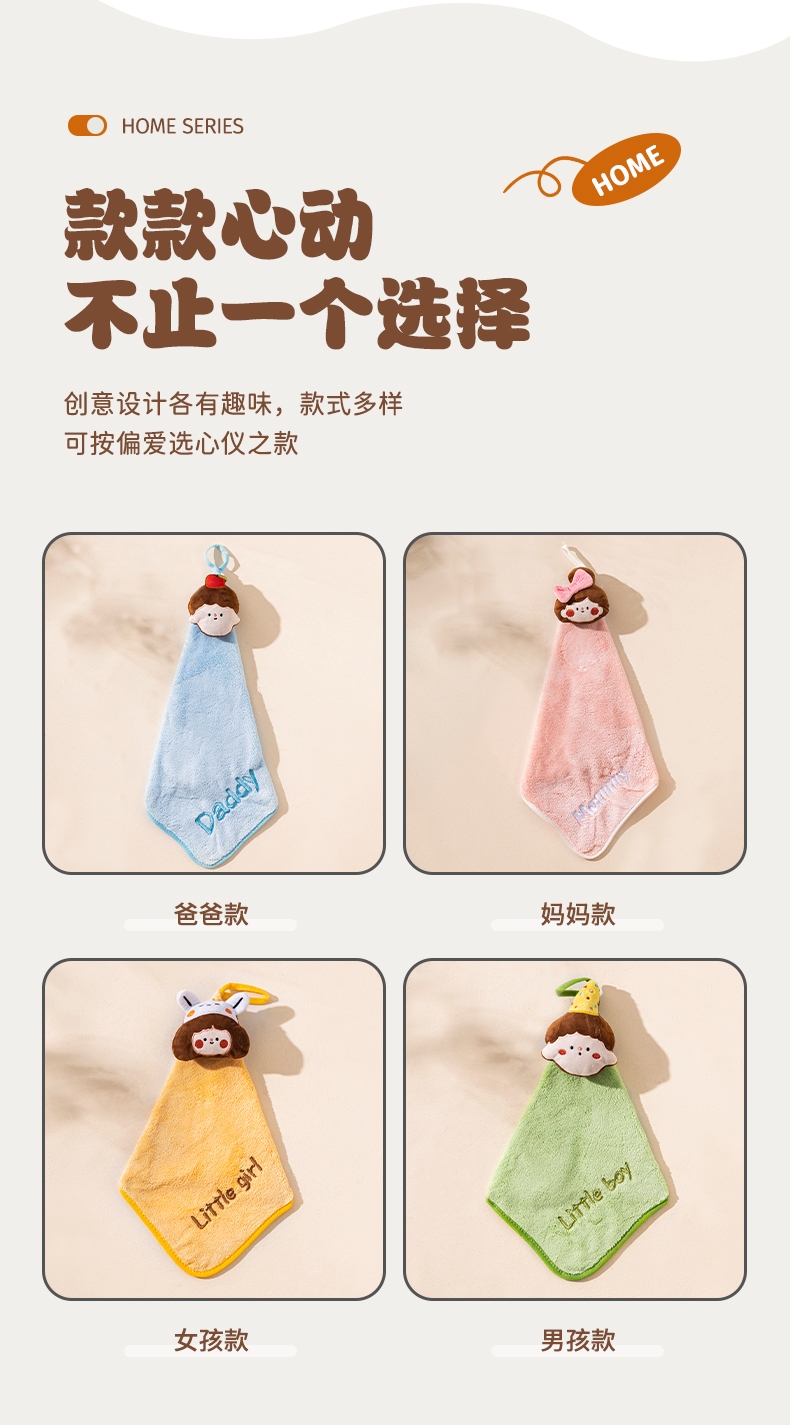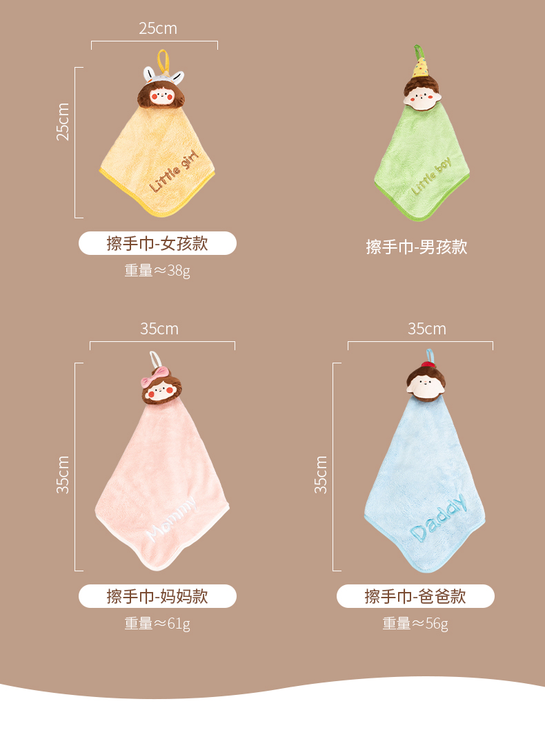 摩登主妇一家三口擦手巾可爱儿童小方巾挂式吸水速干珊瑚绒不掉毛