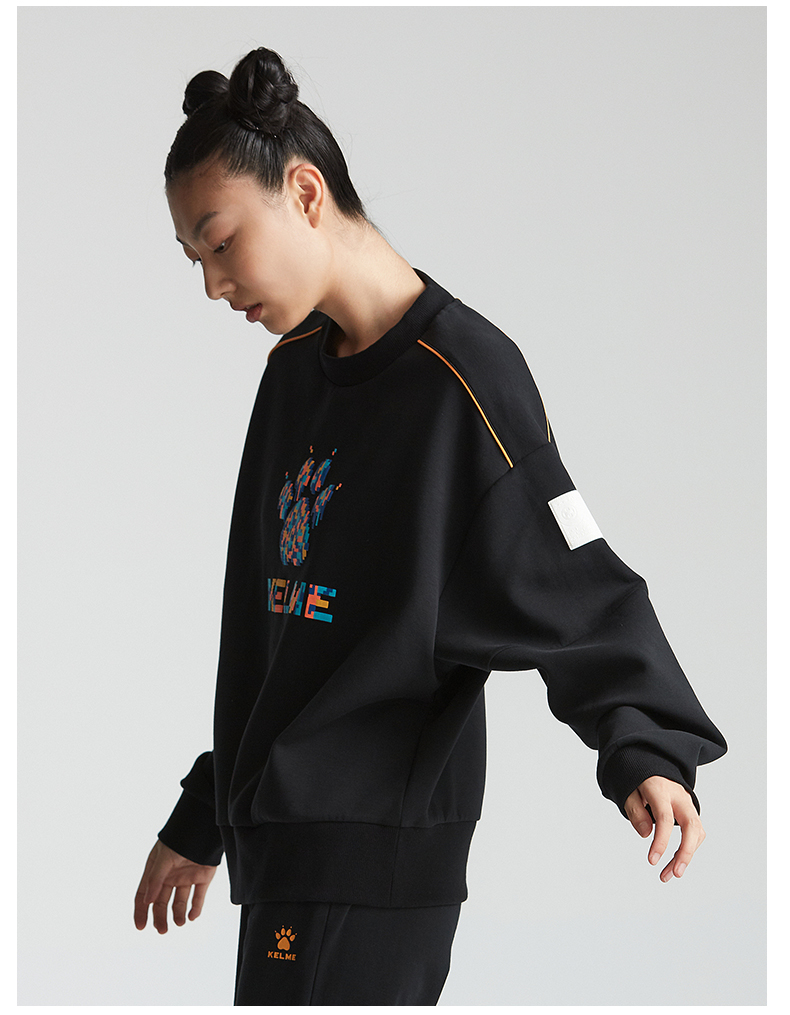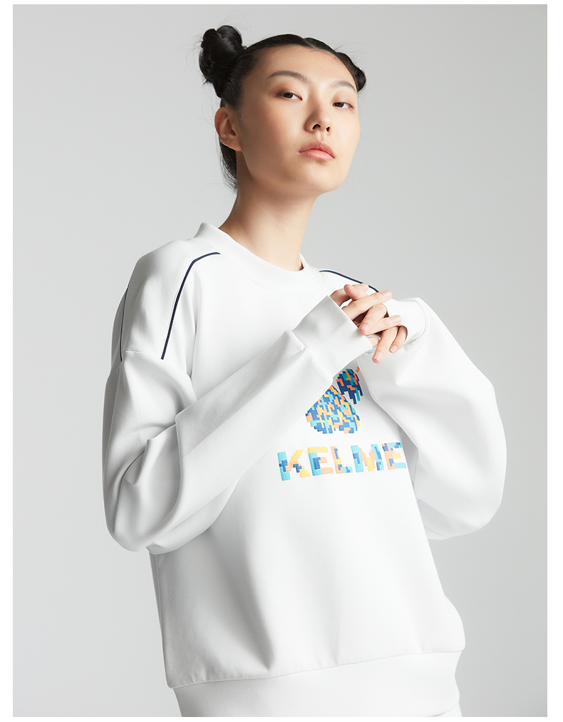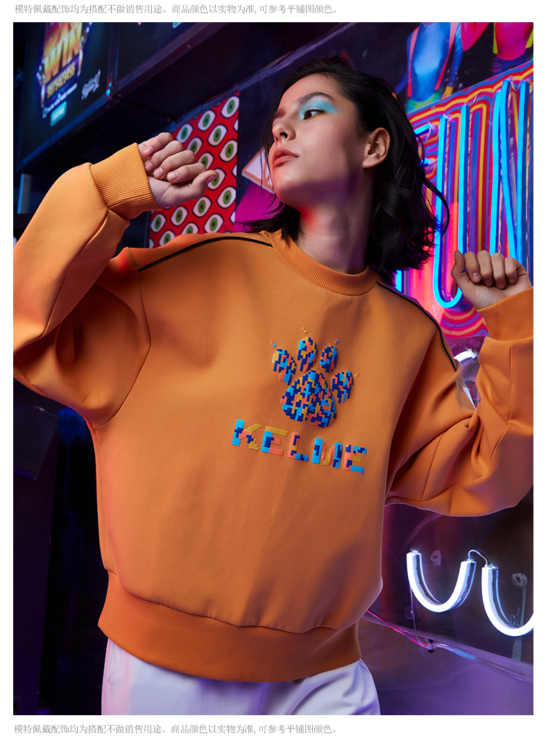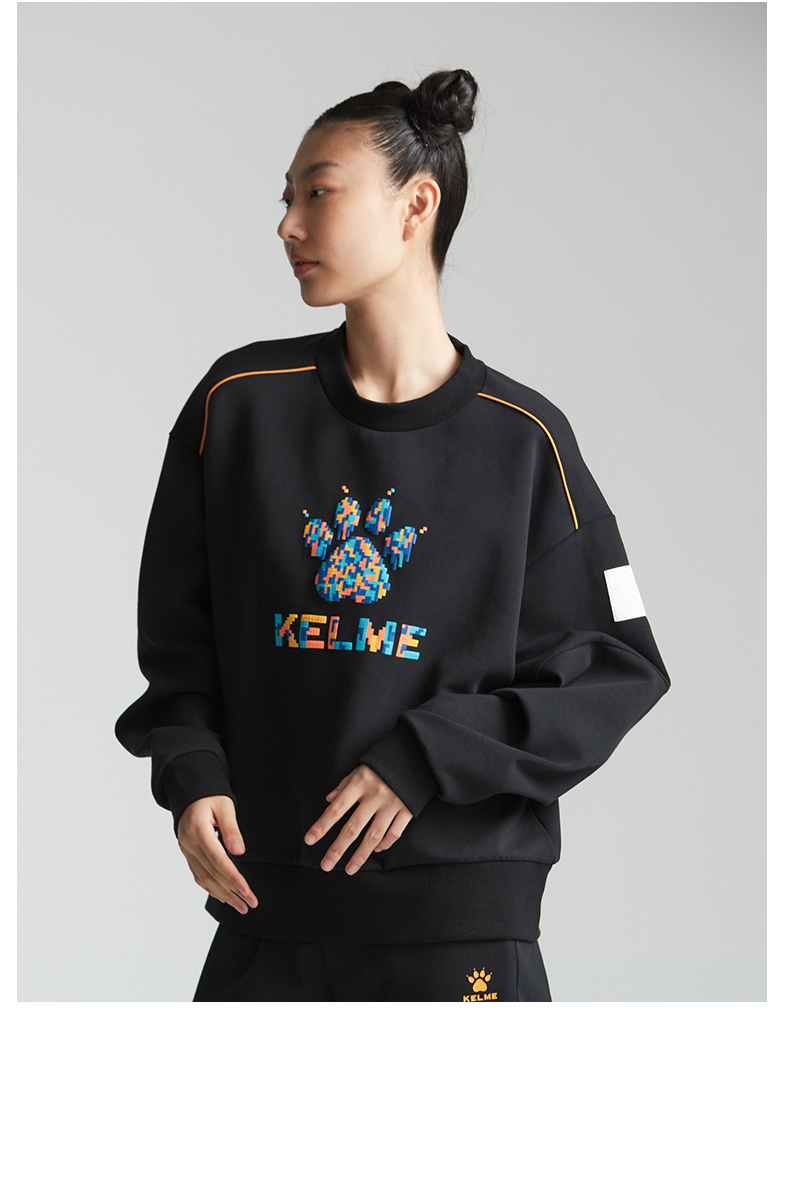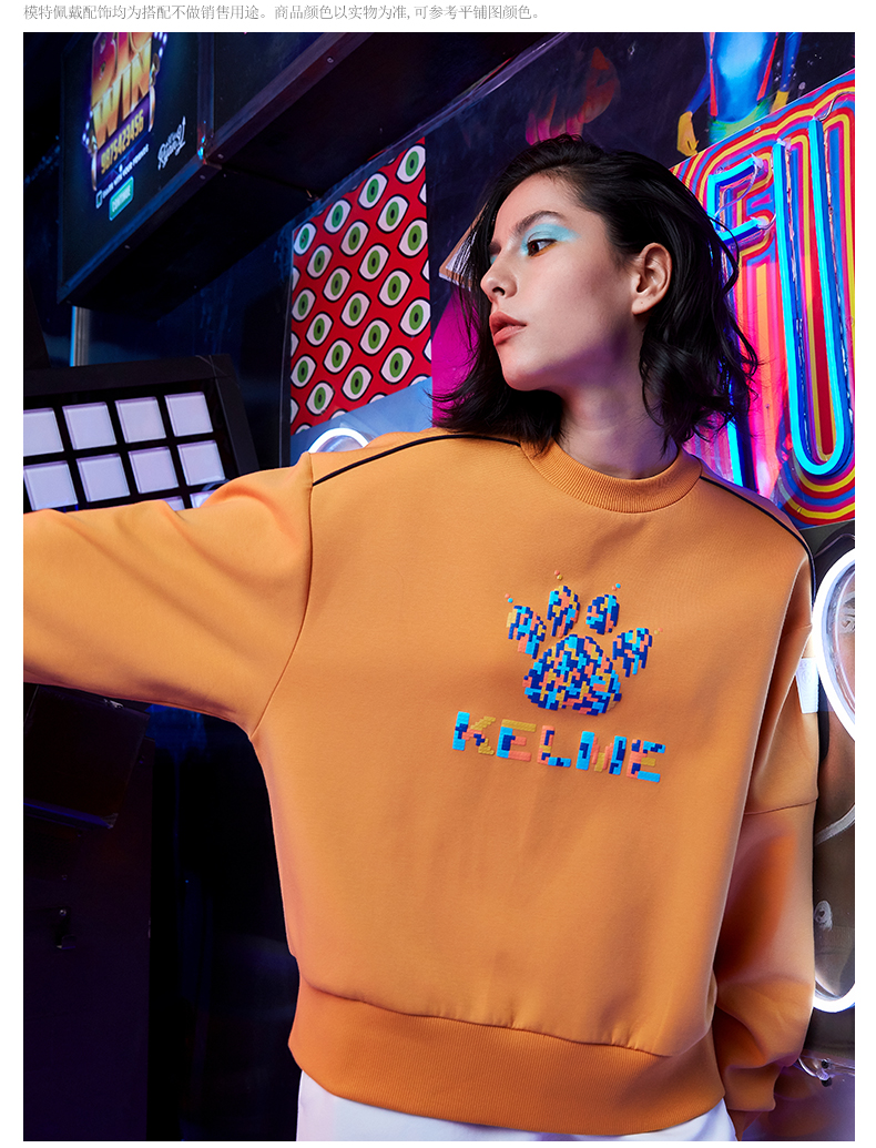 卡尔美秋冬彩色方块撞色图案套头卫衣女宽松休闲廓形上衣