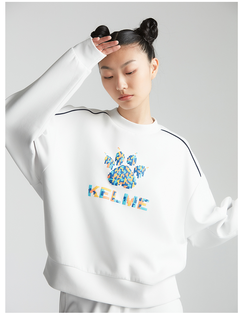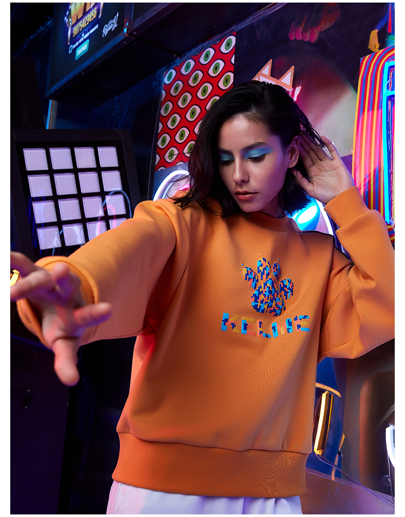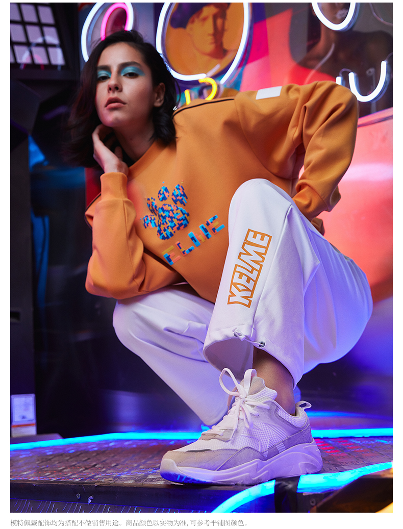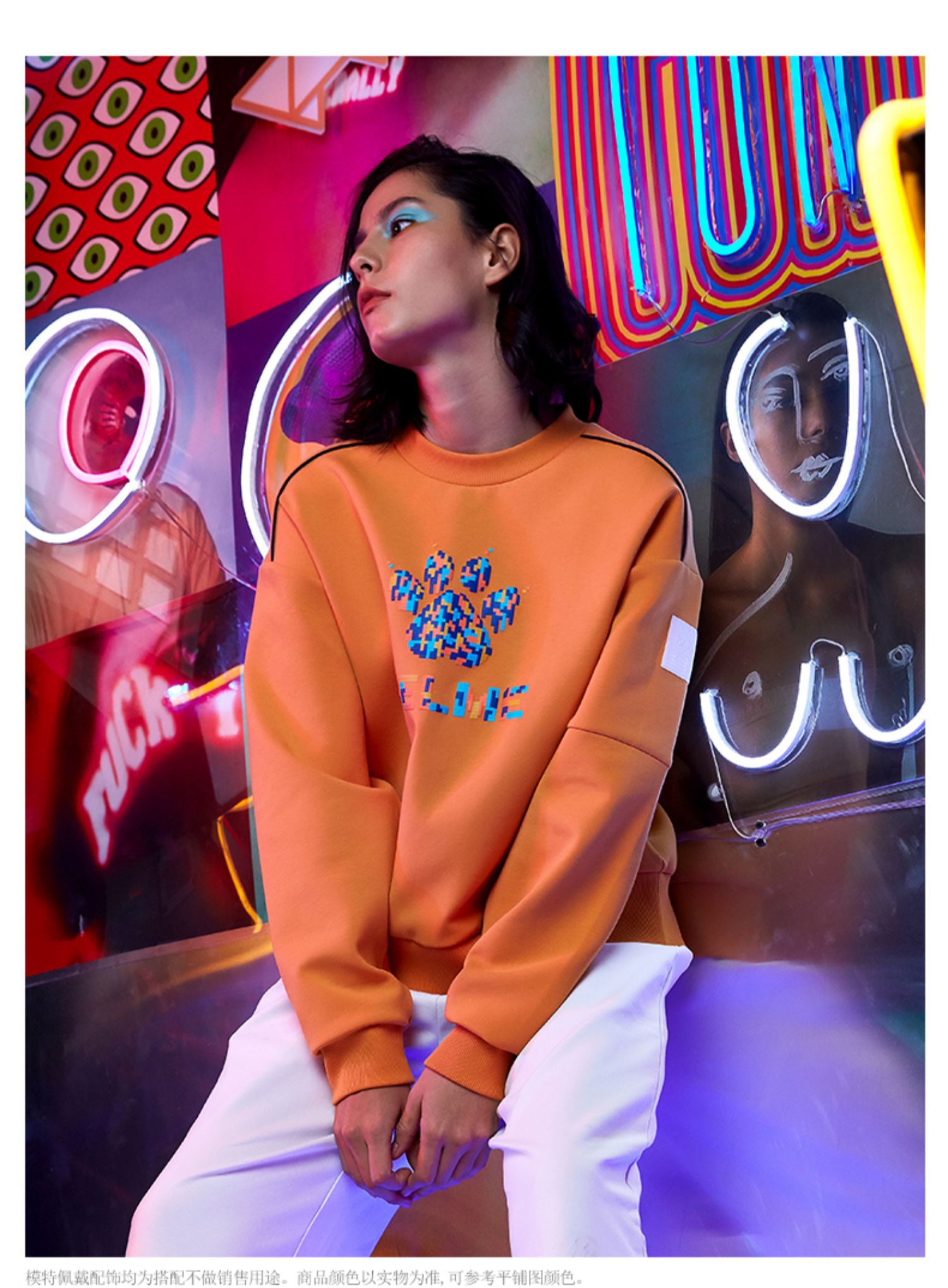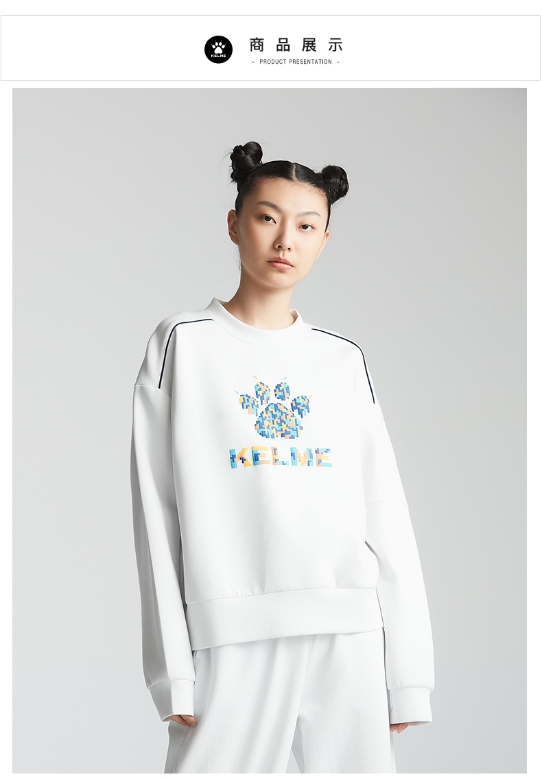 卡尔美秋冬彩色方块撞色图案套头卫衣女宽松休闲廓形上衣