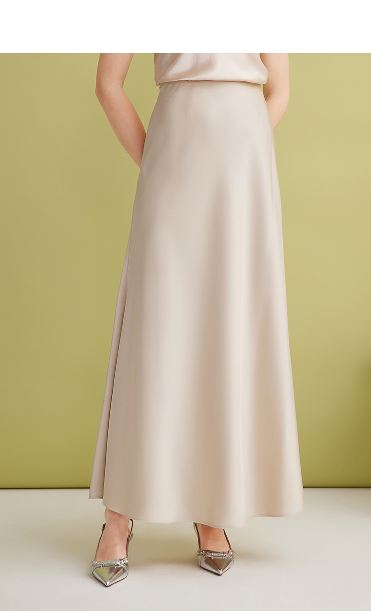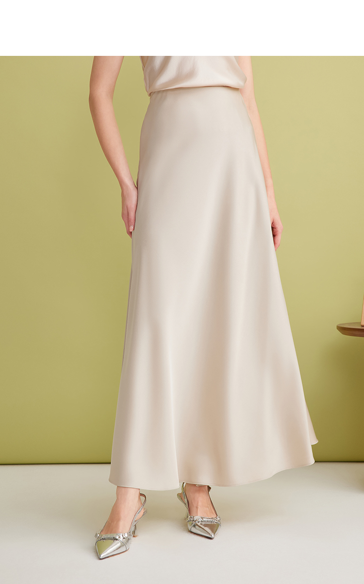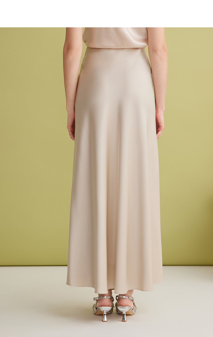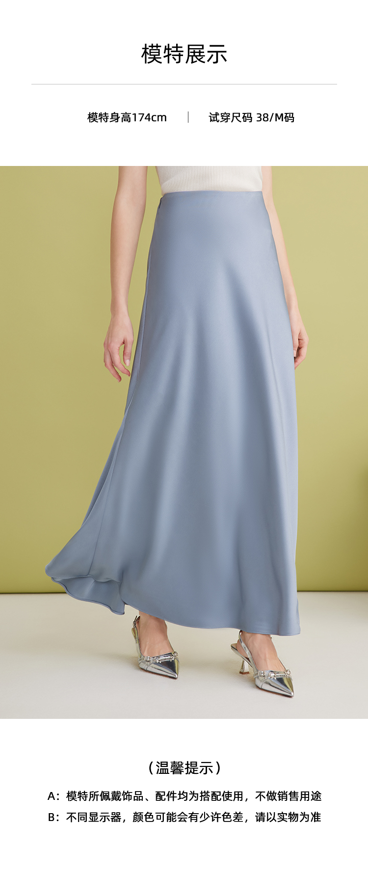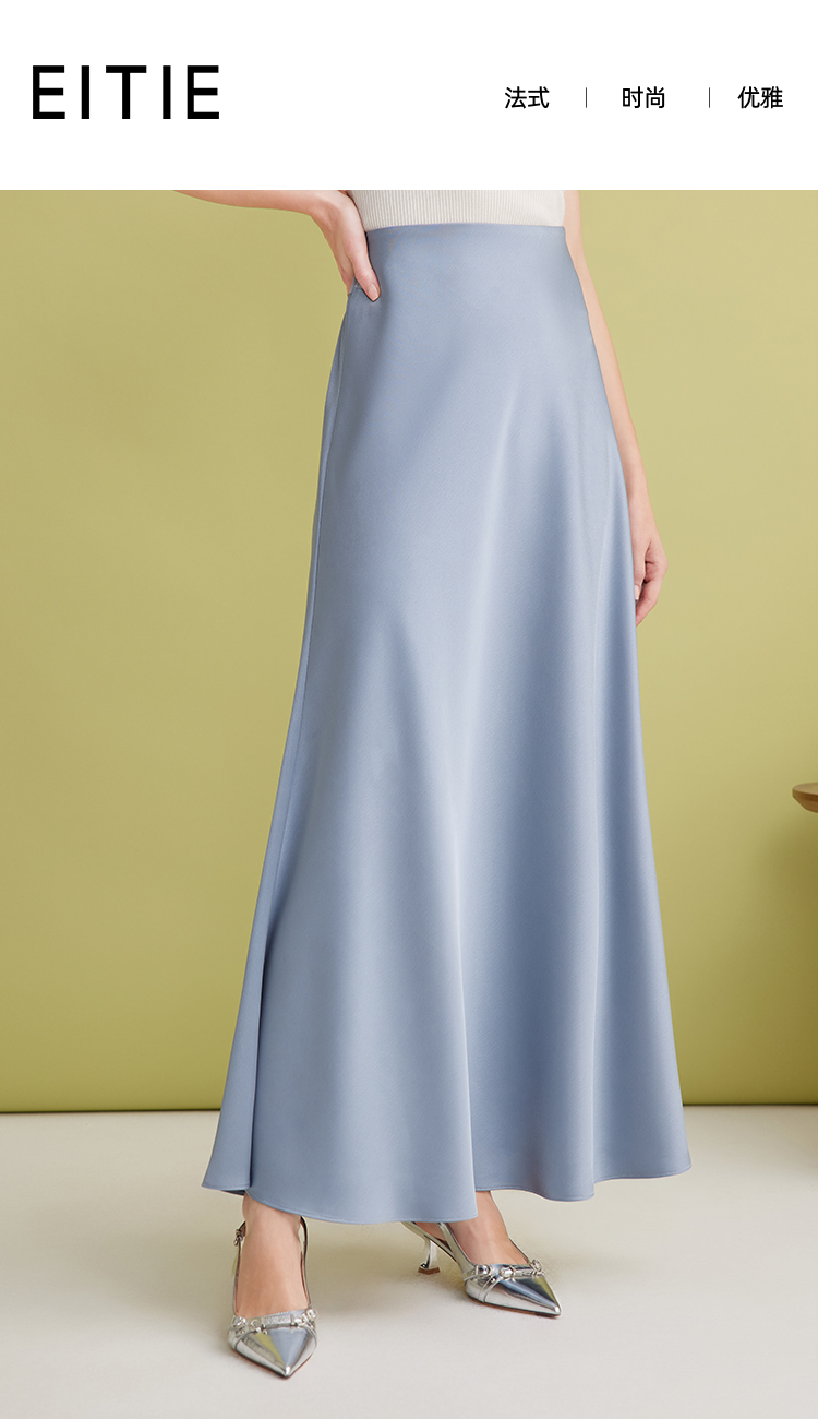 EITIE爱特爱长款及踝垂坠缎面高腰显瘦高级感百搭纯色半身裙2025春季新款A2506513