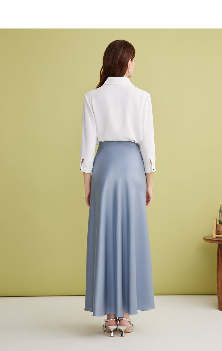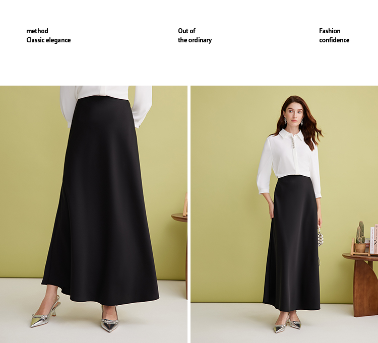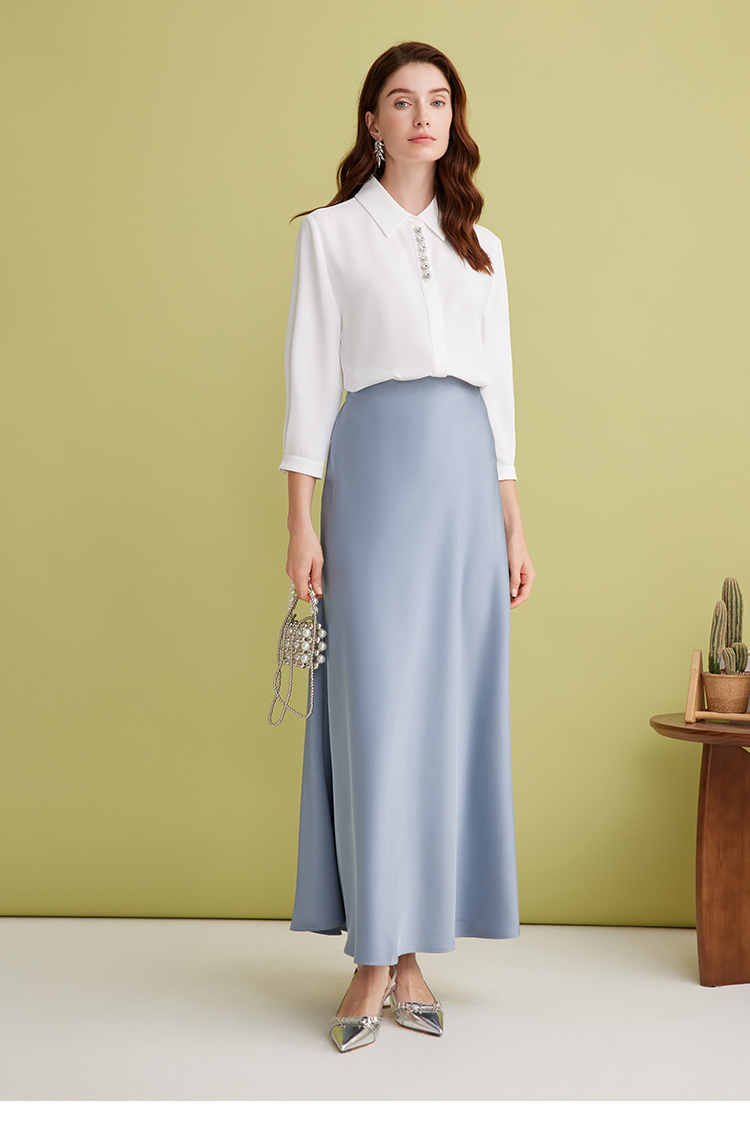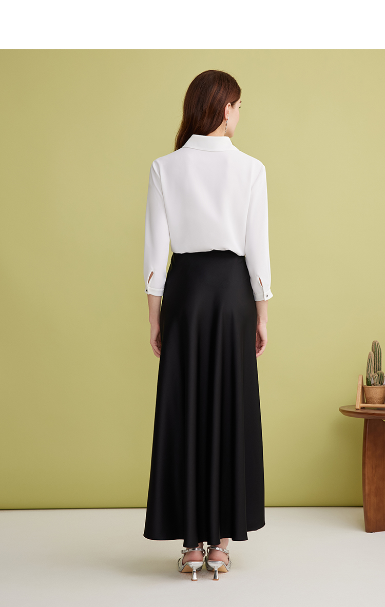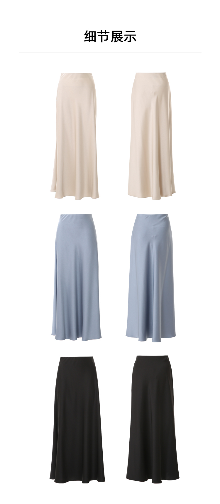EITIE爱特爱长款及踝垂坠缎面高腰显瘦高级感百搭纯色半身裙2025春季新款A2506513