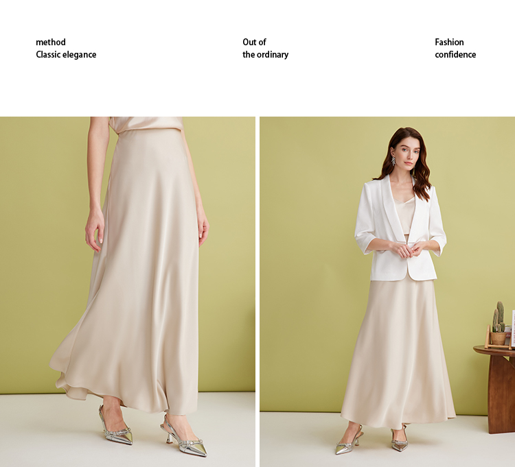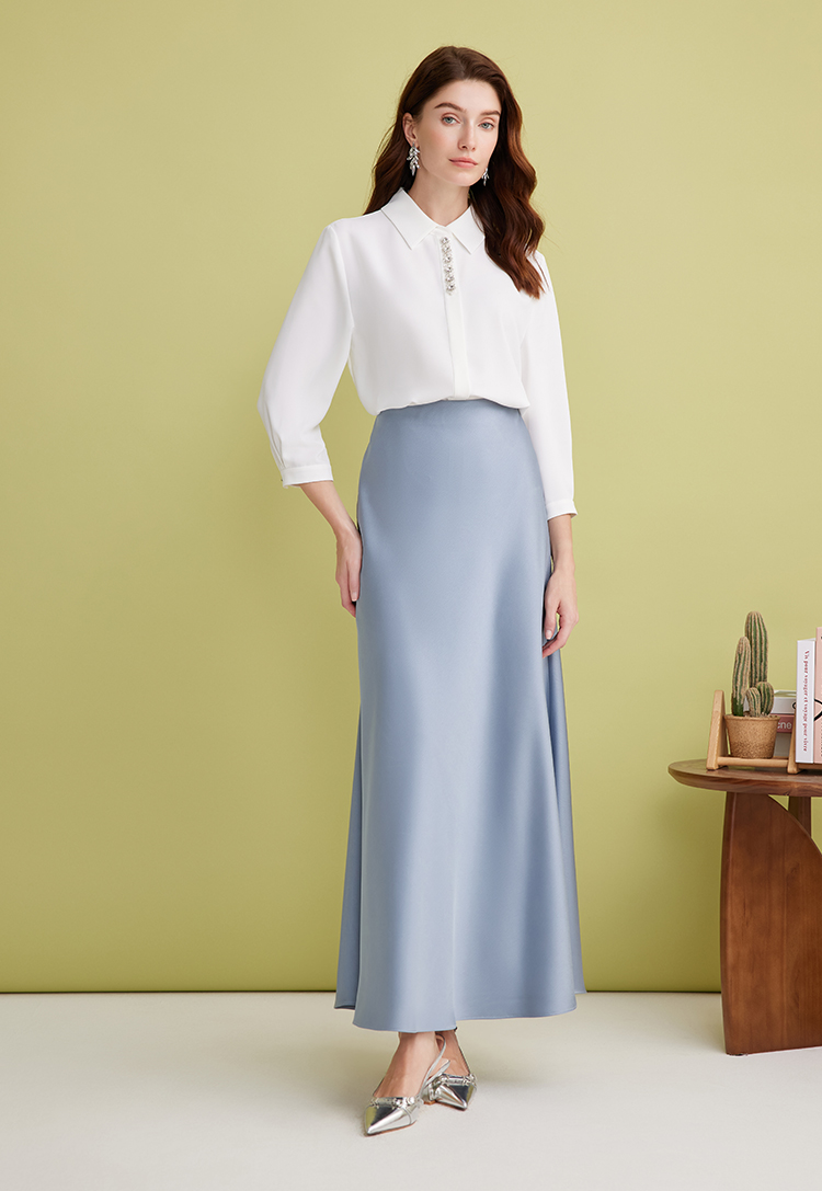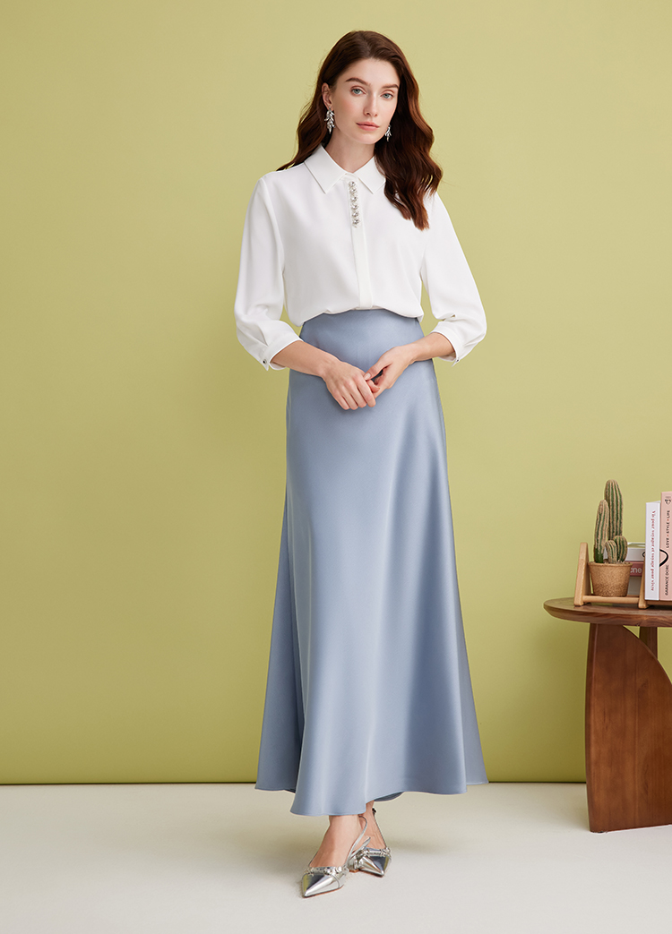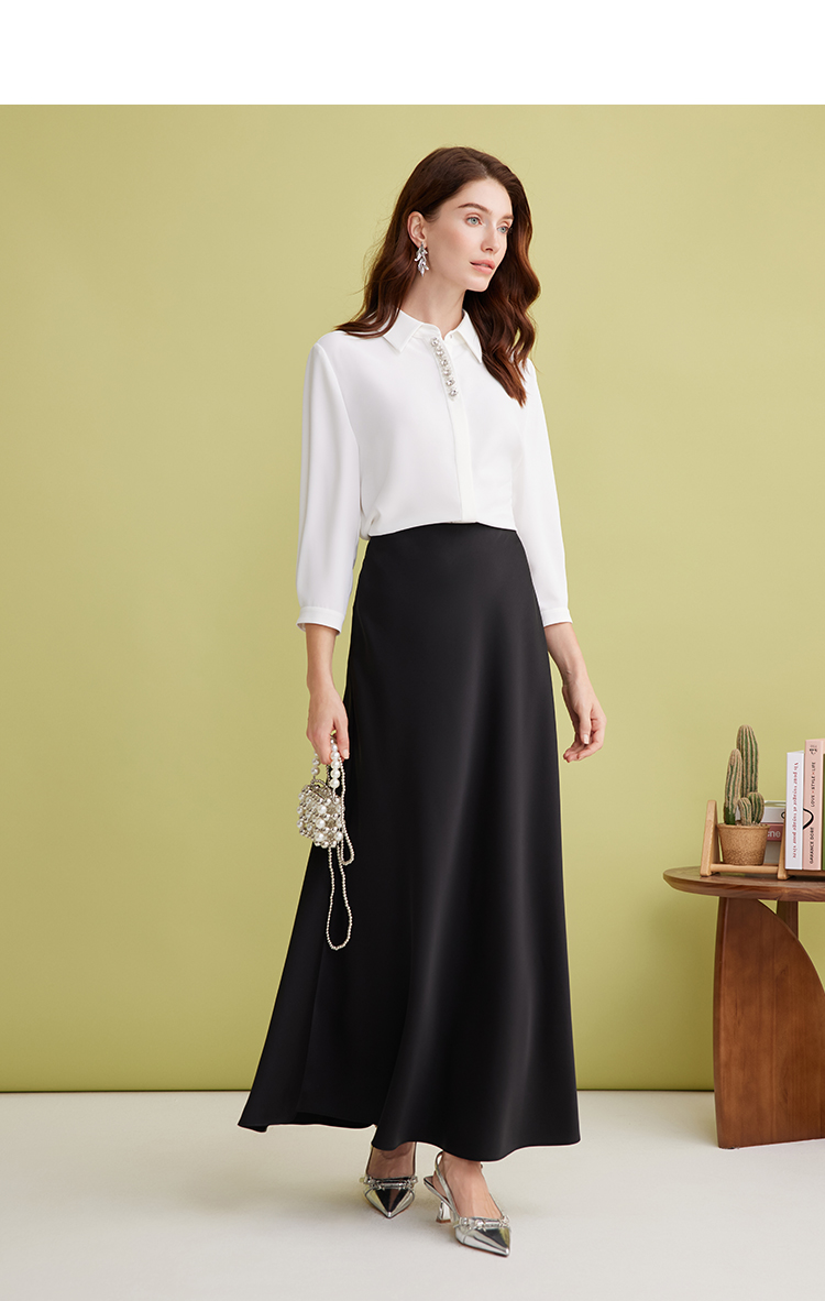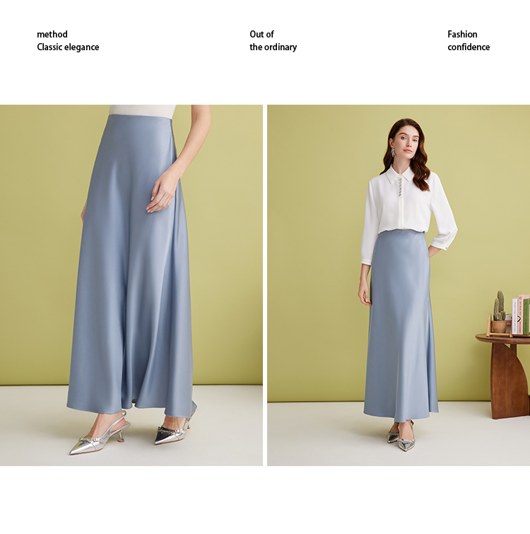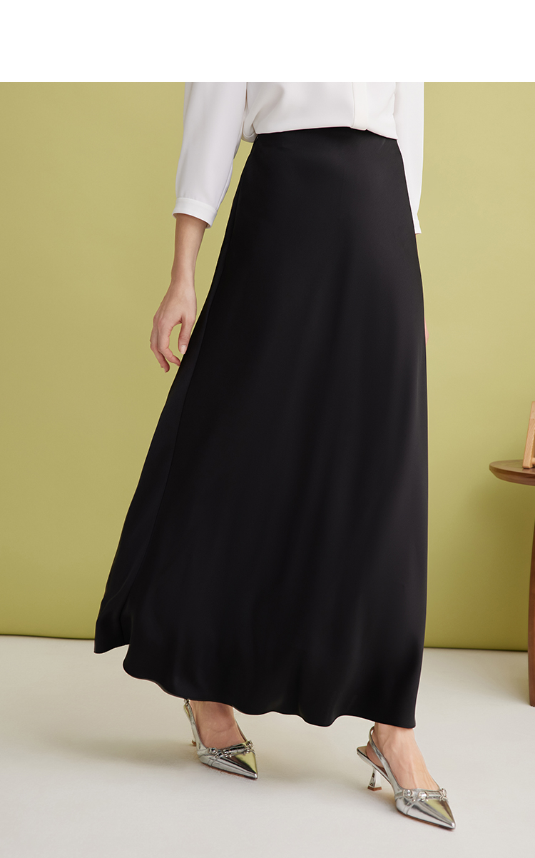EITIE爱特爱长款及踝垂坠缎面高腰显瘦高级感百搭纯色半身裙2025春季新款A2506513