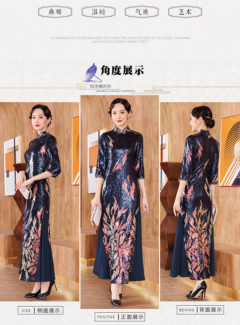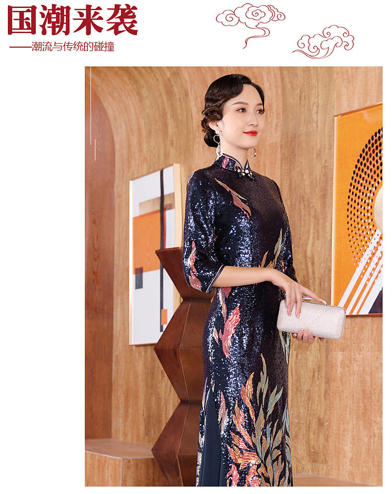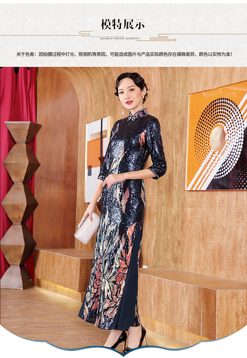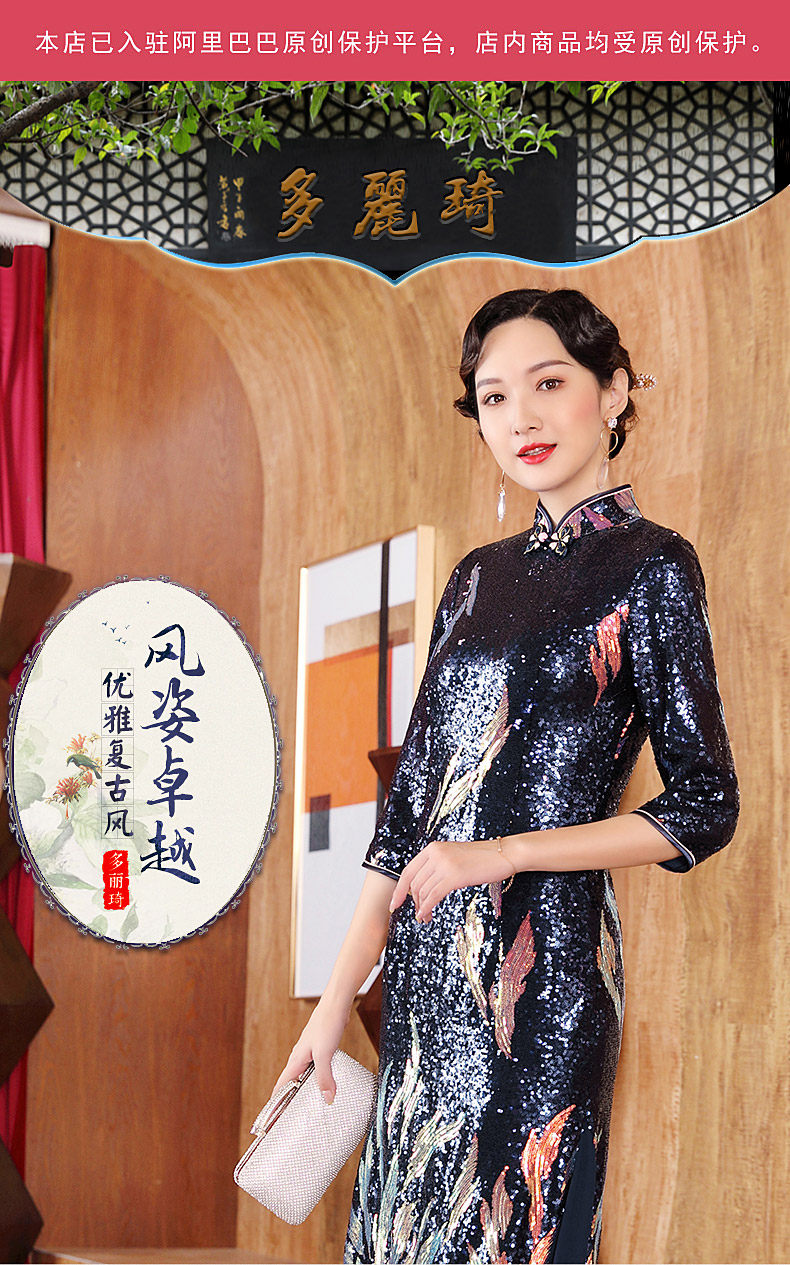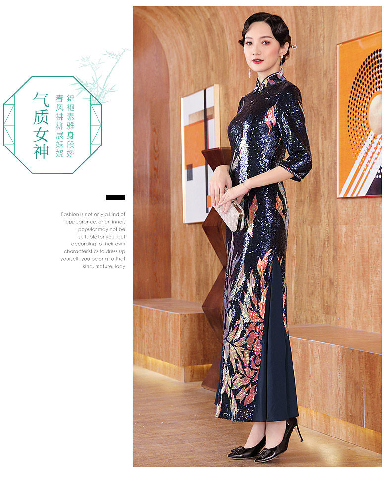 DLQ-A2656改良走秀表演长款秋冬七分袖旗袍式连衣裙