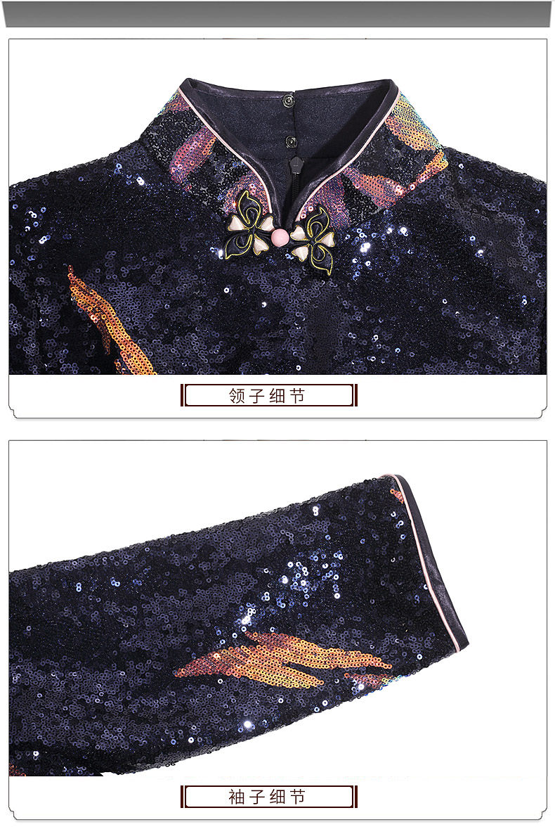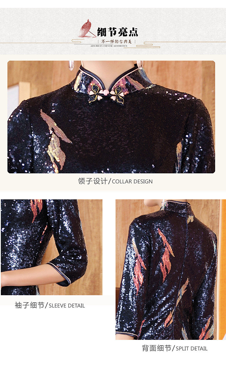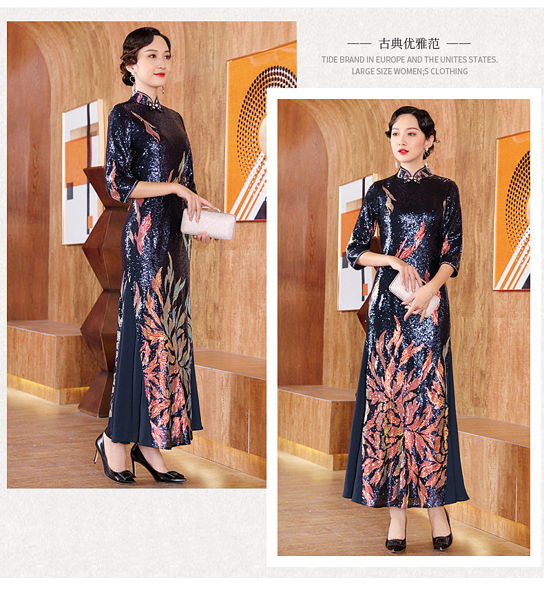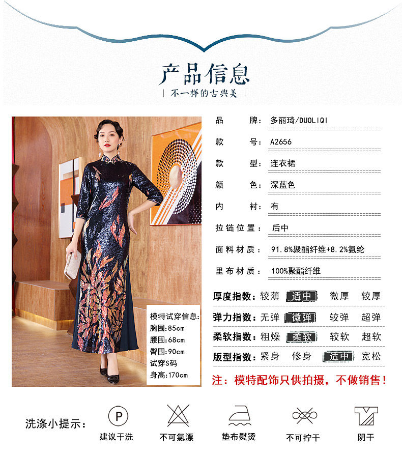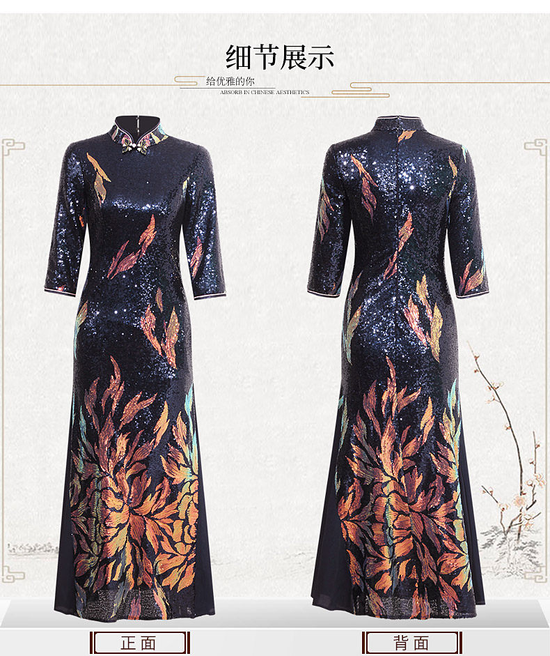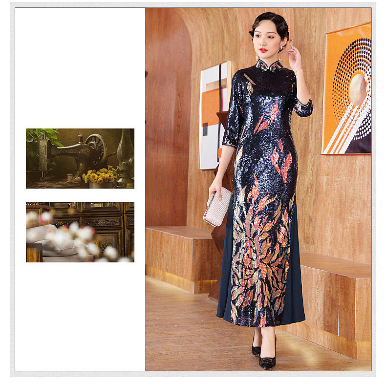DLQ-A2656改良走秀表演长款秋冬七分袖旗袍式连衣裙