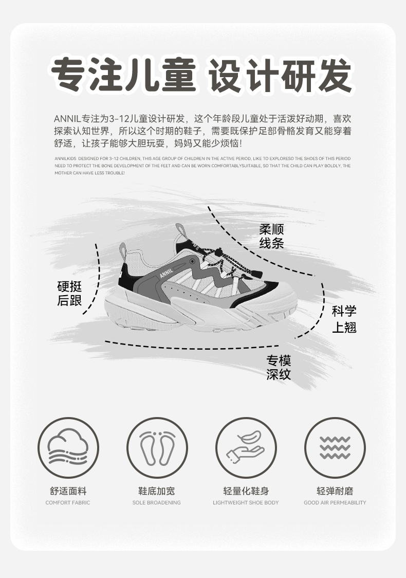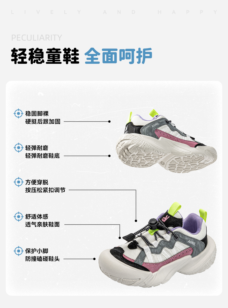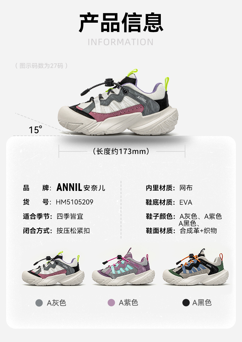 ANNIL/安奈儿女童运动鞋2025春秋新款儿童网面鞋男童跑步鞋中大童休闲鞋HM5105209