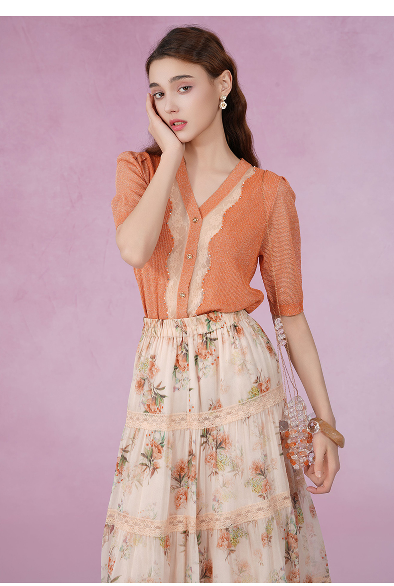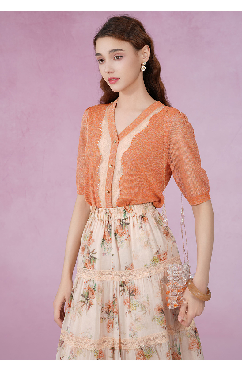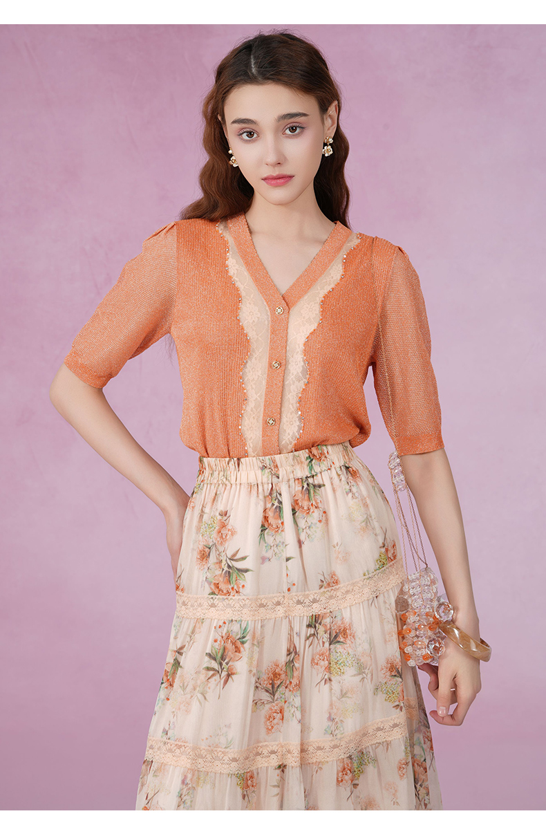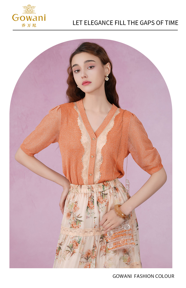 乔万尼针织衫短袖女夏季薄款拼接设计感EM2M856
