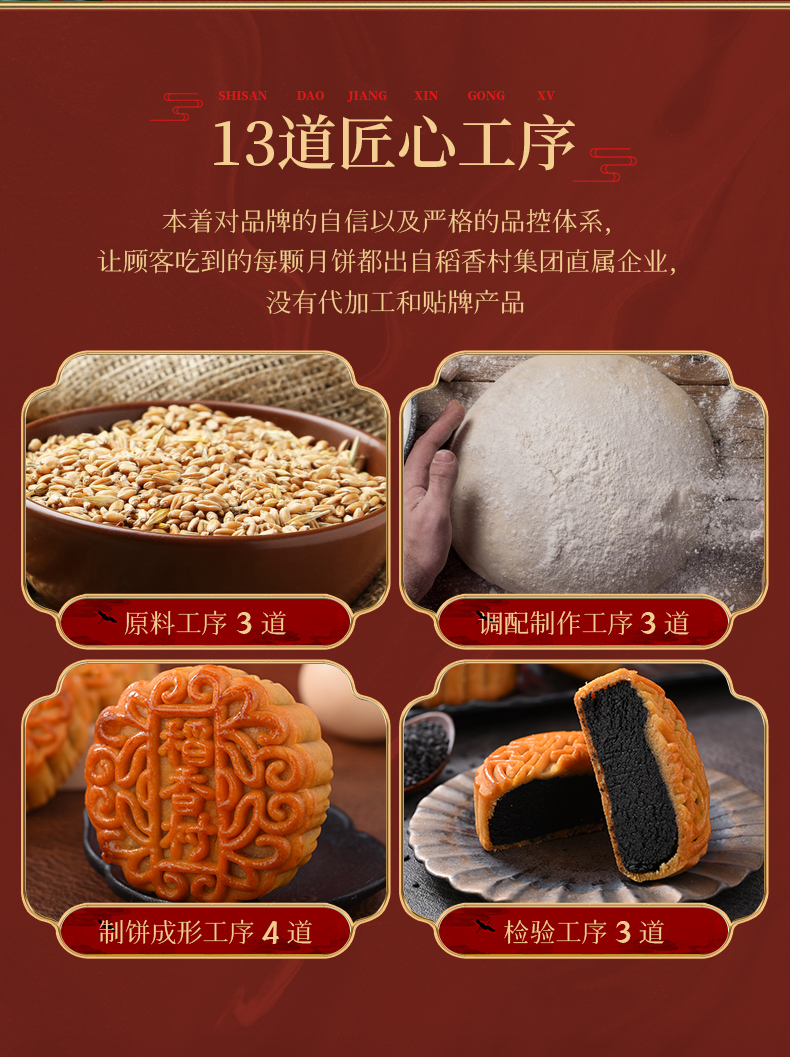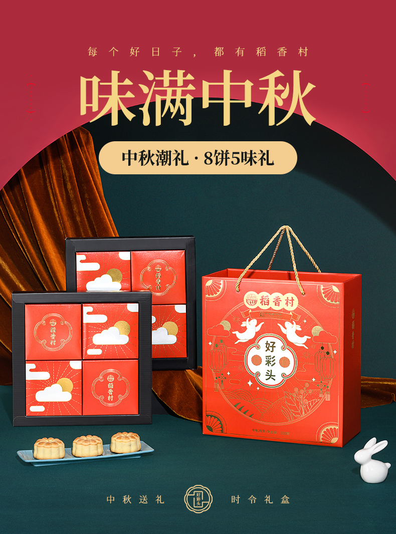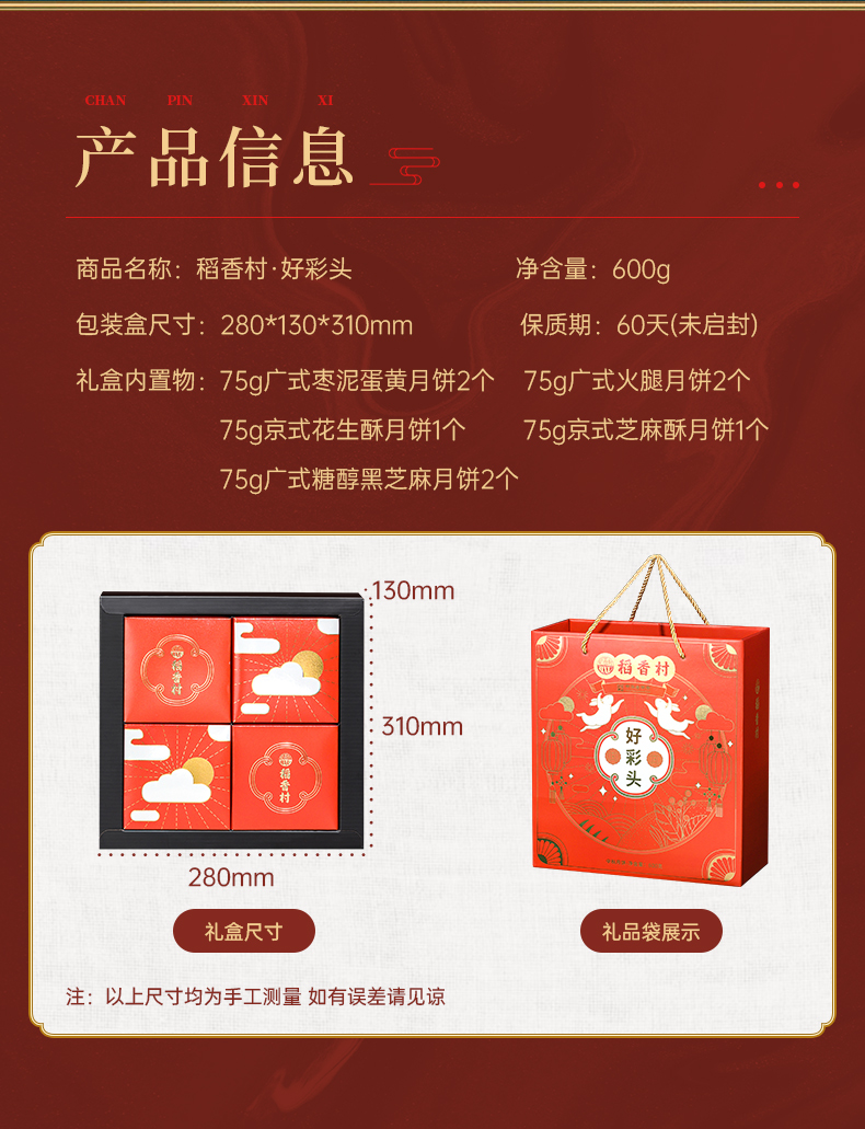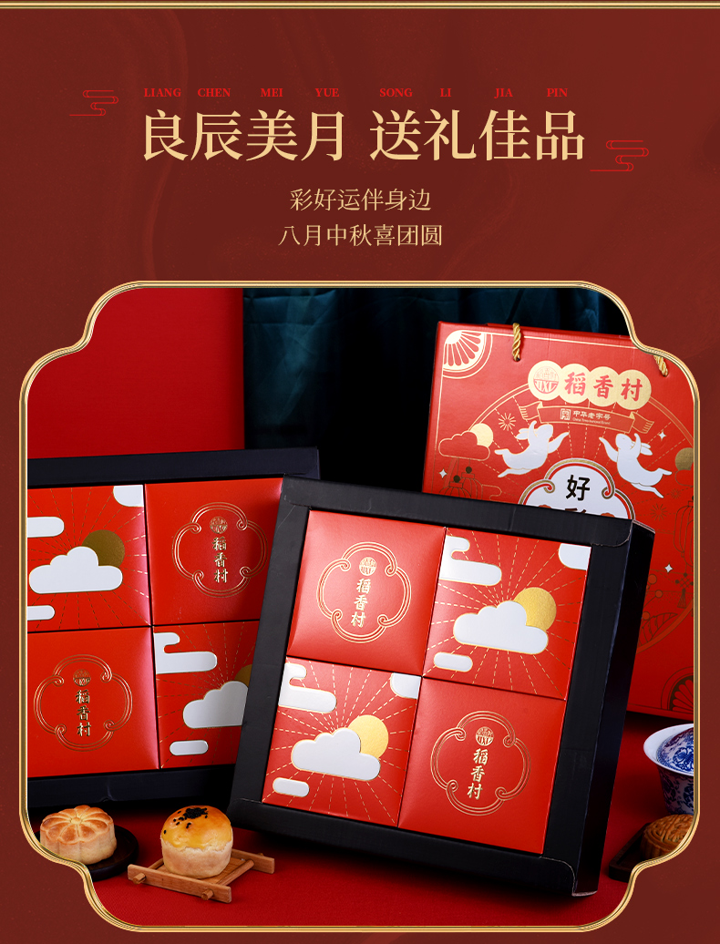 稻香村月饼礼盒好彩头600克糖醇黑芝麻枣泥蛋黄火腿中秋礼盒团购