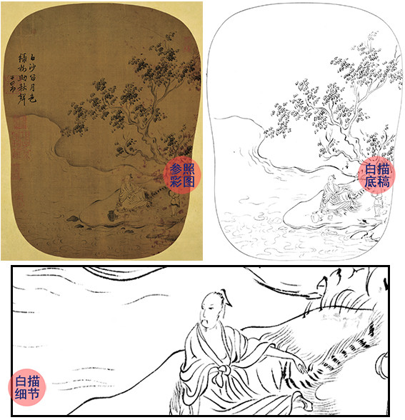 宋画人物小品白描底稿-马和之-《月色秋声图》-多种白描尺寸可选-GD22