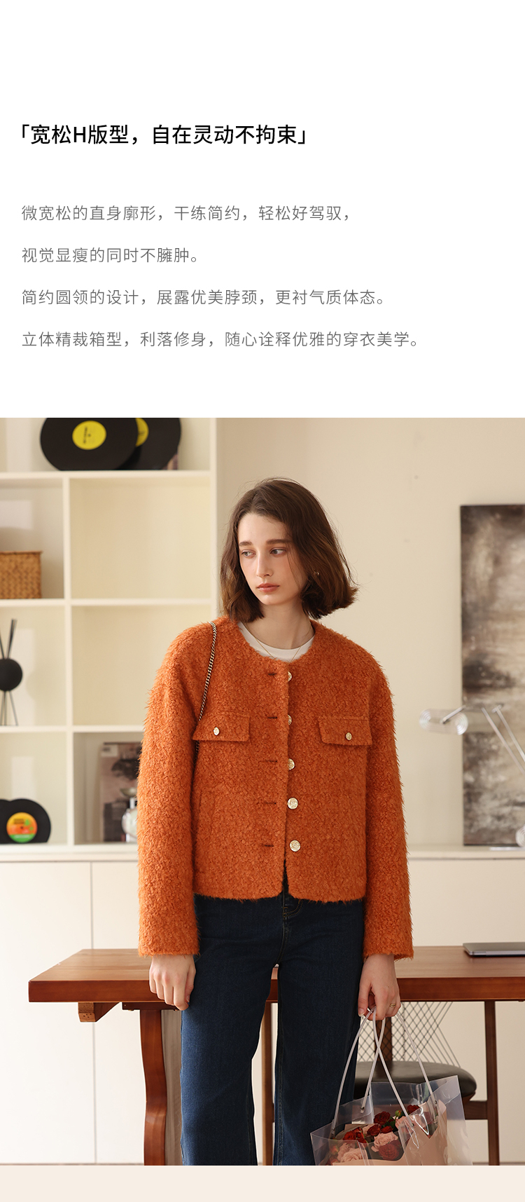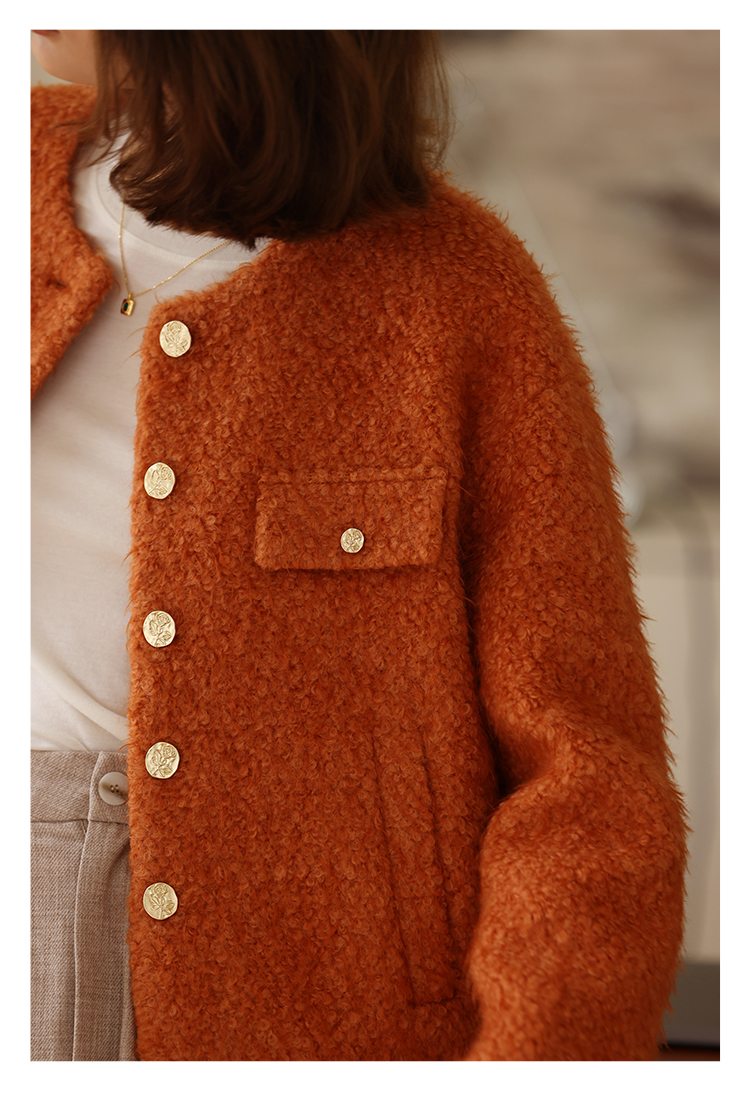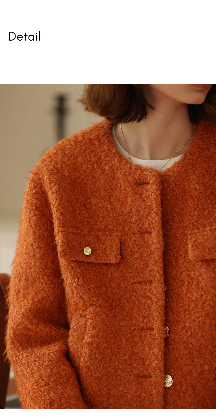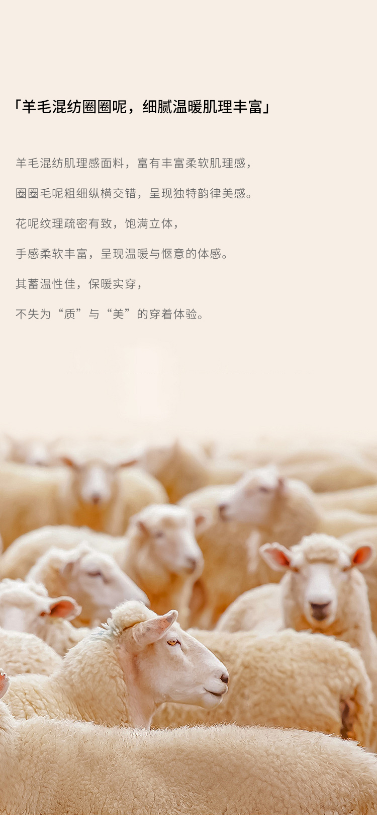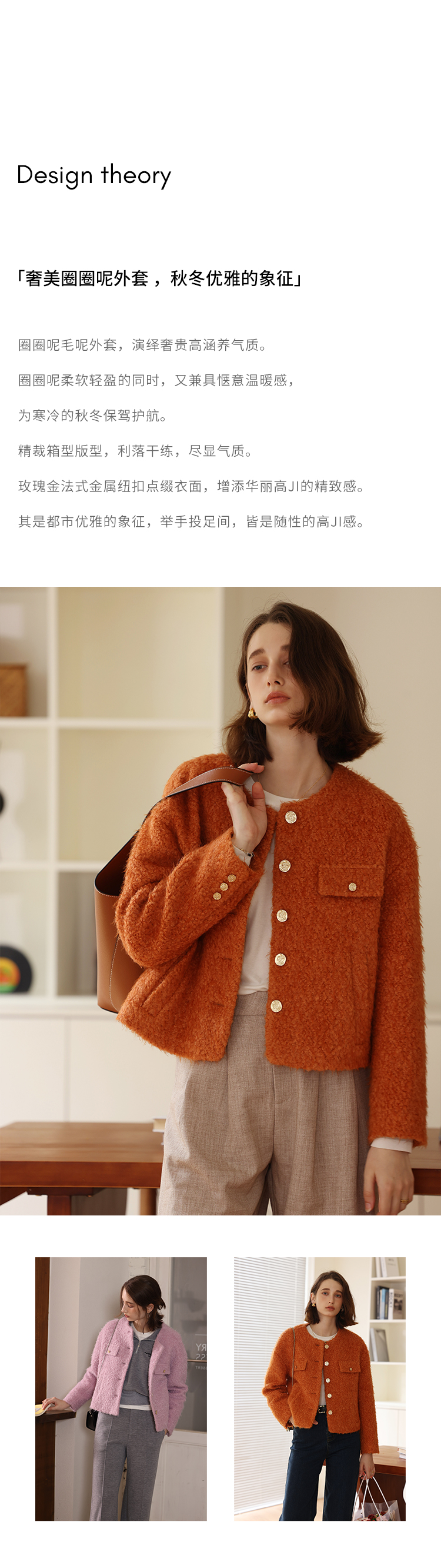 HeyDress法式毛呢外套女秋冬圈圈呢圆领宽松羊毛气质别致上衣