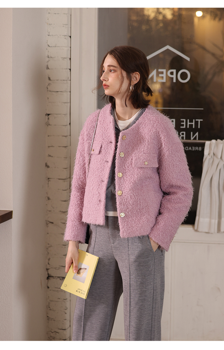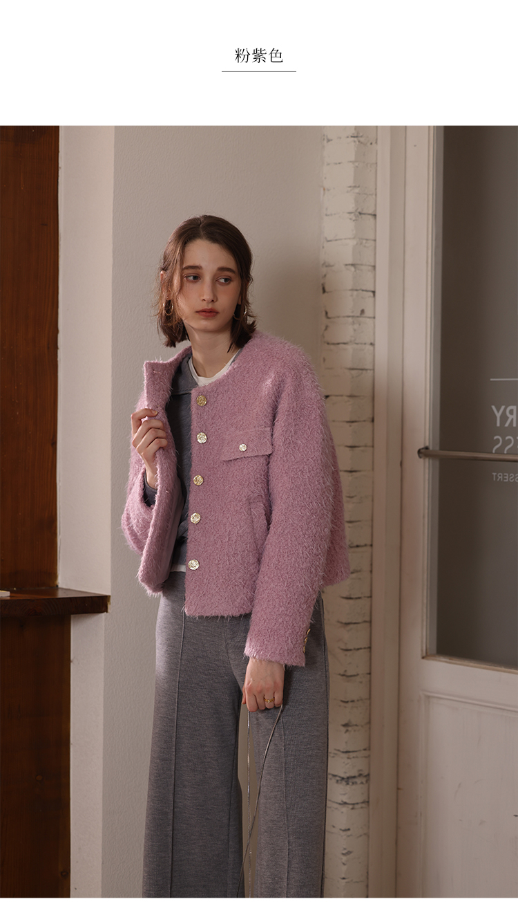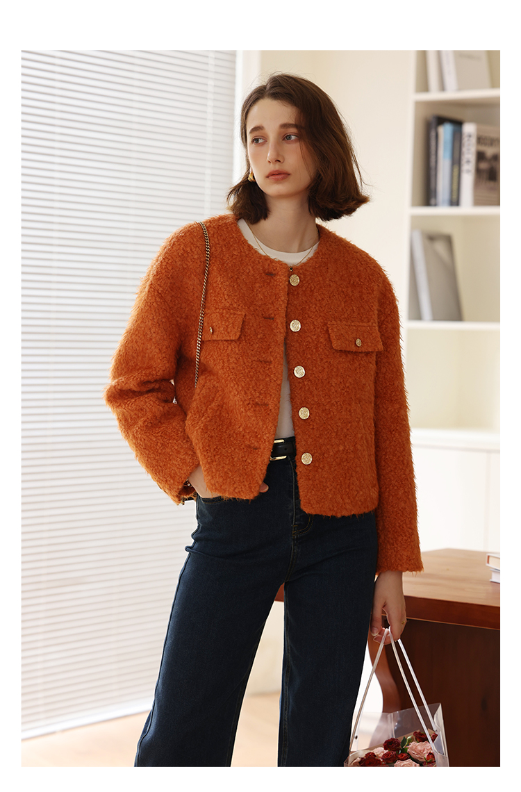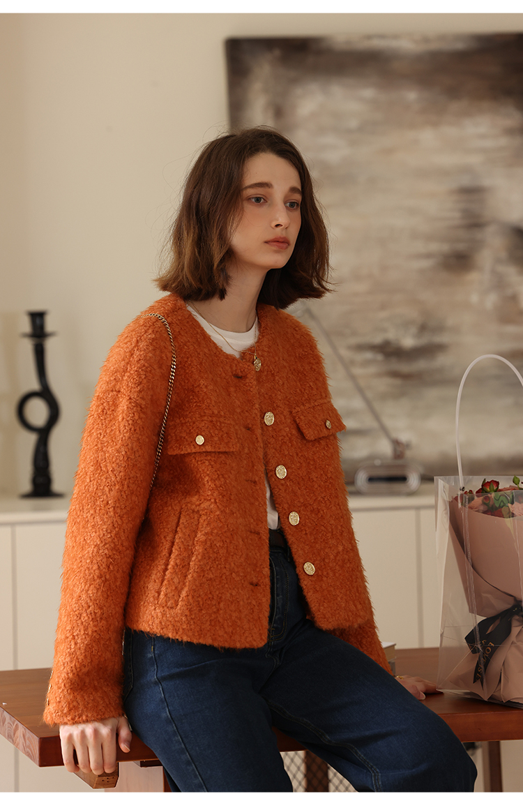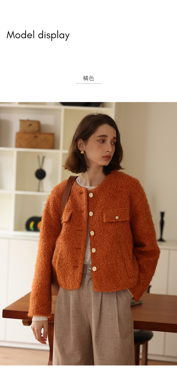 HeyDress法式毛呢外套女秋冬圈圈呢圆领宽松羊毛气质别致上衣