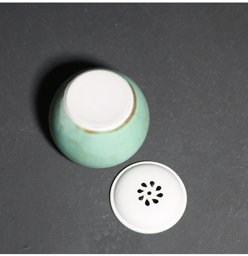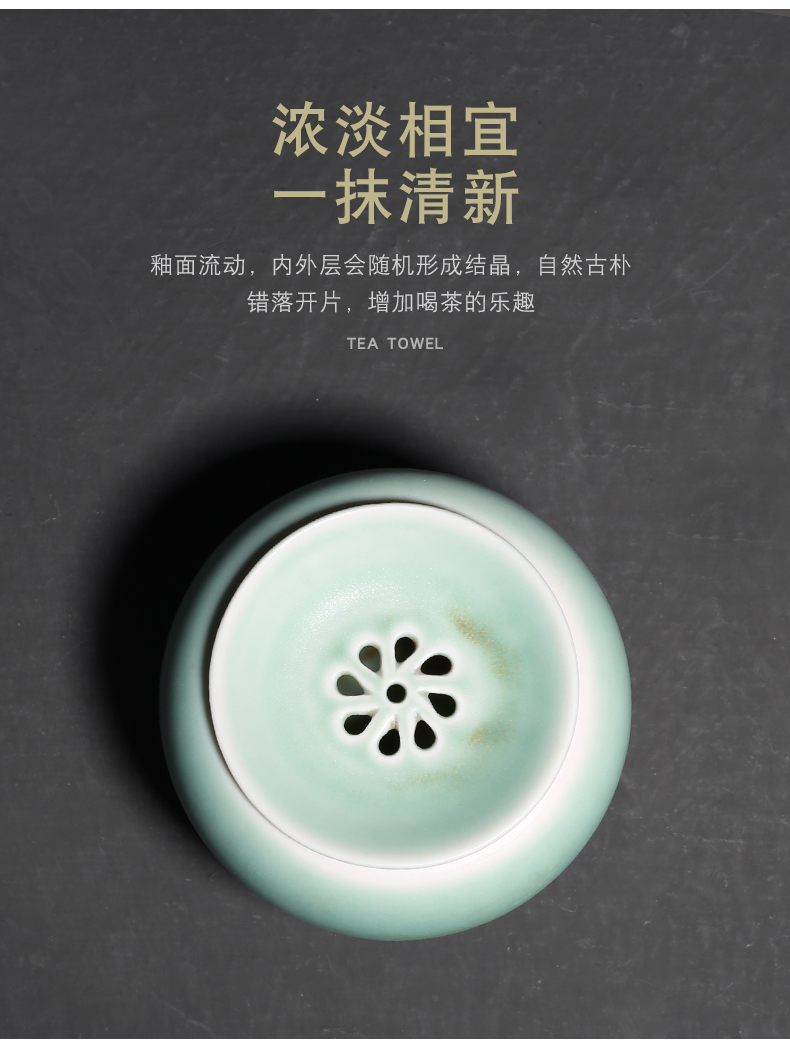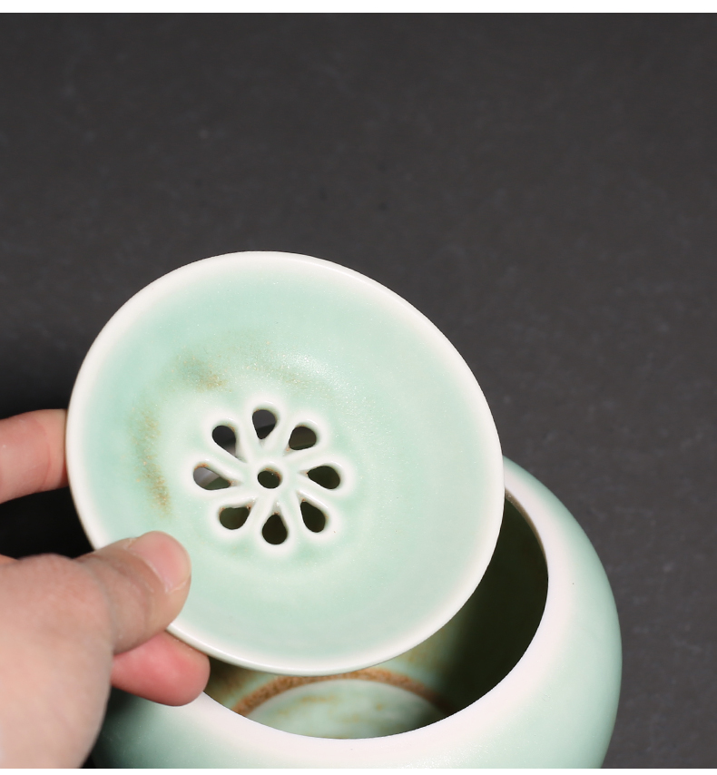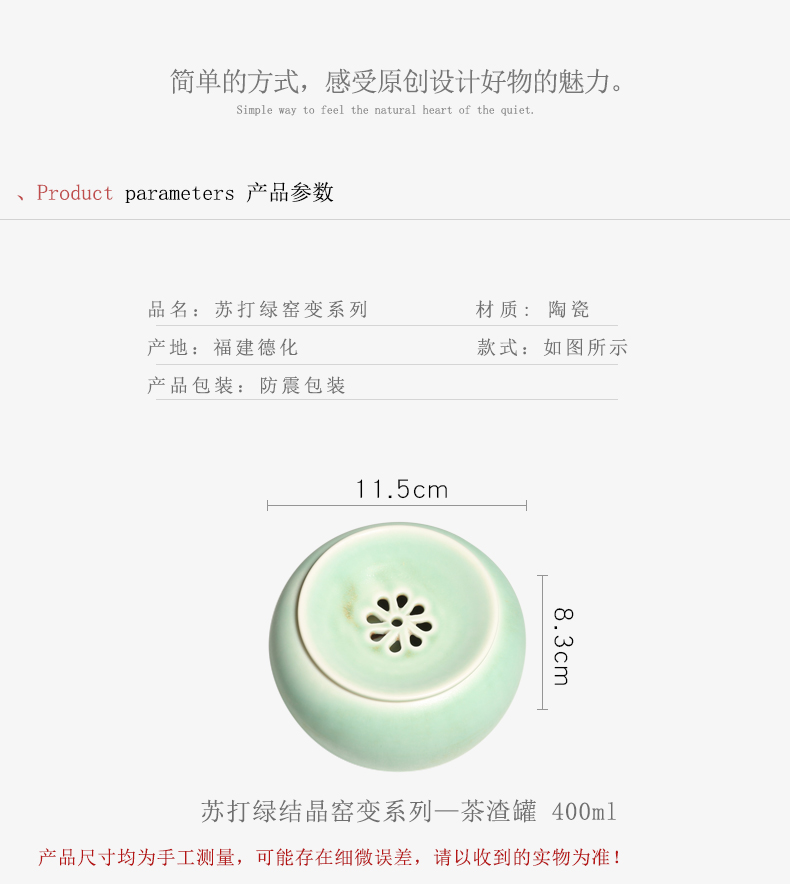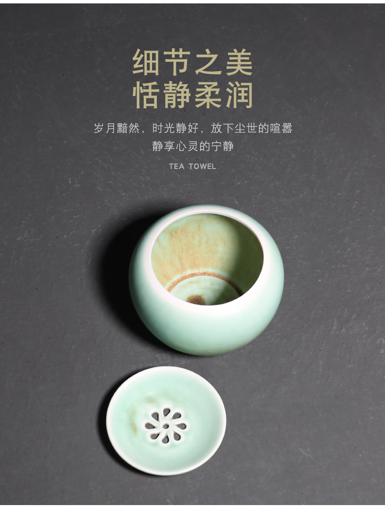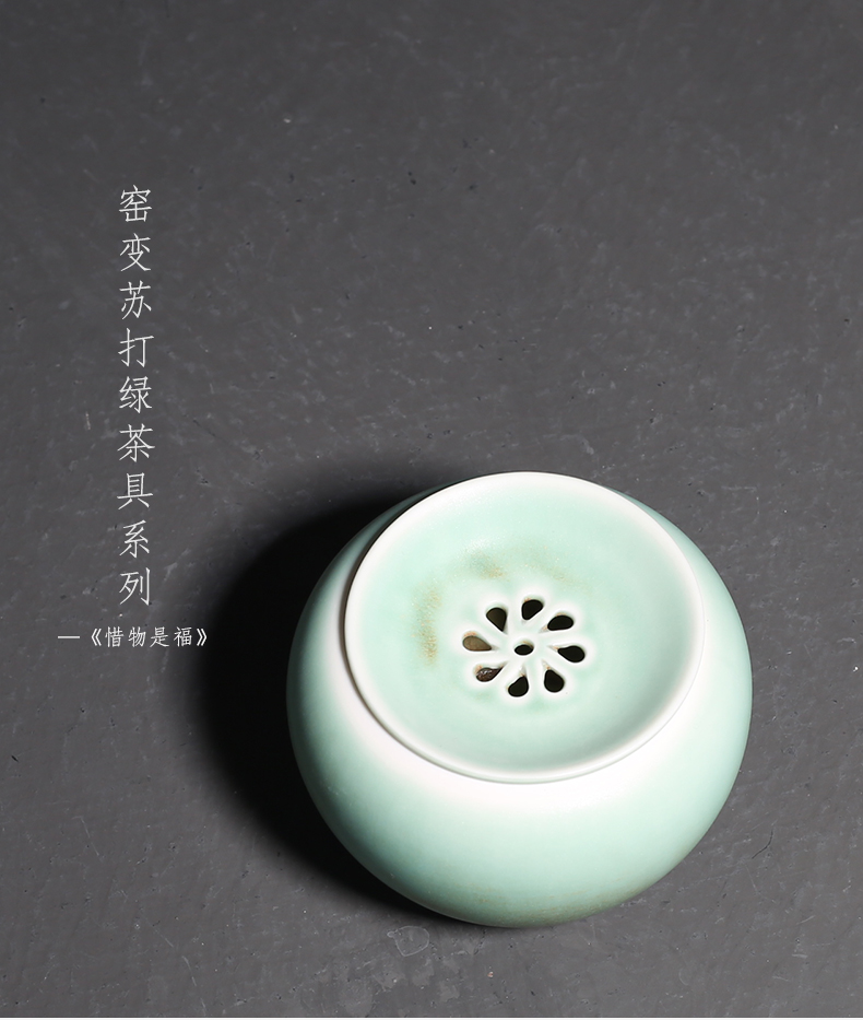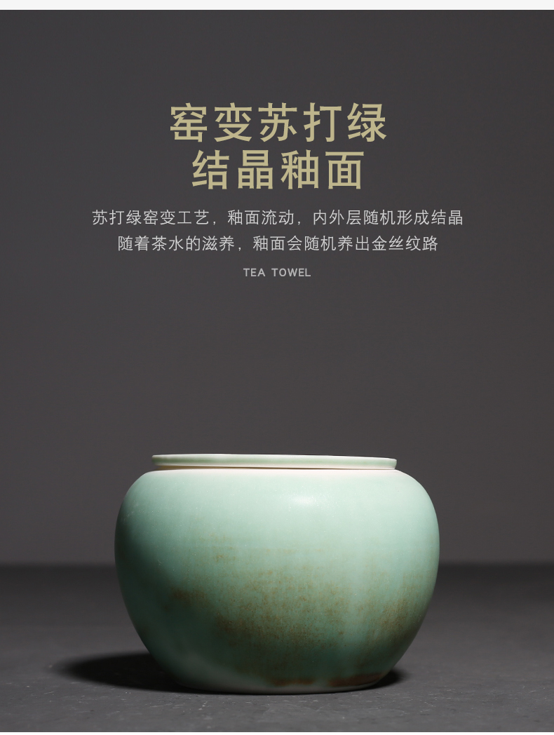 窑变绿釉陶瓷茶渣罐小建水功夫茶道配件