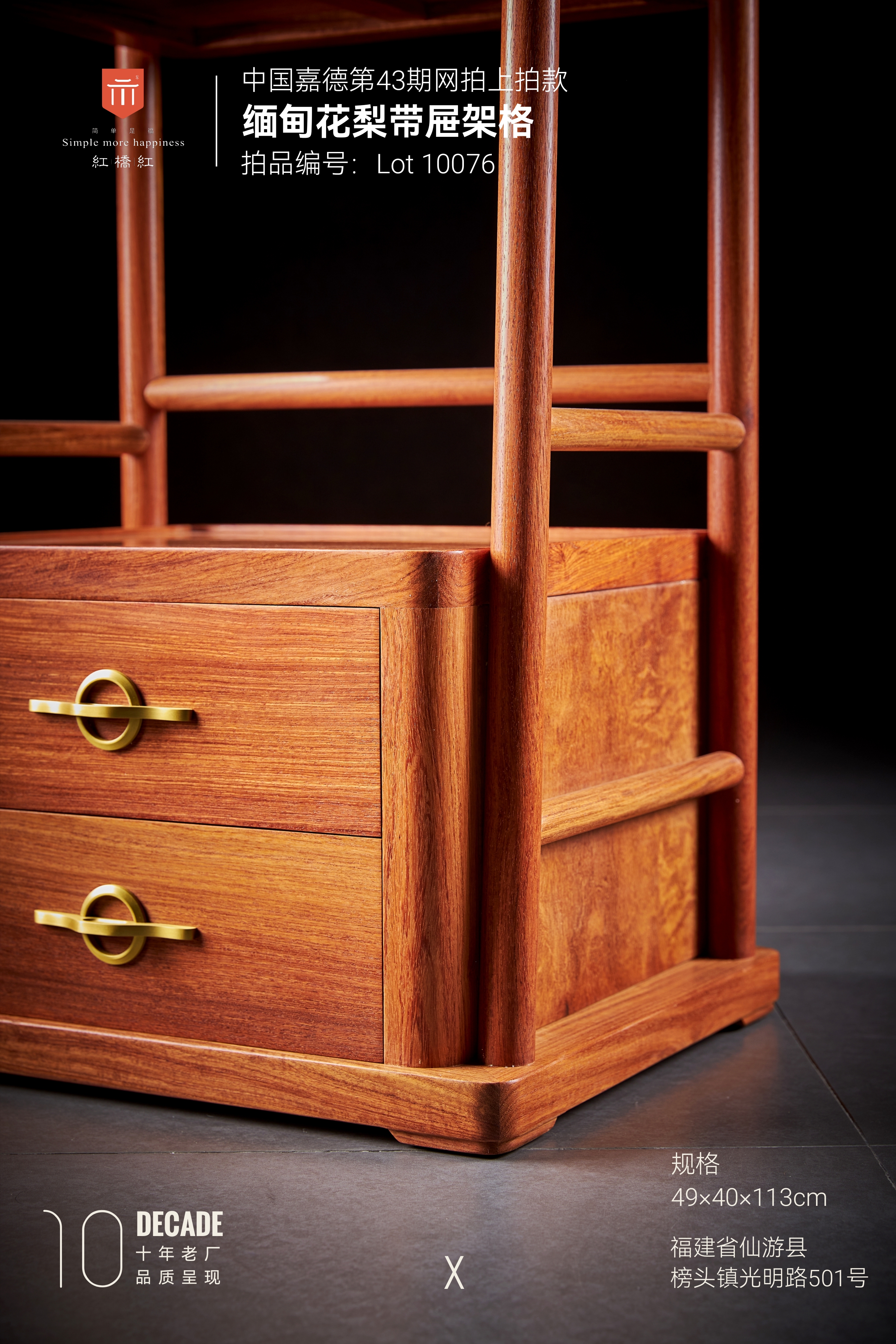 红桥红  家具严选  缅甸花梨(大果紫檀)【133新中式 小层架】 商品图3