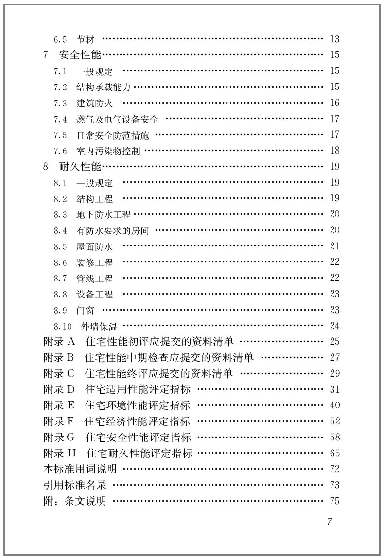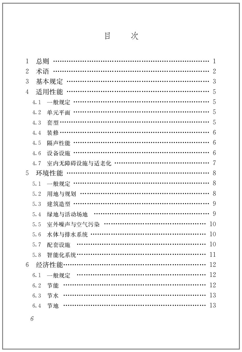 本标准的主要技术内容是:1.总则;2.术语;3.基本规定;4.适用性能;5.环境性能;6.经济性能;7.安全性能;8.耐久性能;附录。 本标准由住房和城乡建设部发布,20XX年X月X日实施。(日期待定)