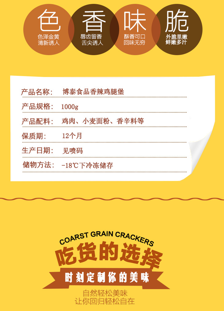 博泰 香辣鸡腿堡10片/包 1㎏ 鸡腿肉/汉堡肉/裹粉腿肉/