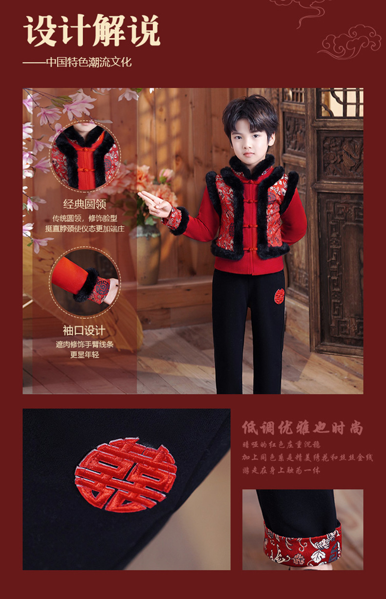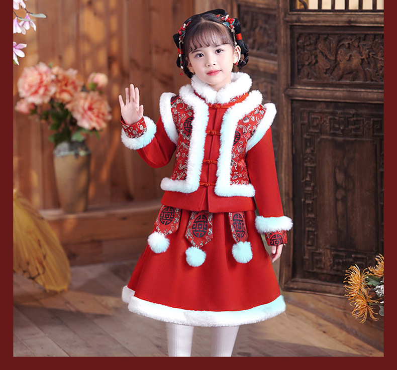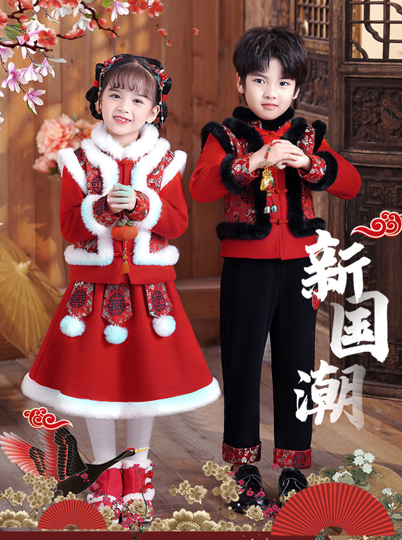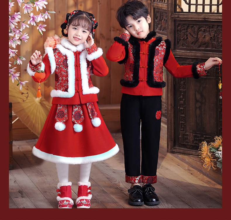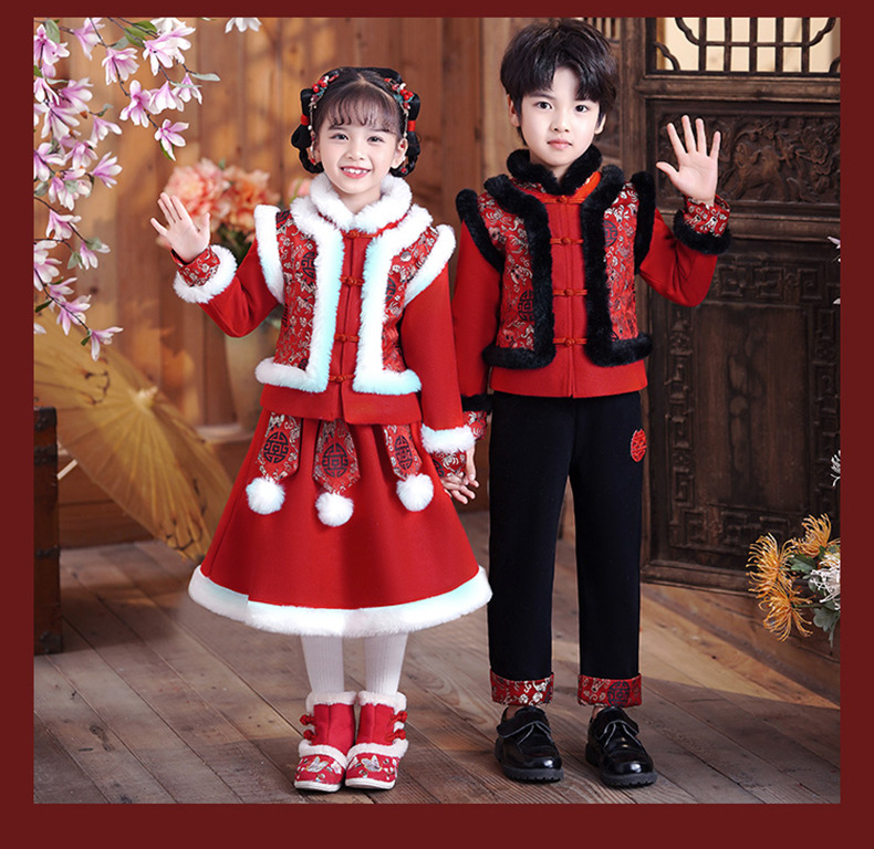 XWN-9833 儿童汉服2022新款冬款加绒套装女童汉服小女孩拜年服冬季唐装男童