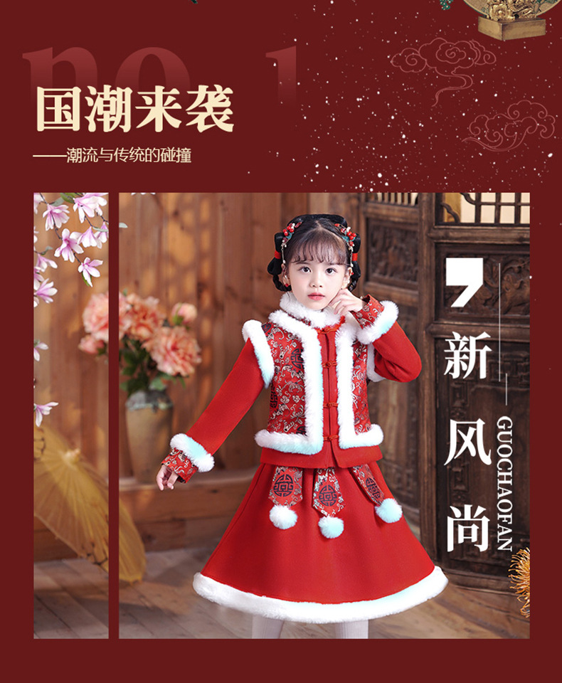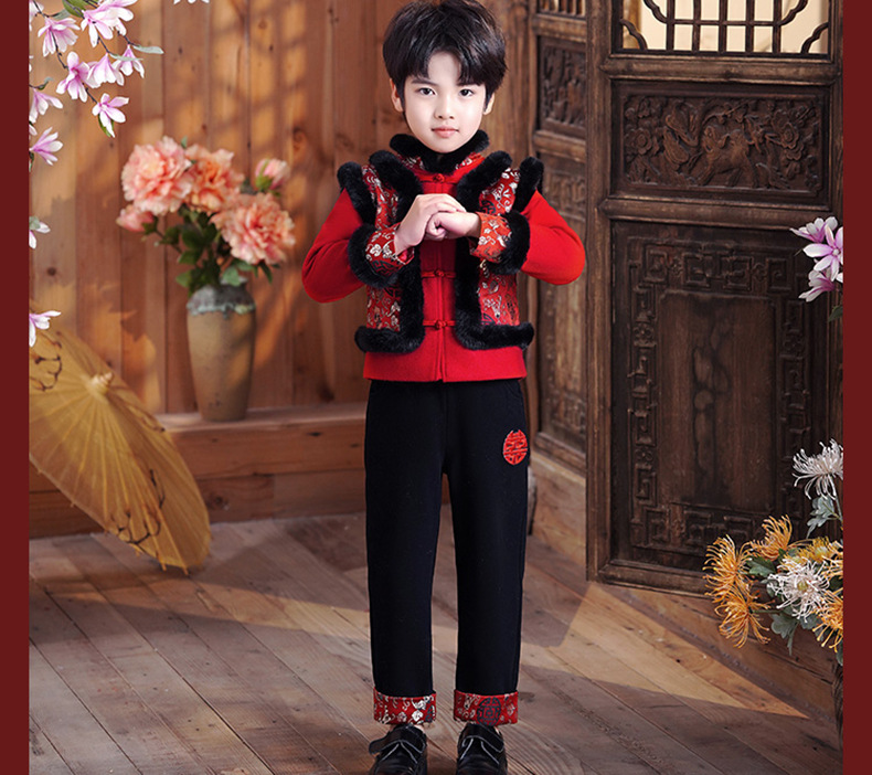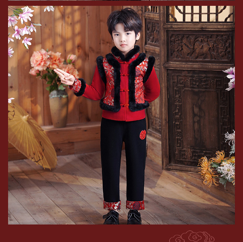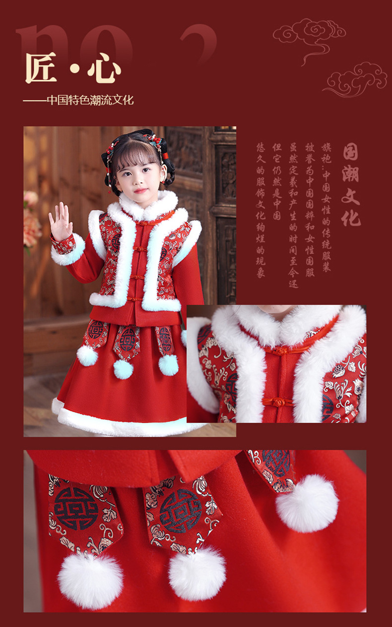 XWN-9833 儿童汉服2022新款冬款加绒套装女童汉服小女孩拜年服冬季唐装男童