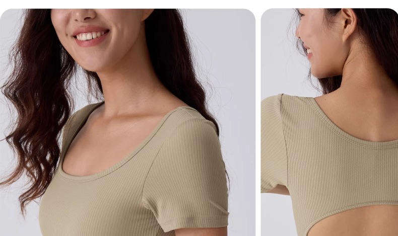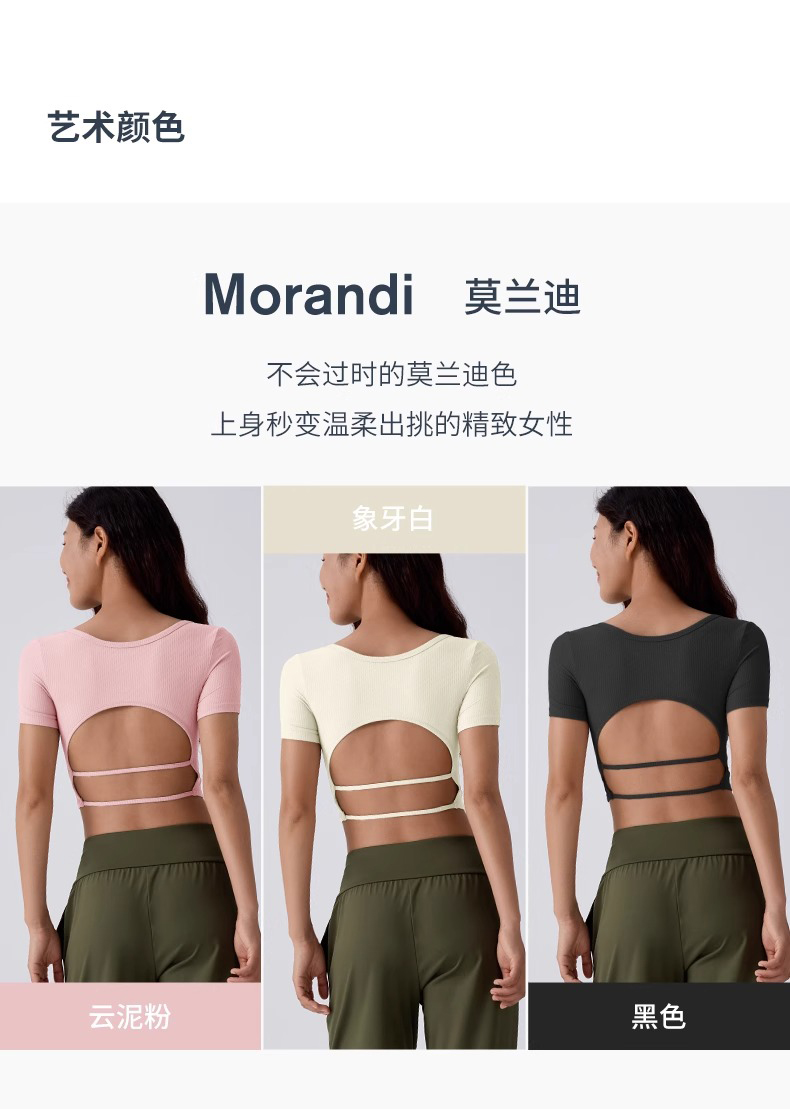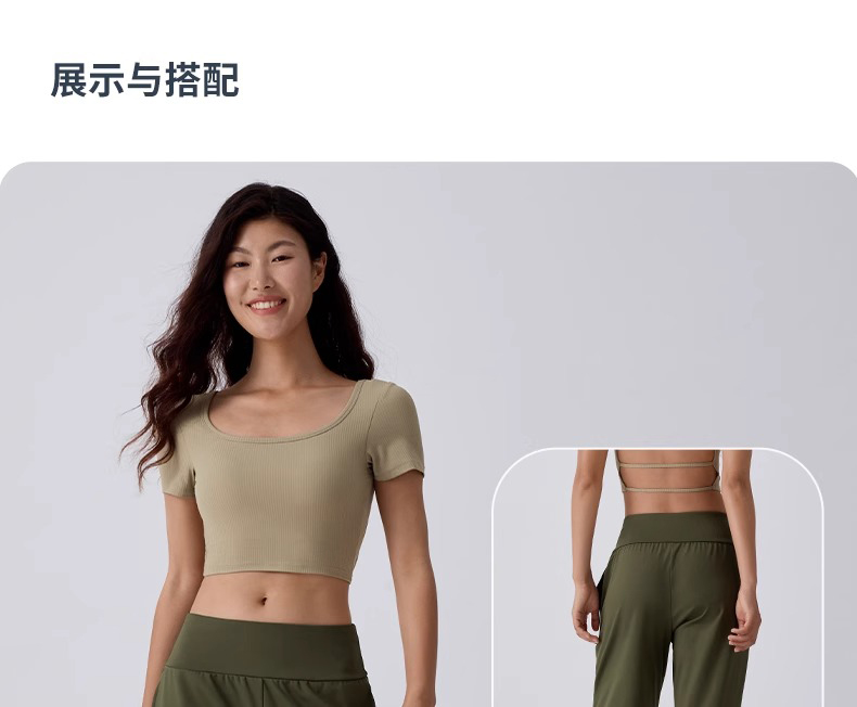 【限时秒】YOGACODE【火树银花系列】2024 方领性感露背短款运动T恤跑步健身上衣DST716