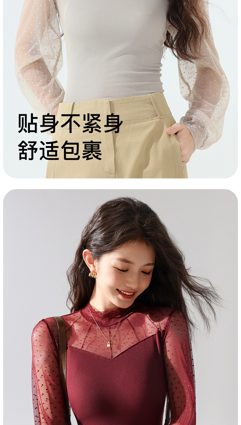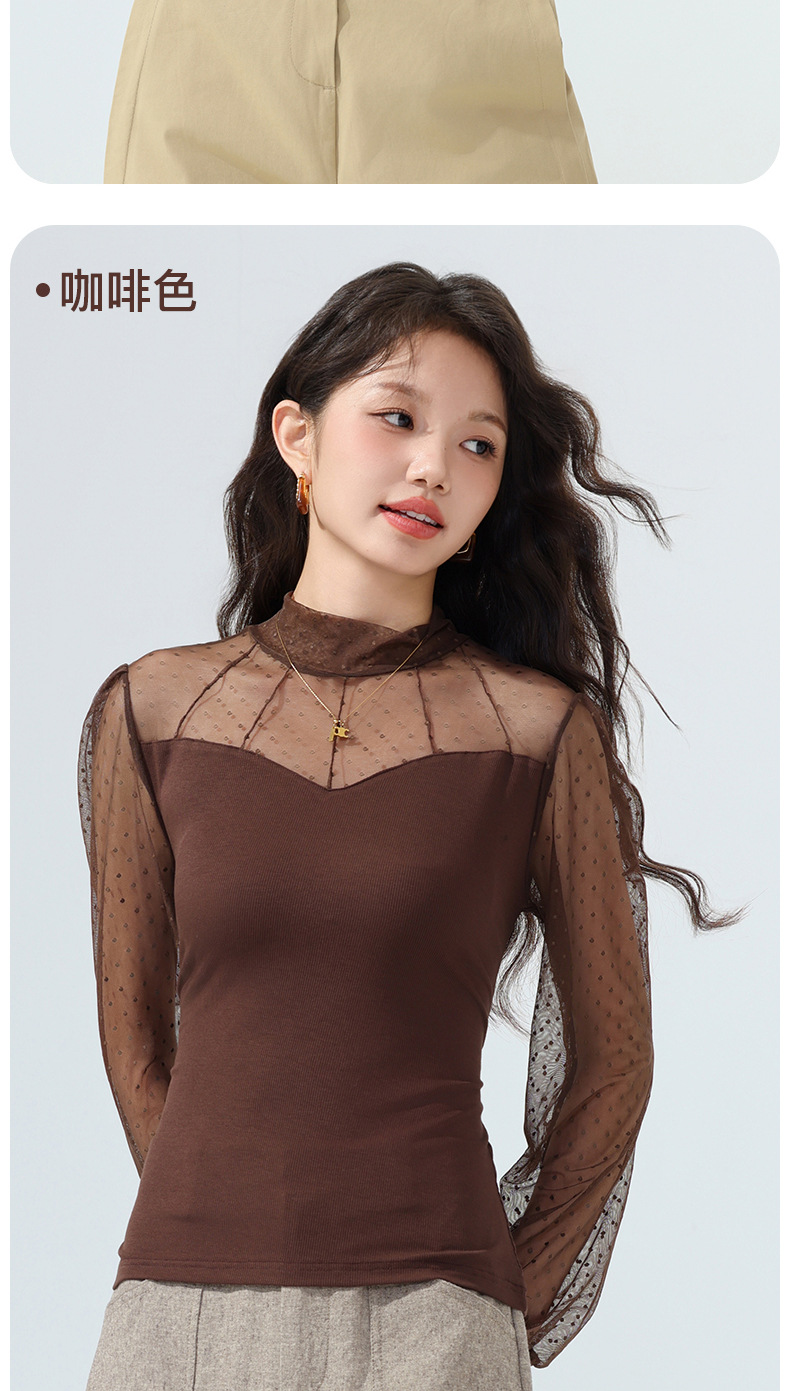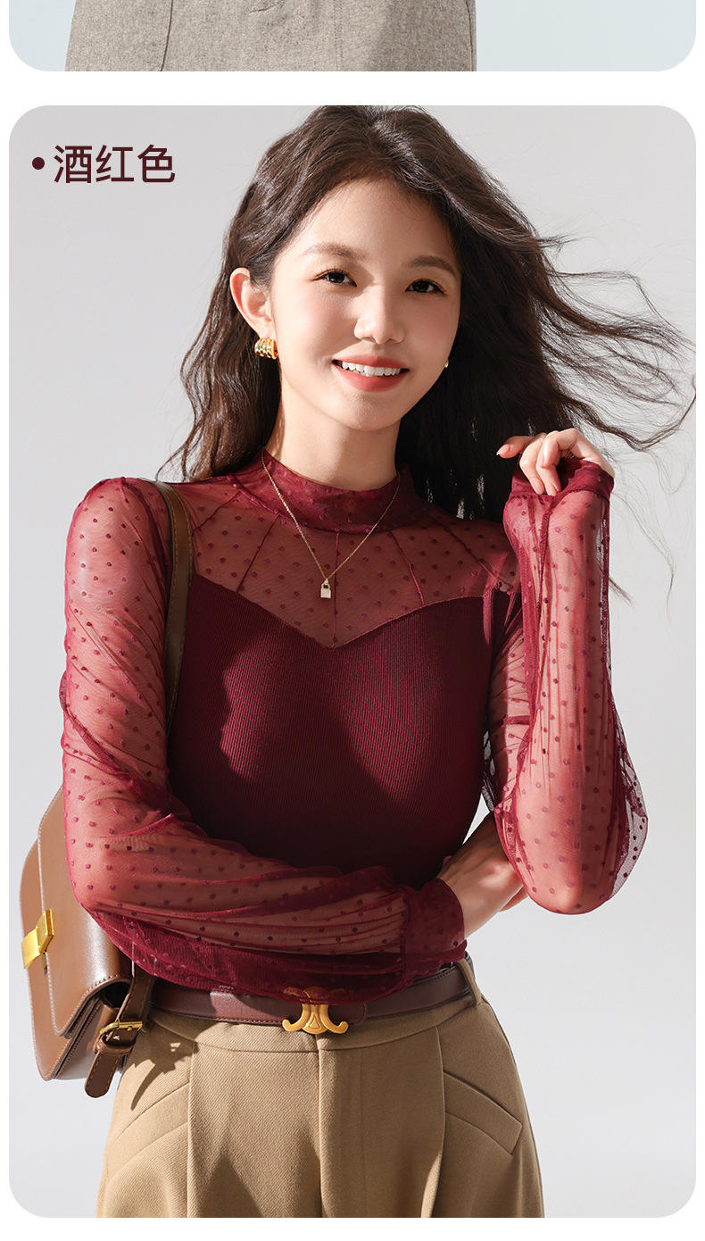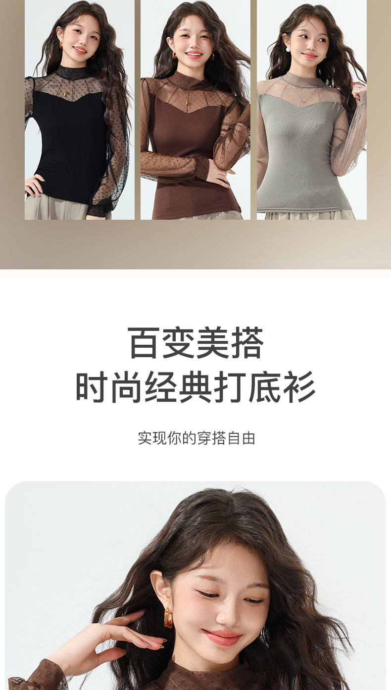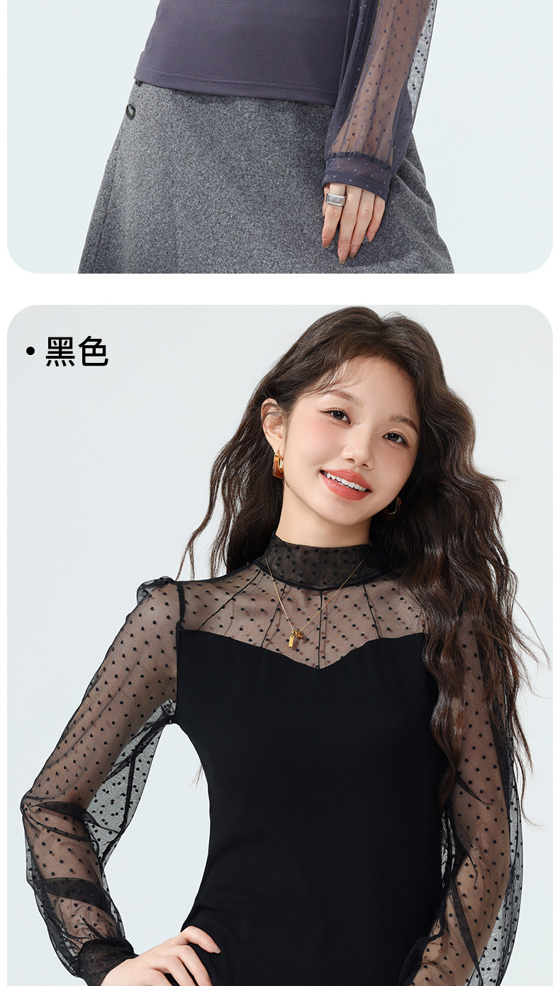 雀说蕾丝上衣女长袖新款大码女装半高领网纱内搭打底衫洋气衫AL2501 商品图4