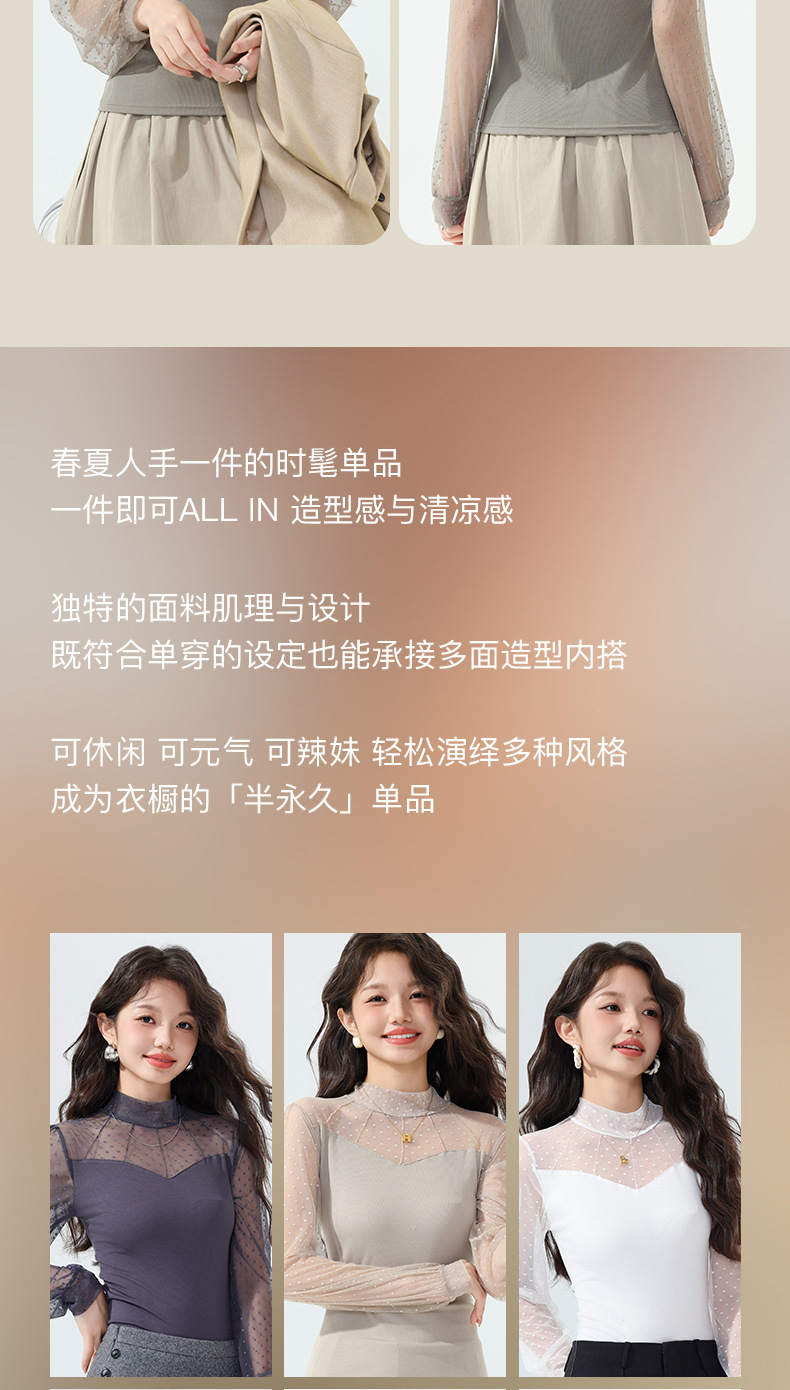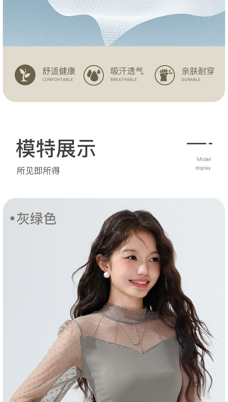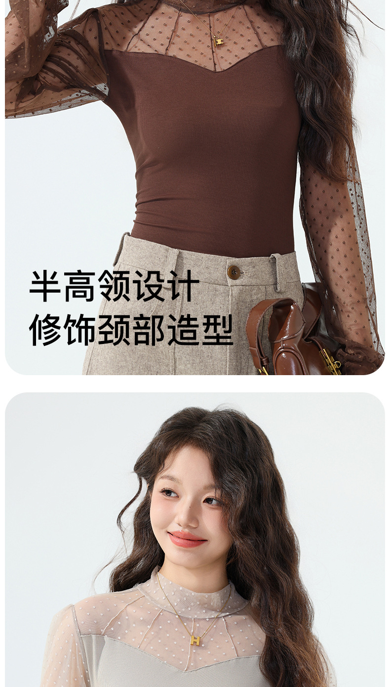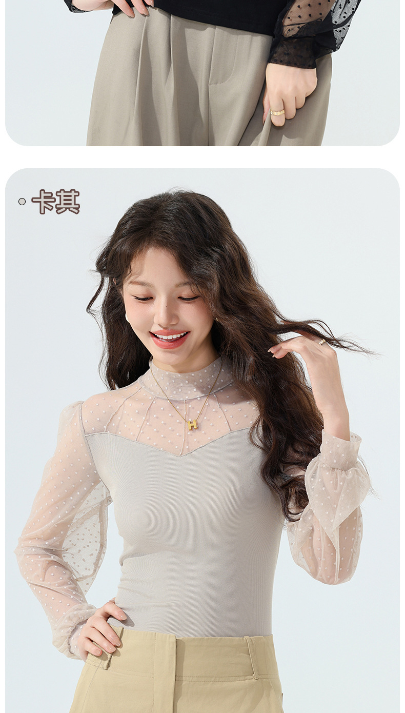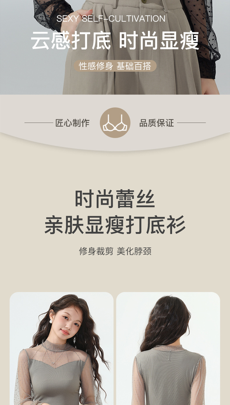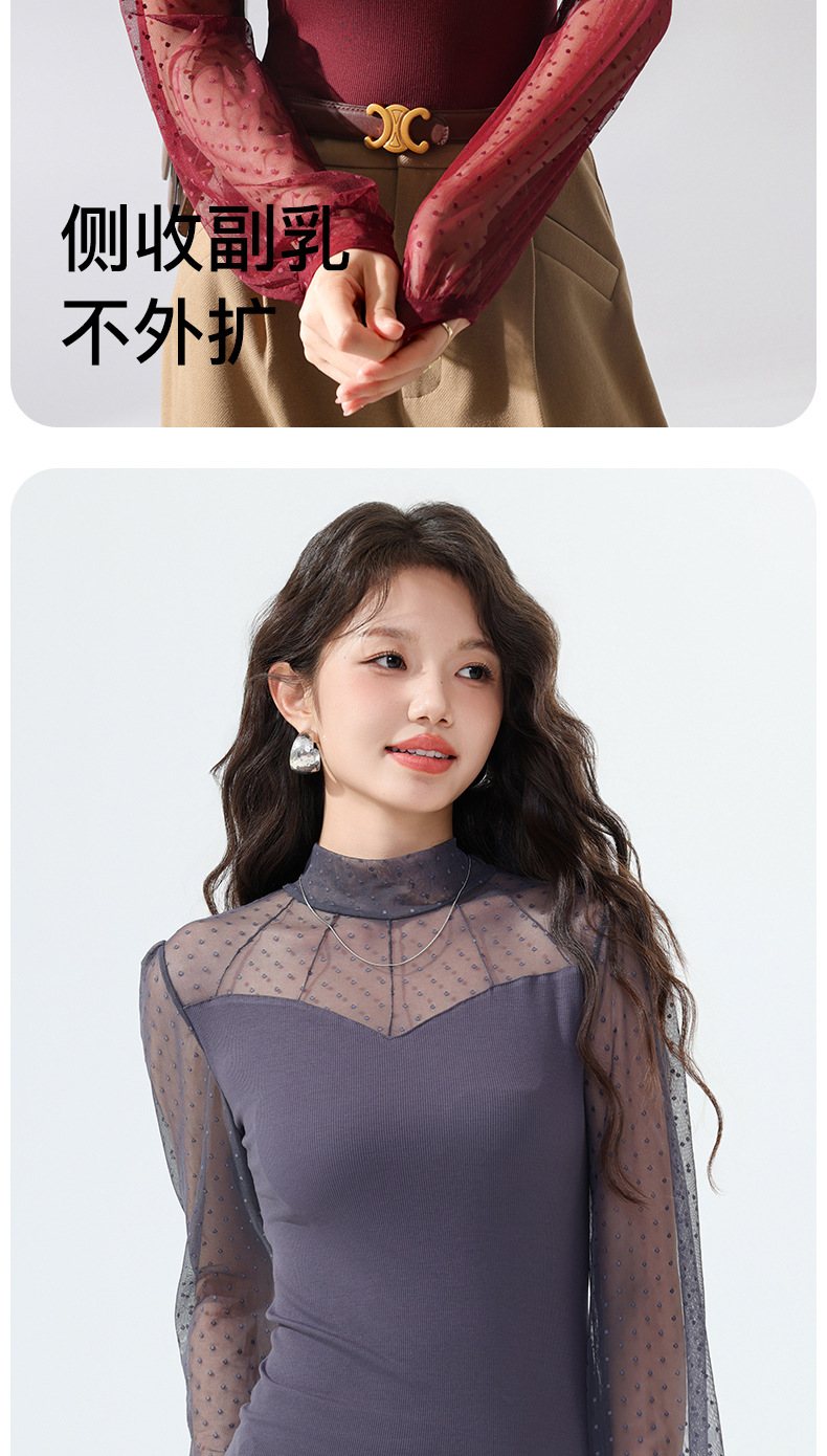 雀说蕾丝上衣女长袖新款大码女装半高领网纱内搭打底衫洋气衫AL2501 商品图4