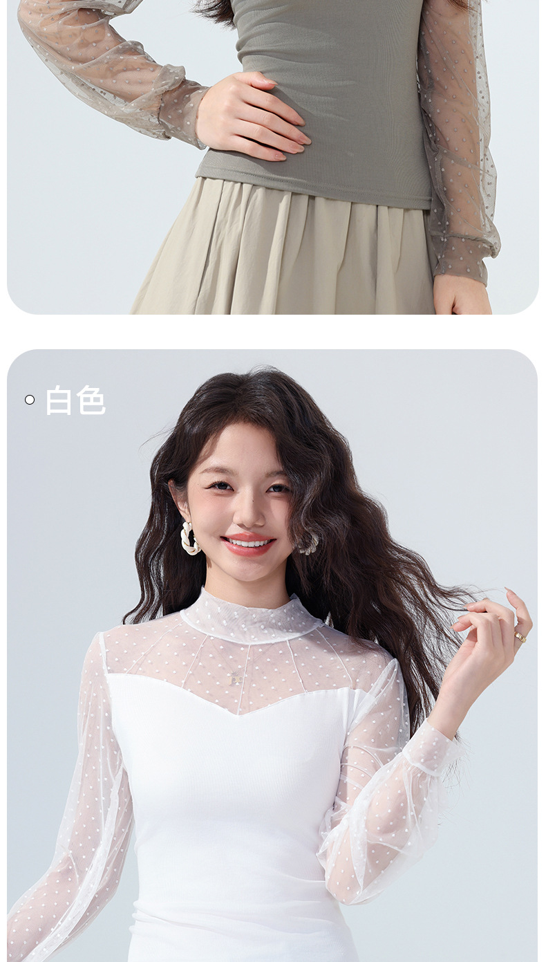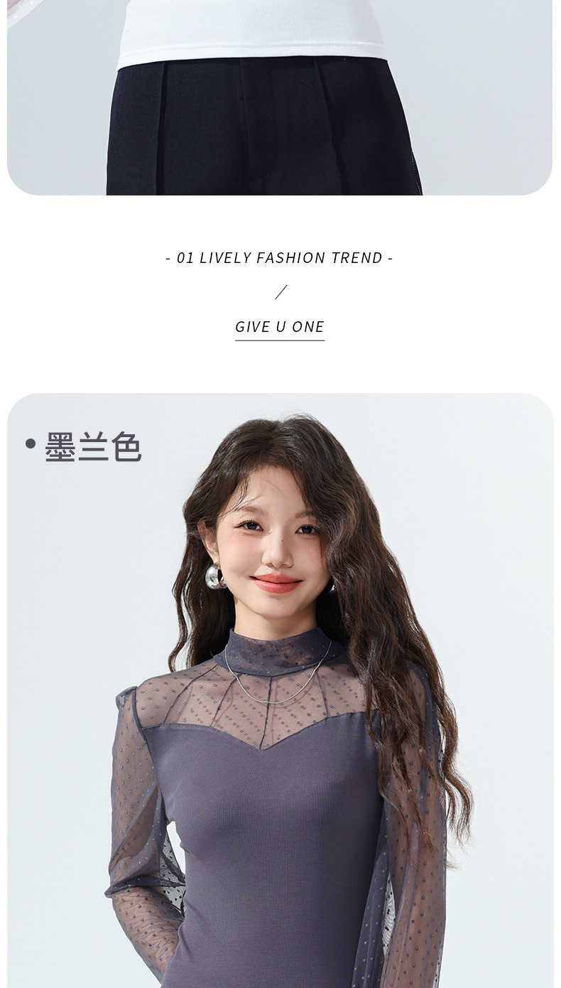 雀说蕾丝上衣女长袖新款大码女装半高领网纱内搭打底衫洋气衫AL2501 商品图2