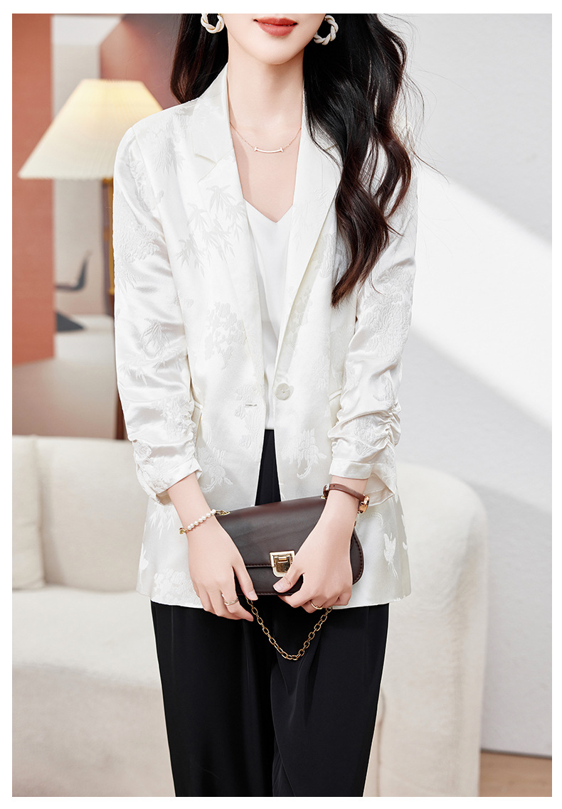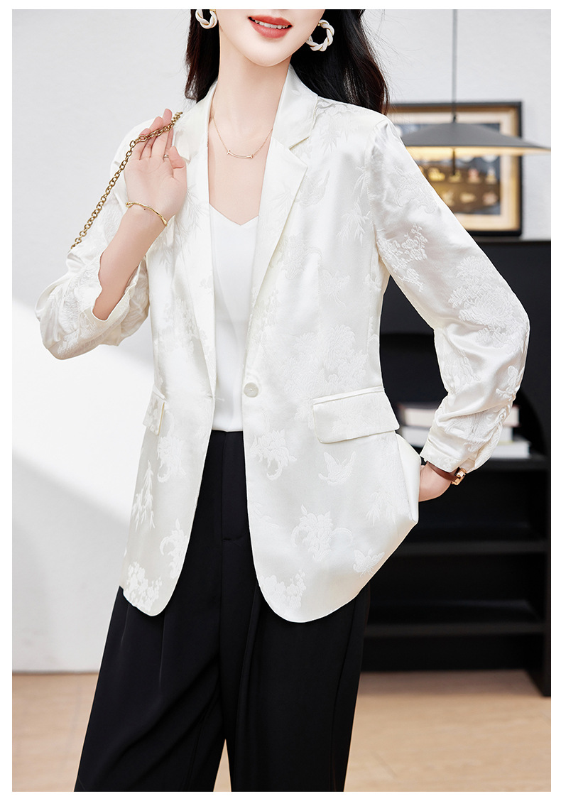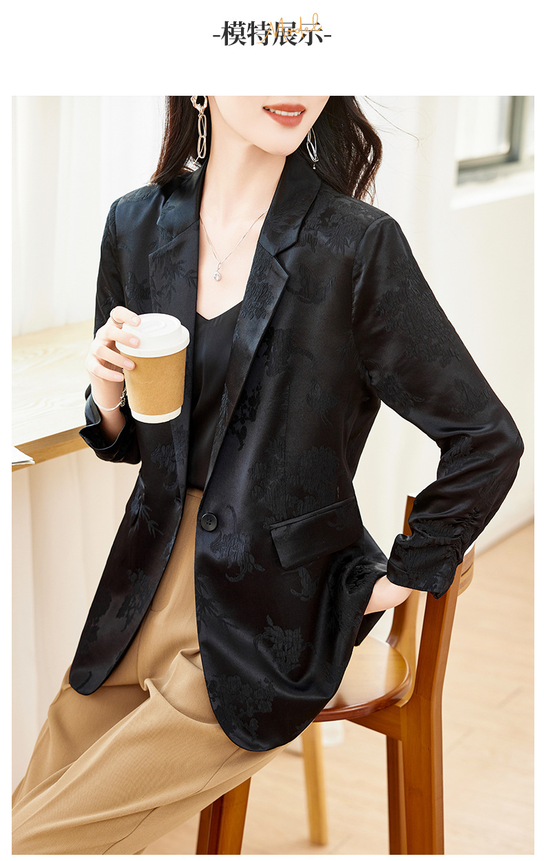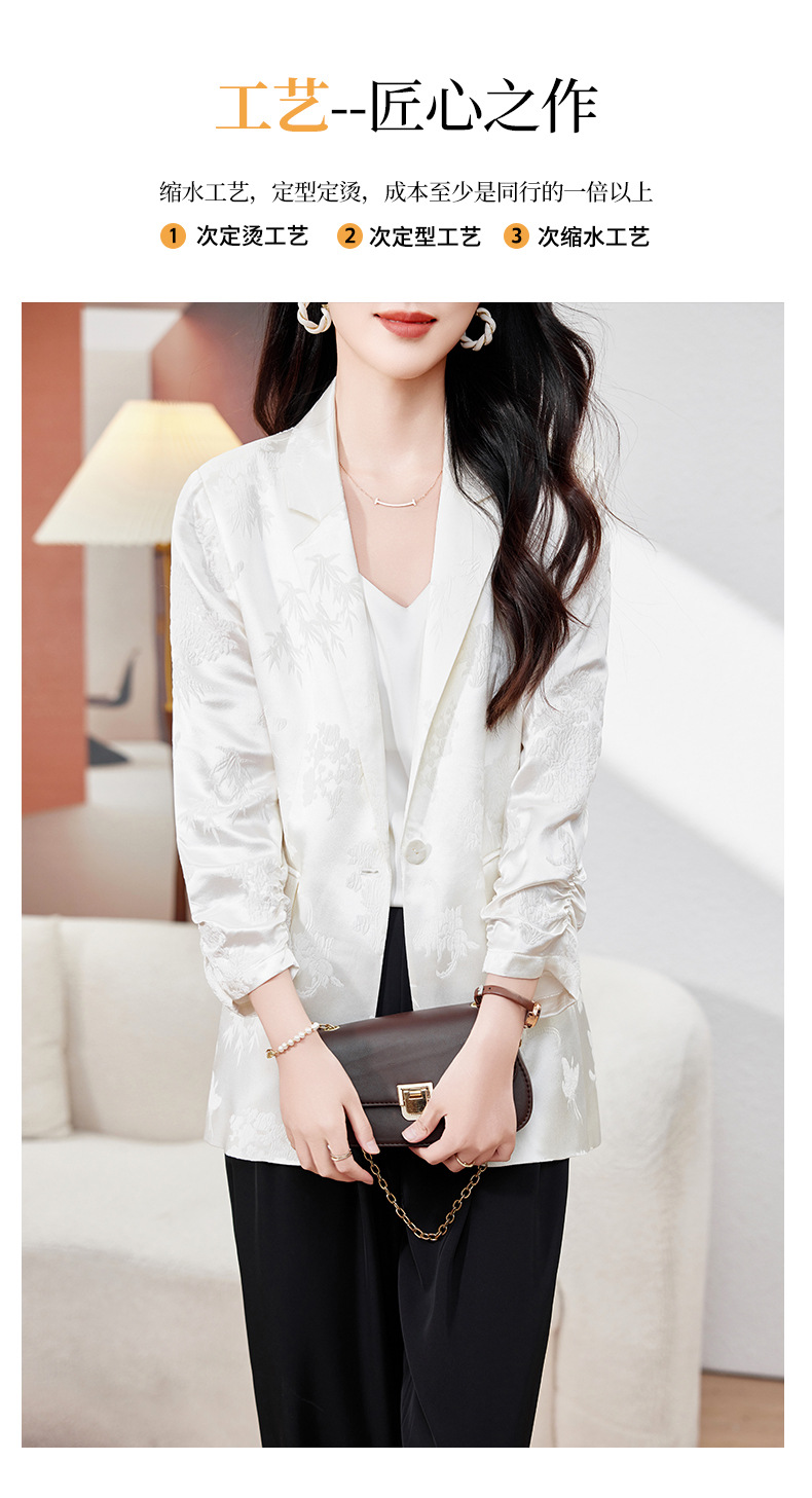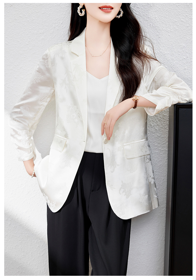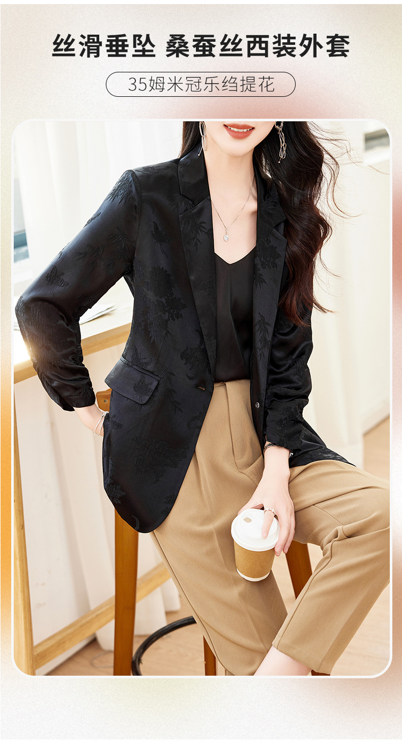 丁摩高端重磅真丝小西装女一粒扣暗纹提花桑蚕丝冠乐绉外套AL0085