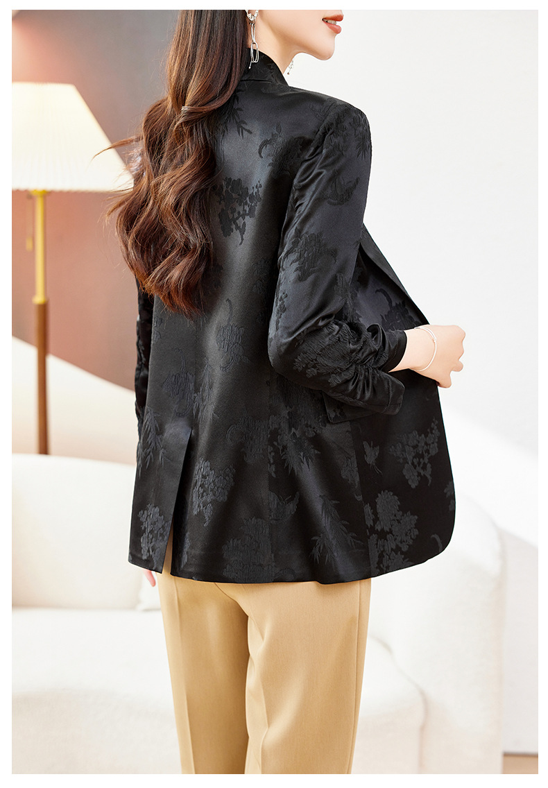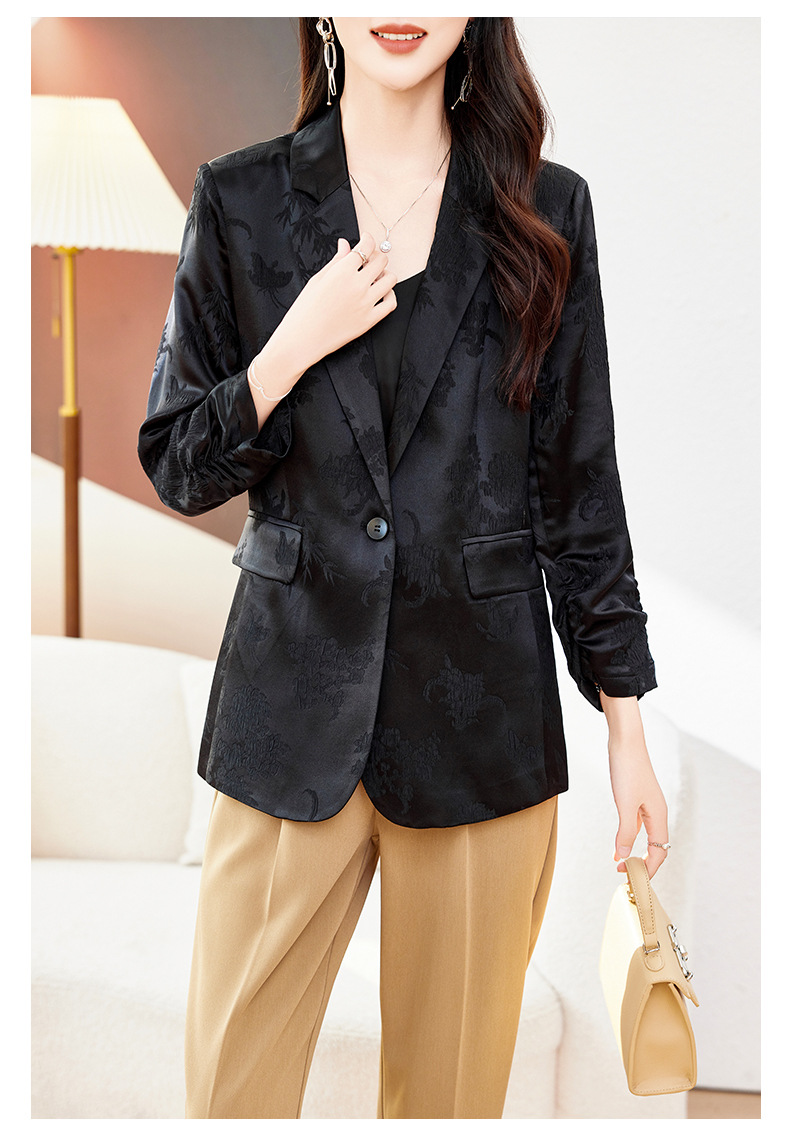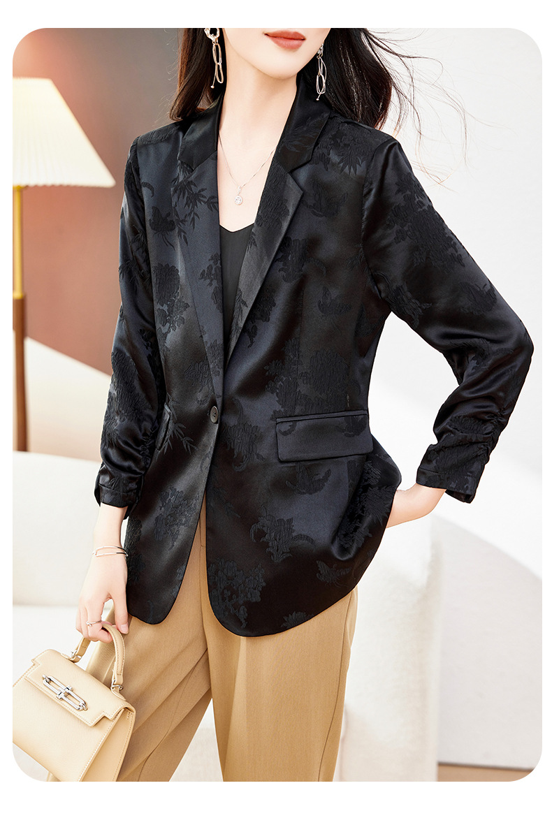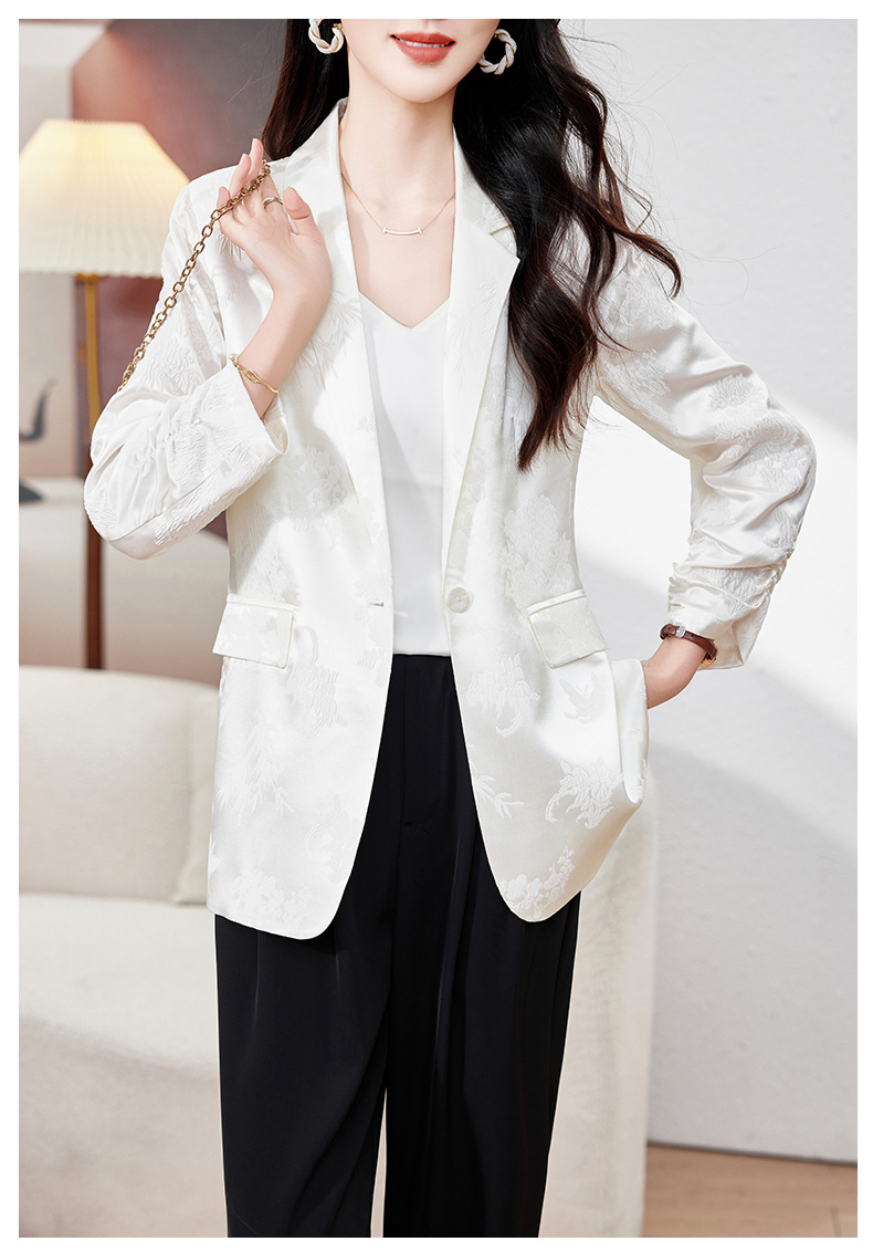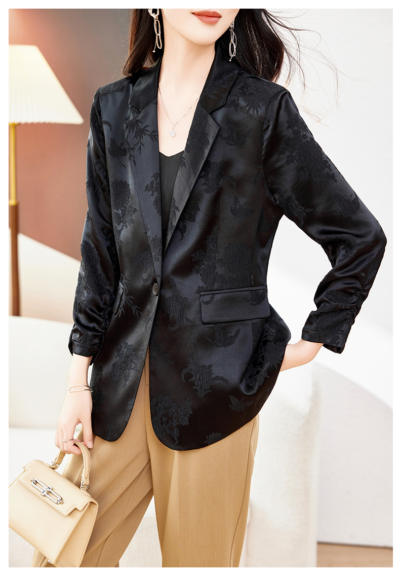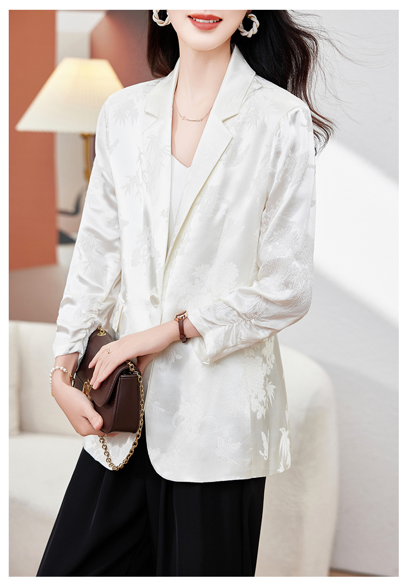 丁摩高端重磅真丝小西装女一粒扣暗纹提花桑蚕丝冠乐绉外套AL0085