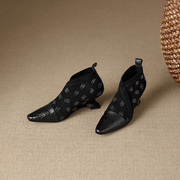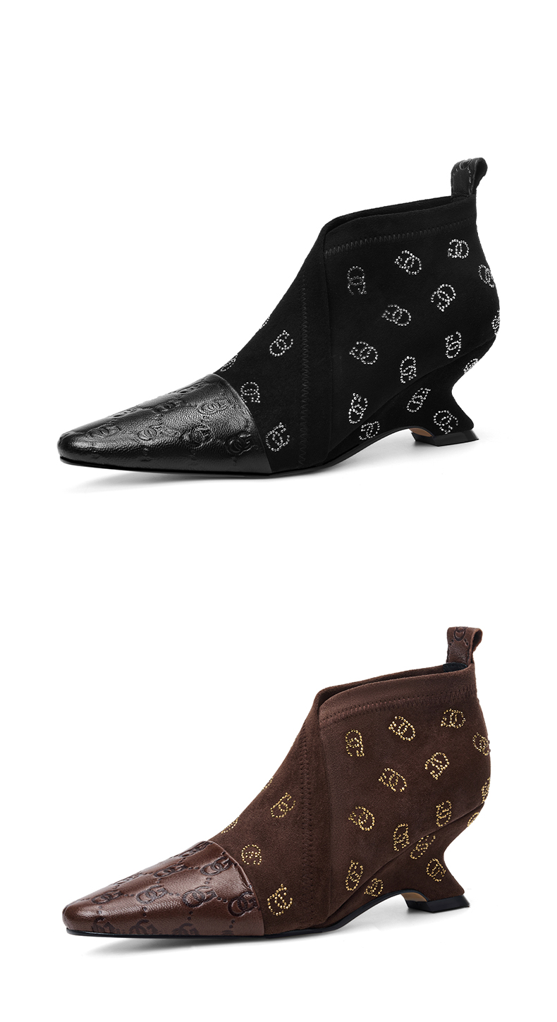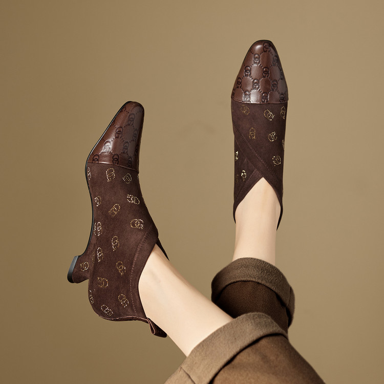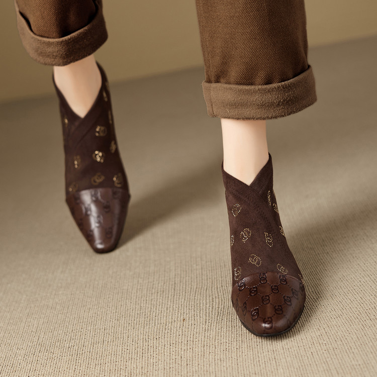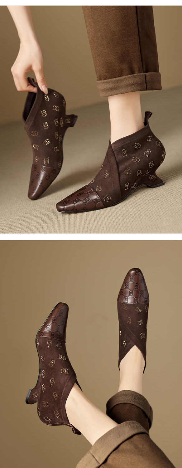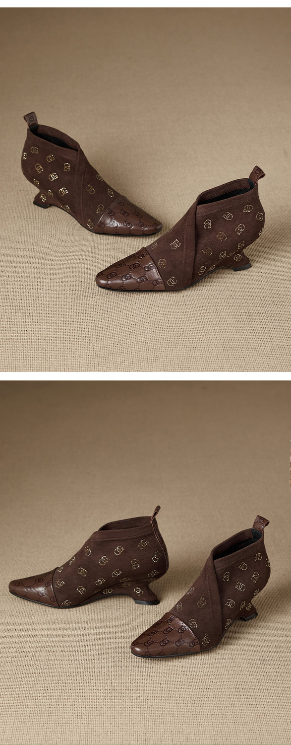 【预售5天】小方头头层压花,羊皮搭配弹力绒高跟时装靴MBJR&5645