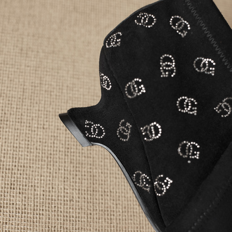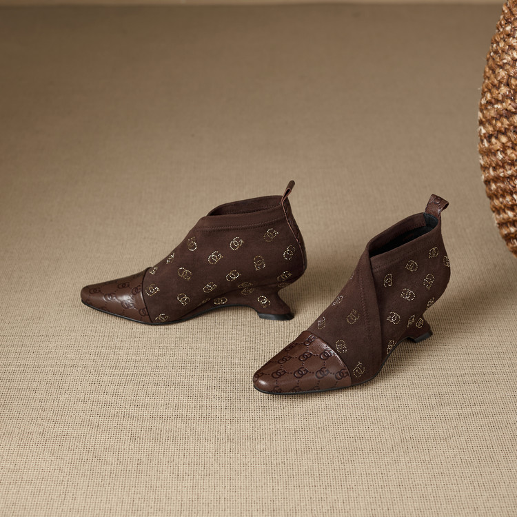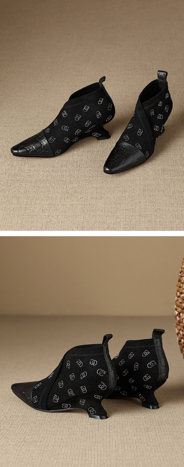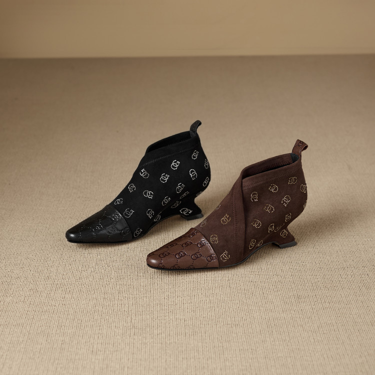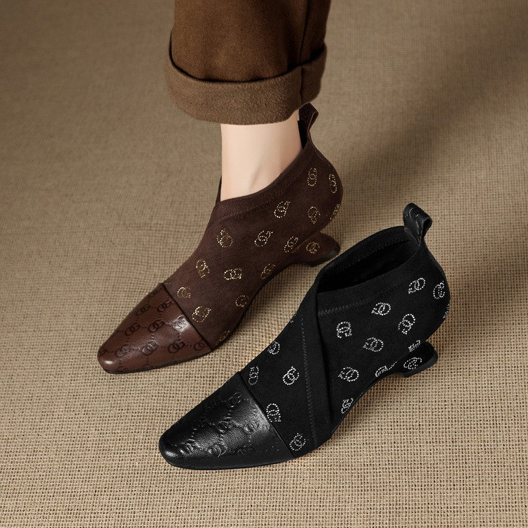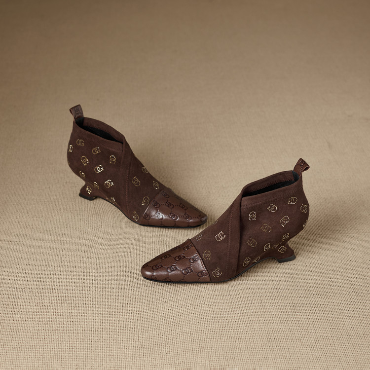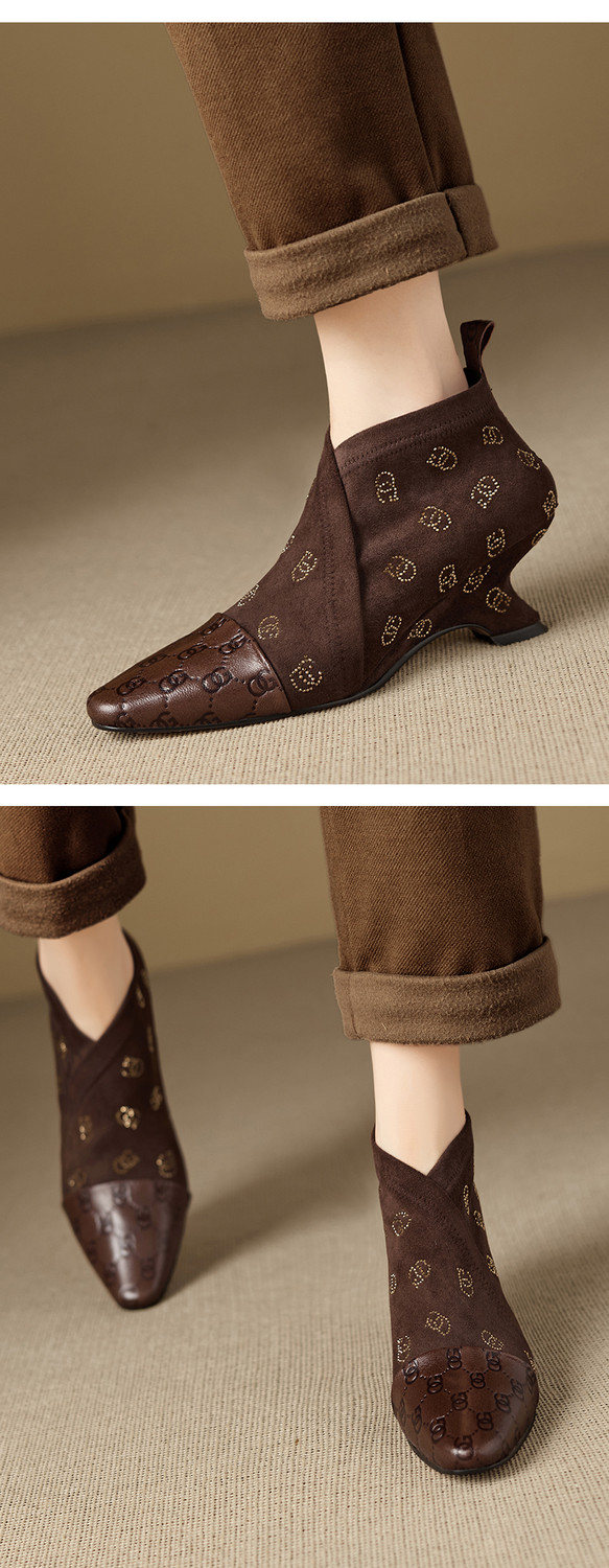 【预售5天】小方头头层压花,羊皮搭配弹力绒高跟时装靴MBJR&5645