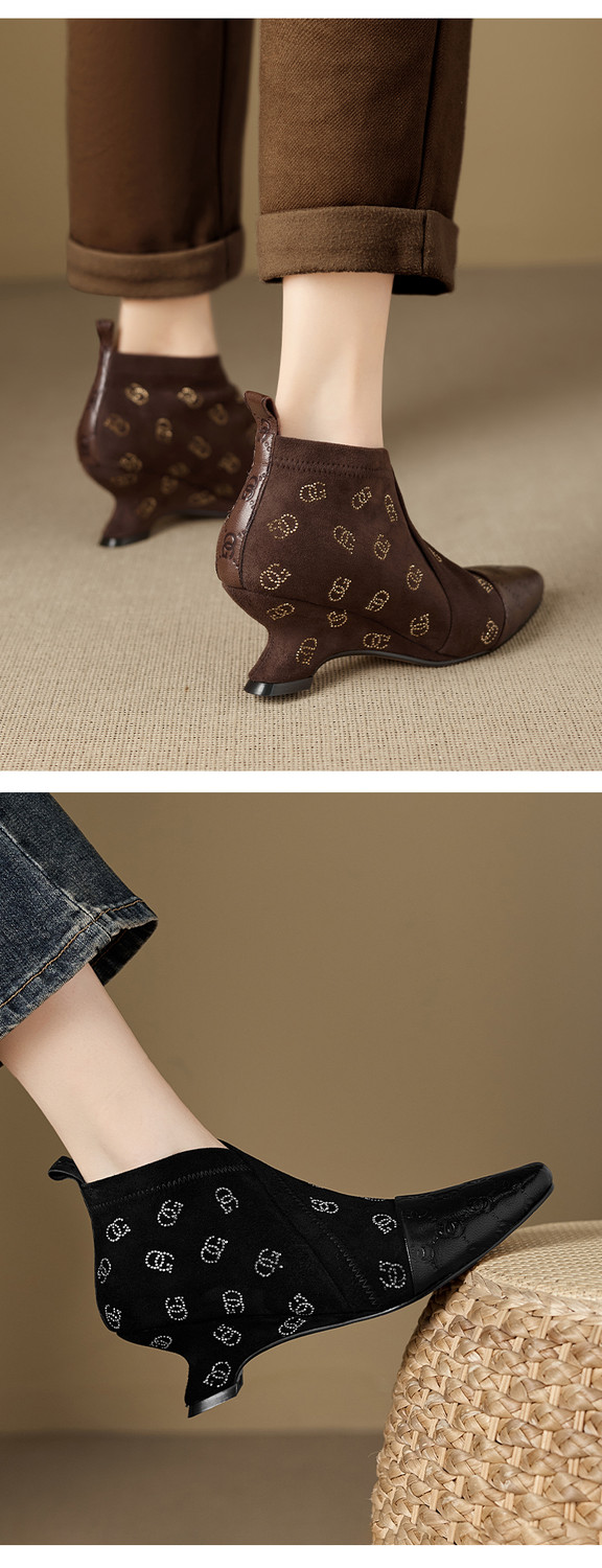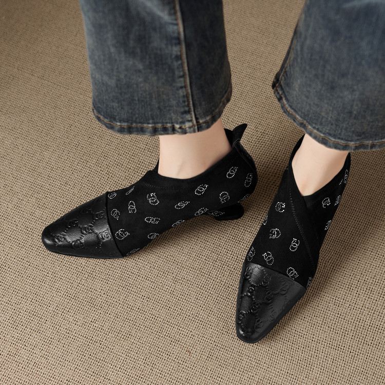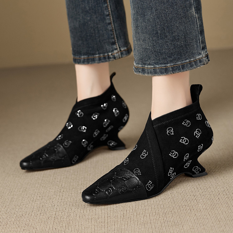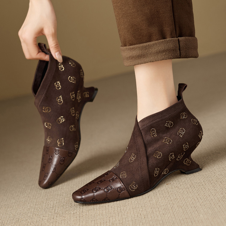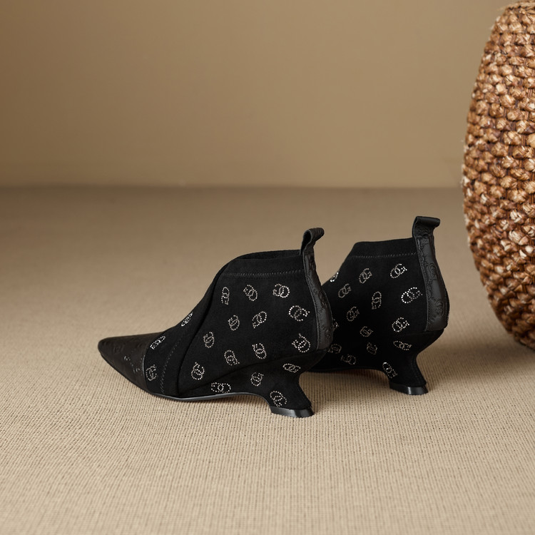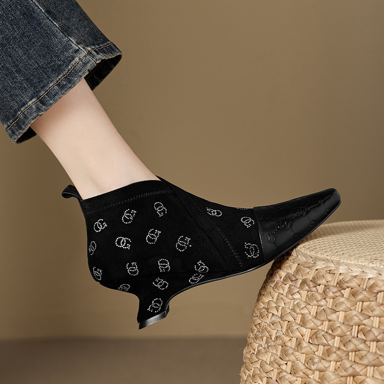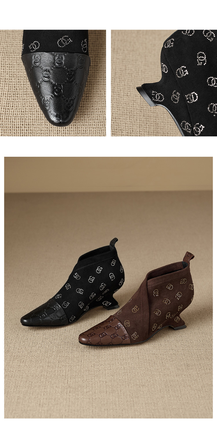 【预售5天】小方头头层压花,羊皮搭配弹力绒高跟时装靴MBJR&5645