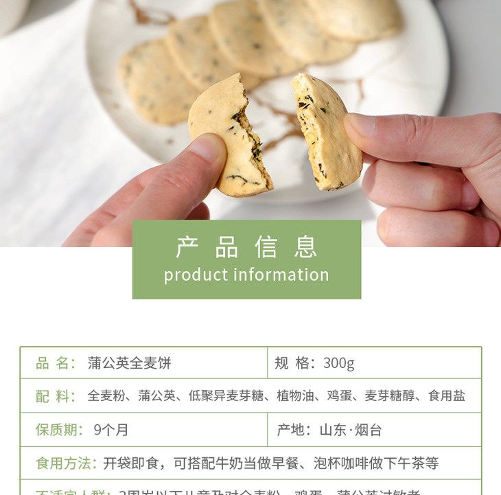 【糕饼精选】禾春元食品|蒲公英全麦饼 小麦遇见婆婆丁 零添加 入口清香 酥性甘脆 营养代餐