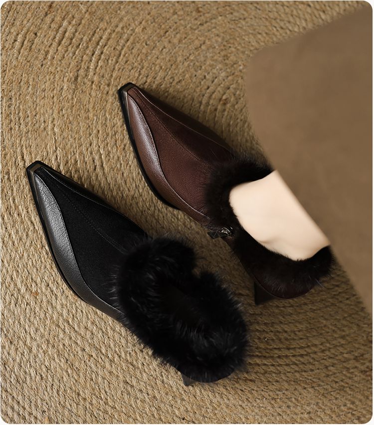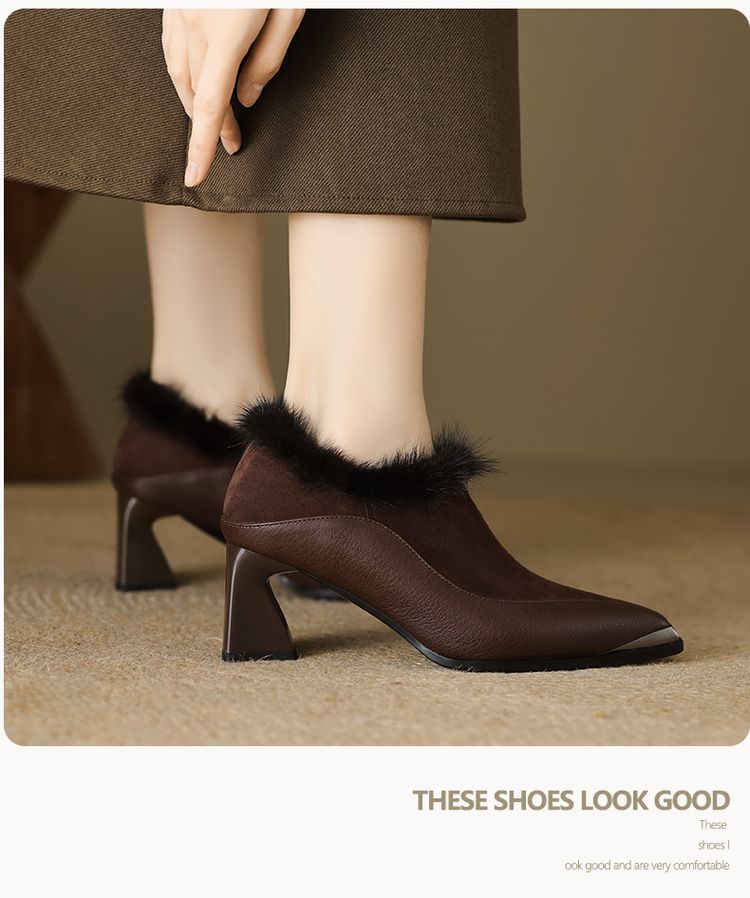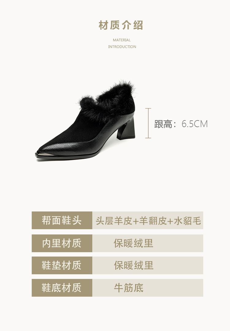 鞋面材质:头层牛皮+羊翻皮+水貂毛