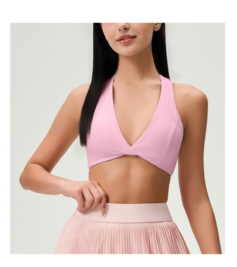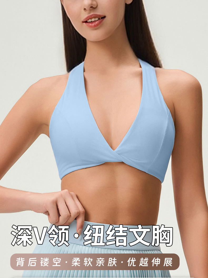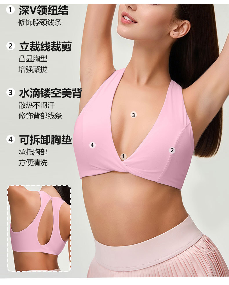 跃牌【美西西系列】性感深V领低胸扭结挖空美背运动内衣防震健身瑜伽服文胸 WX-扭结文胸