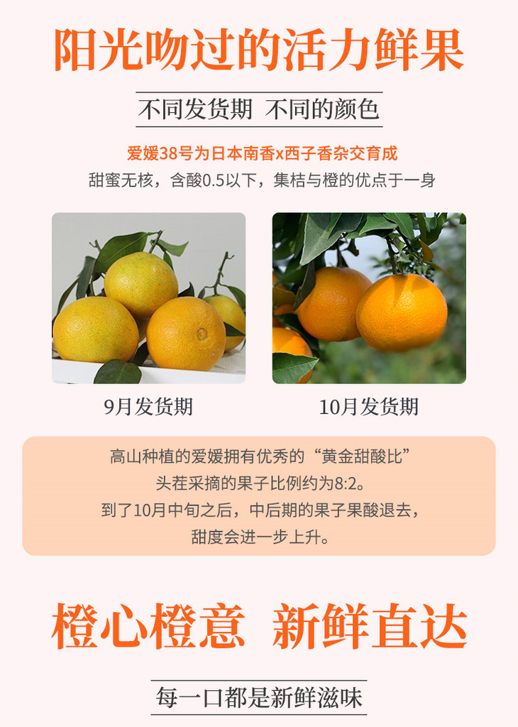 【果蔬精选】爱媛38号果冻橙 新鲜采摘 皮薄肉嫩果香浓郁 酸甜多汁 可以吸着吃的鲜橙 无核无渣老少皆宜