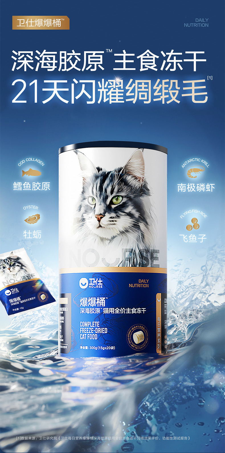 卫仕爆爆桶深海主食冻干猫粮全价 南极磷虾×鳕鱼×飞鱼子