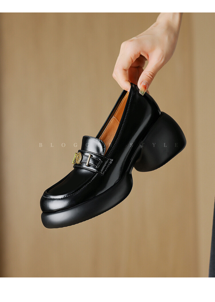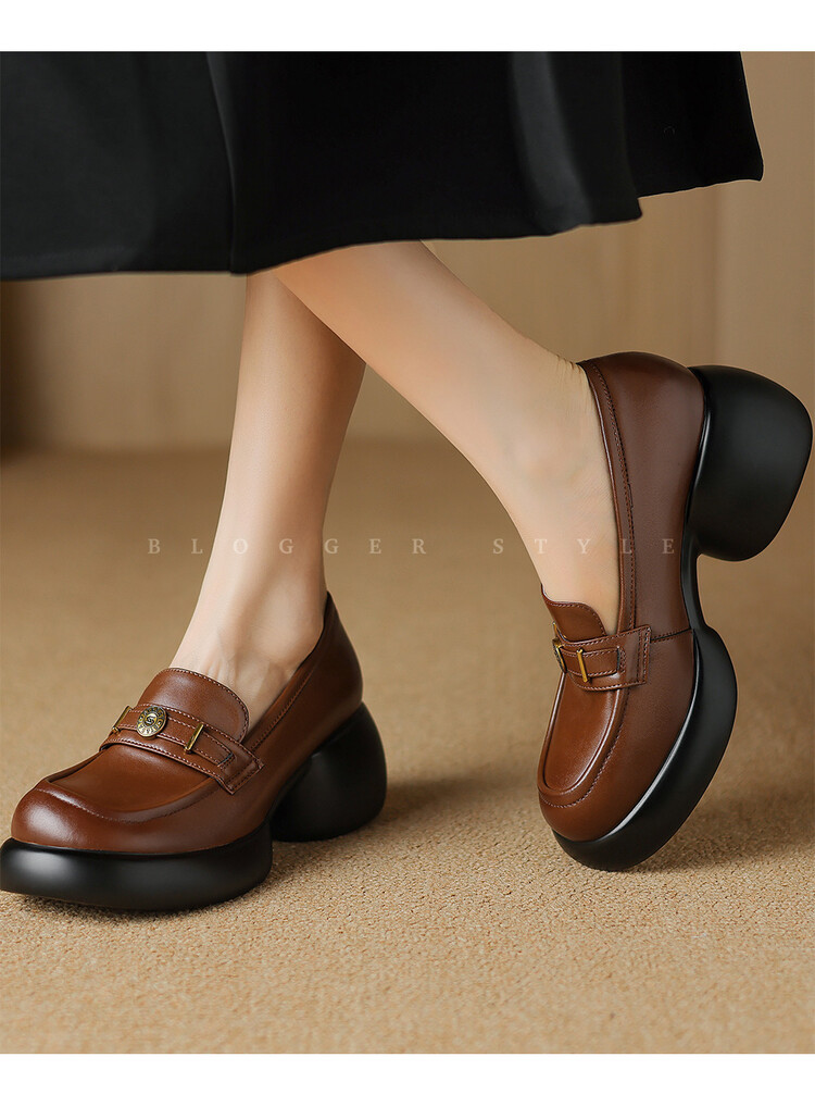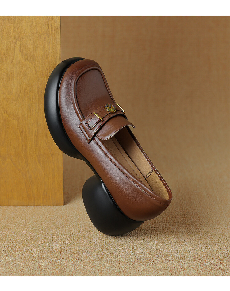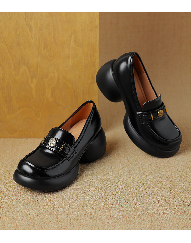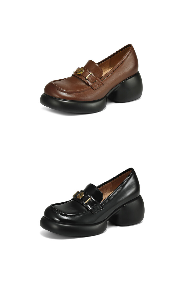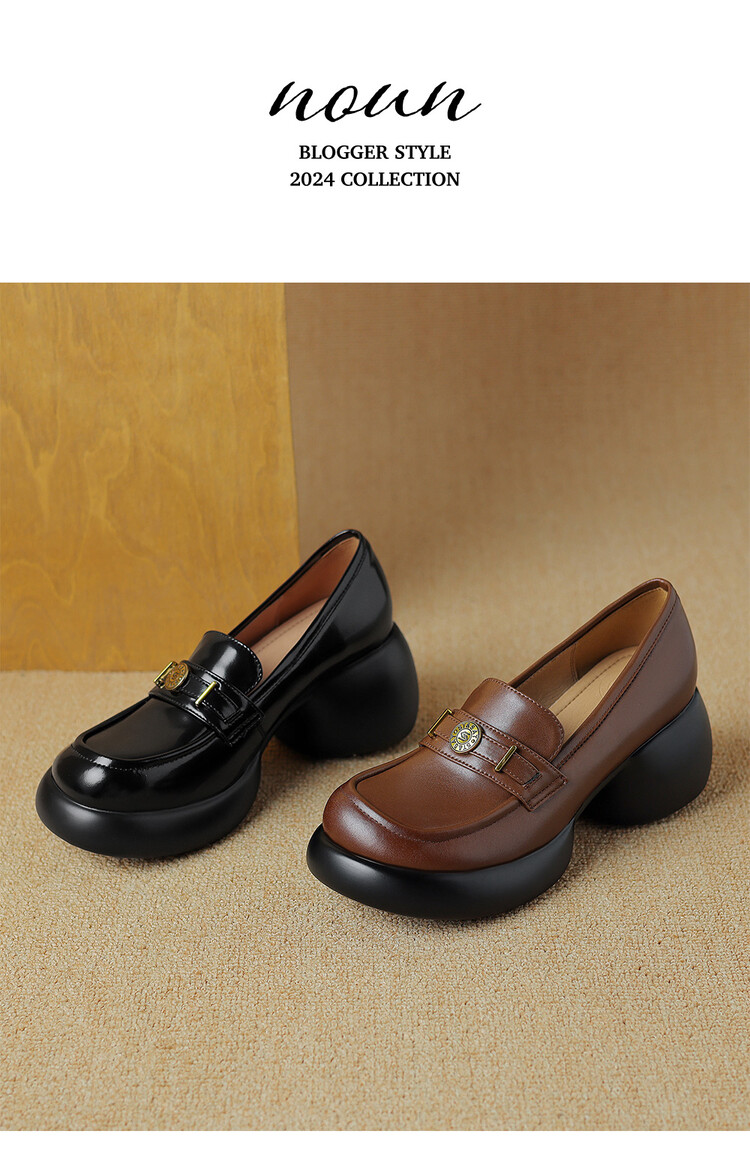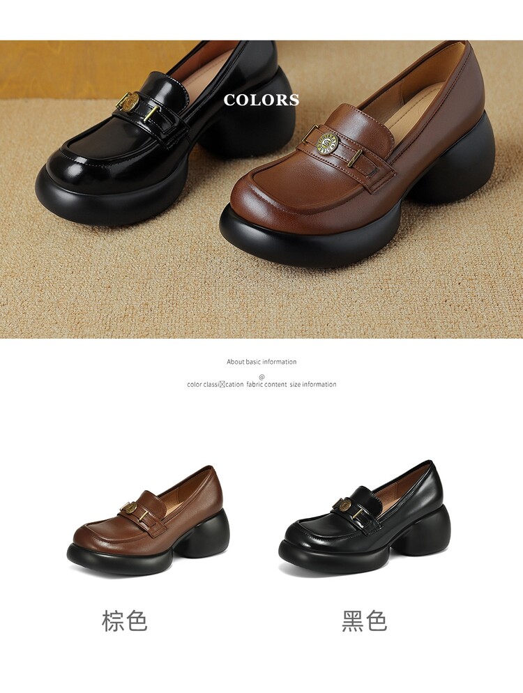 【预售5天】英伦风厚底小皮鞋女真皮圆头松糕鞋秋季复古高跟单鞋DTN&B369-3