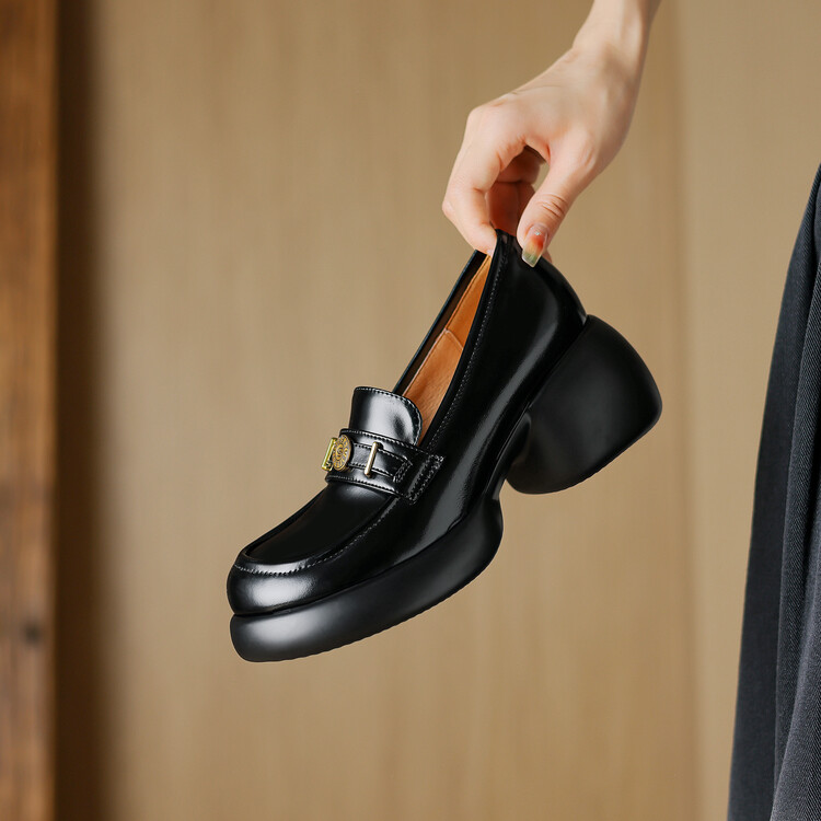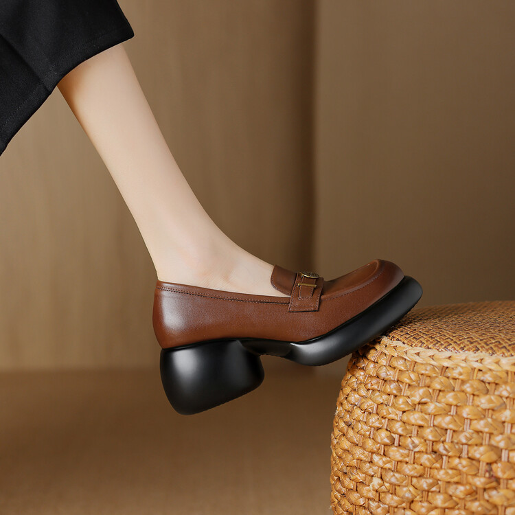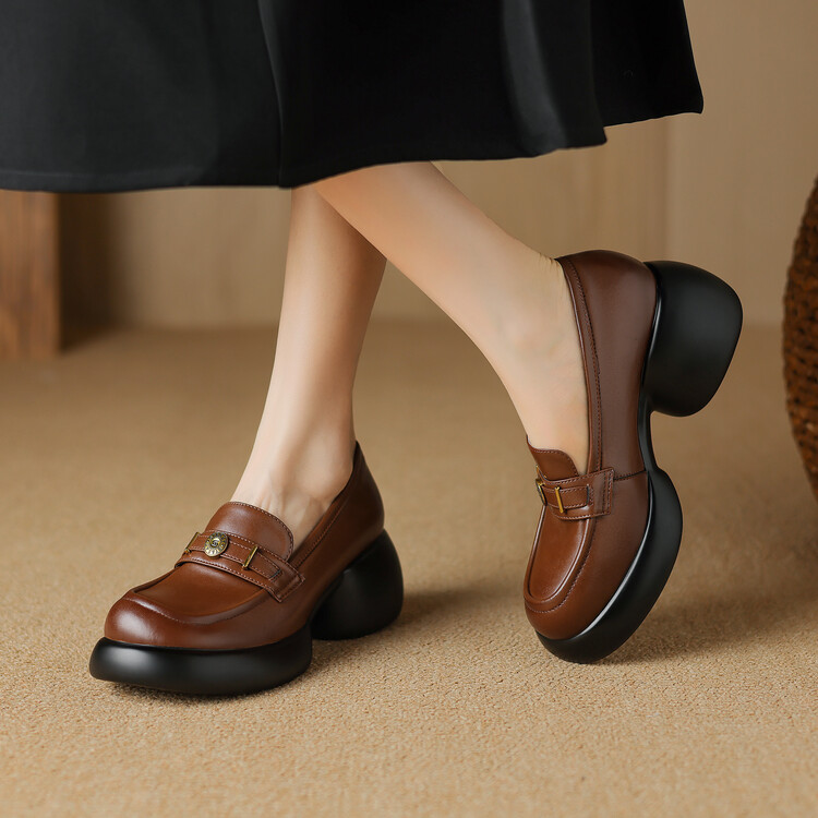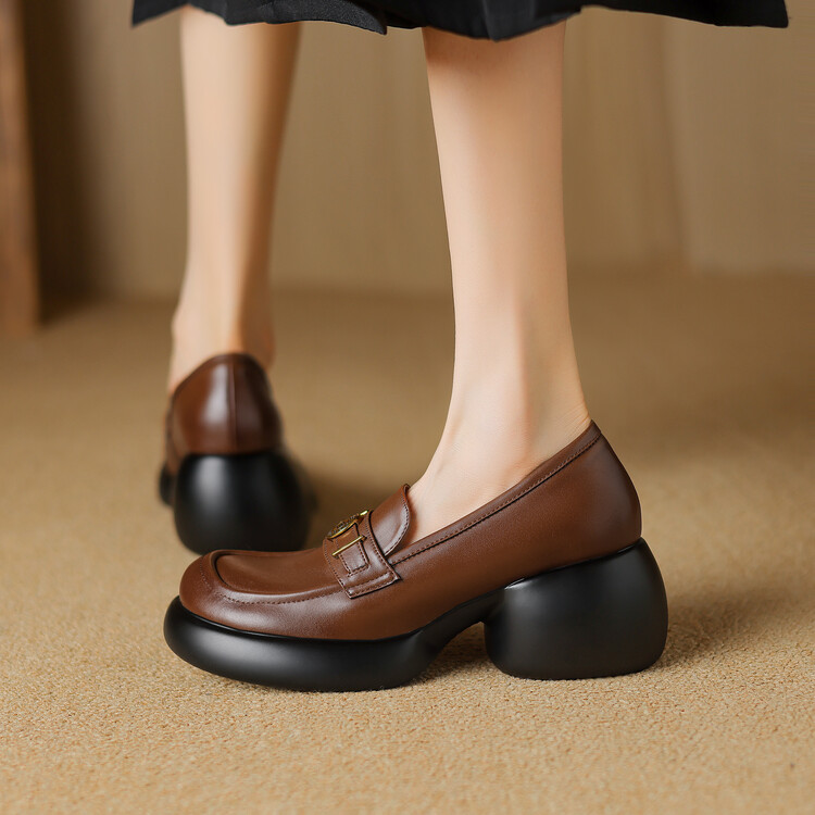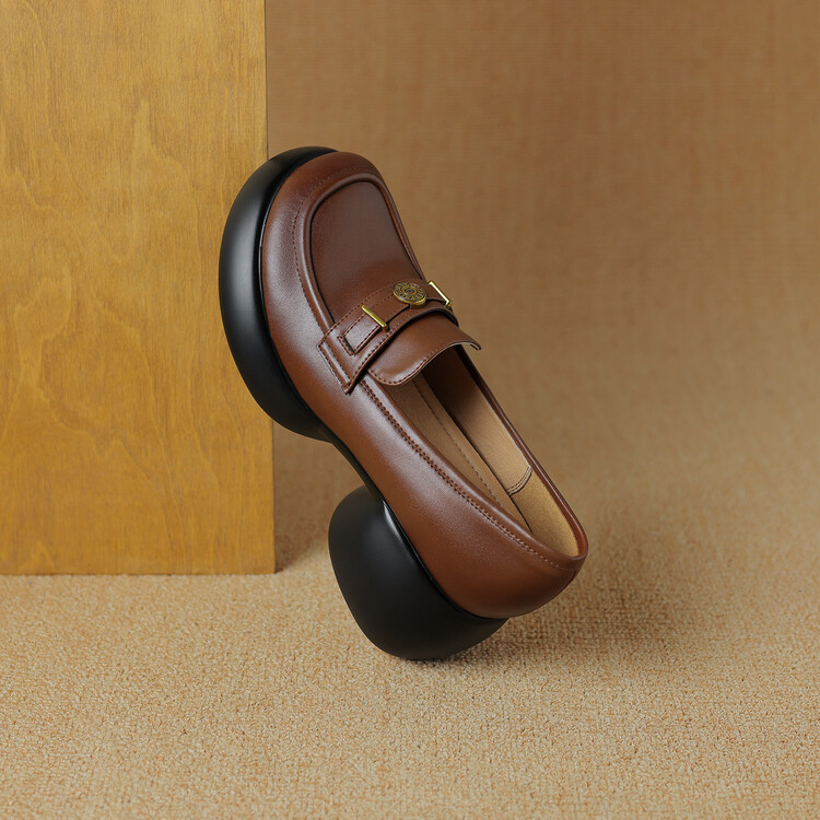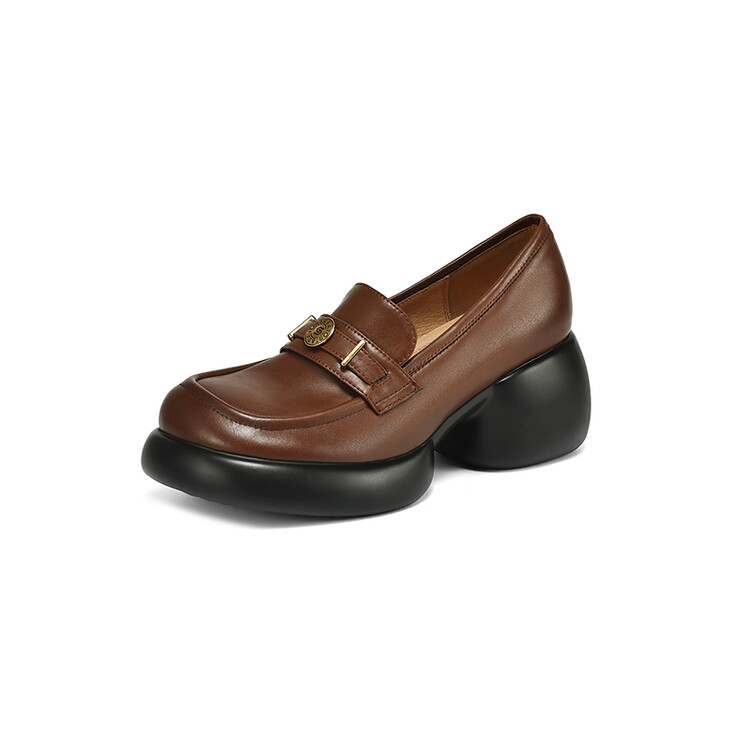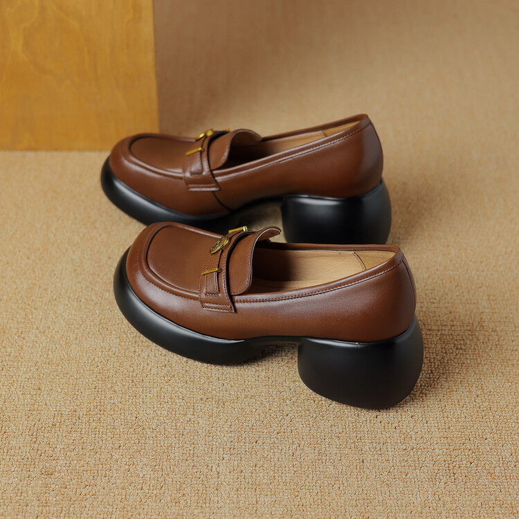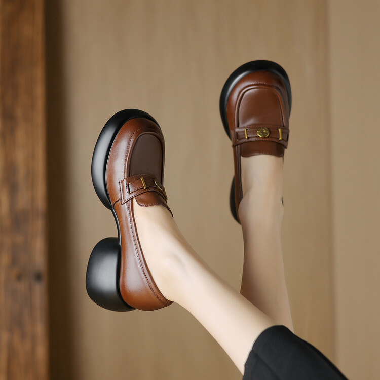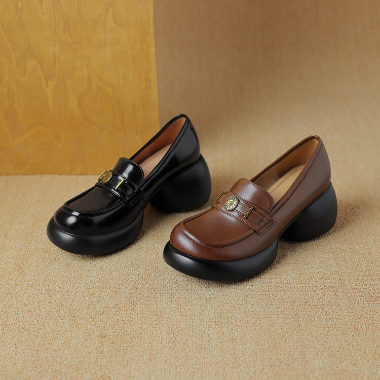 【预售5天】英伦风厚底小皮鞋女真皮圆头松糕鞋秋季复古高跟单鞋DTN&B369-3