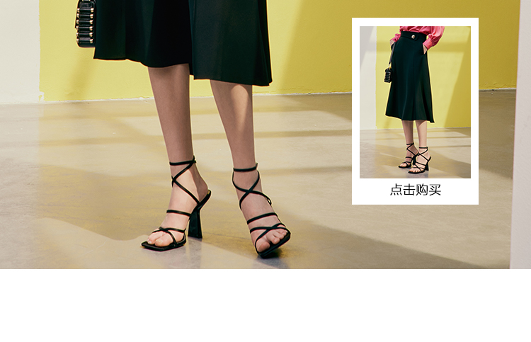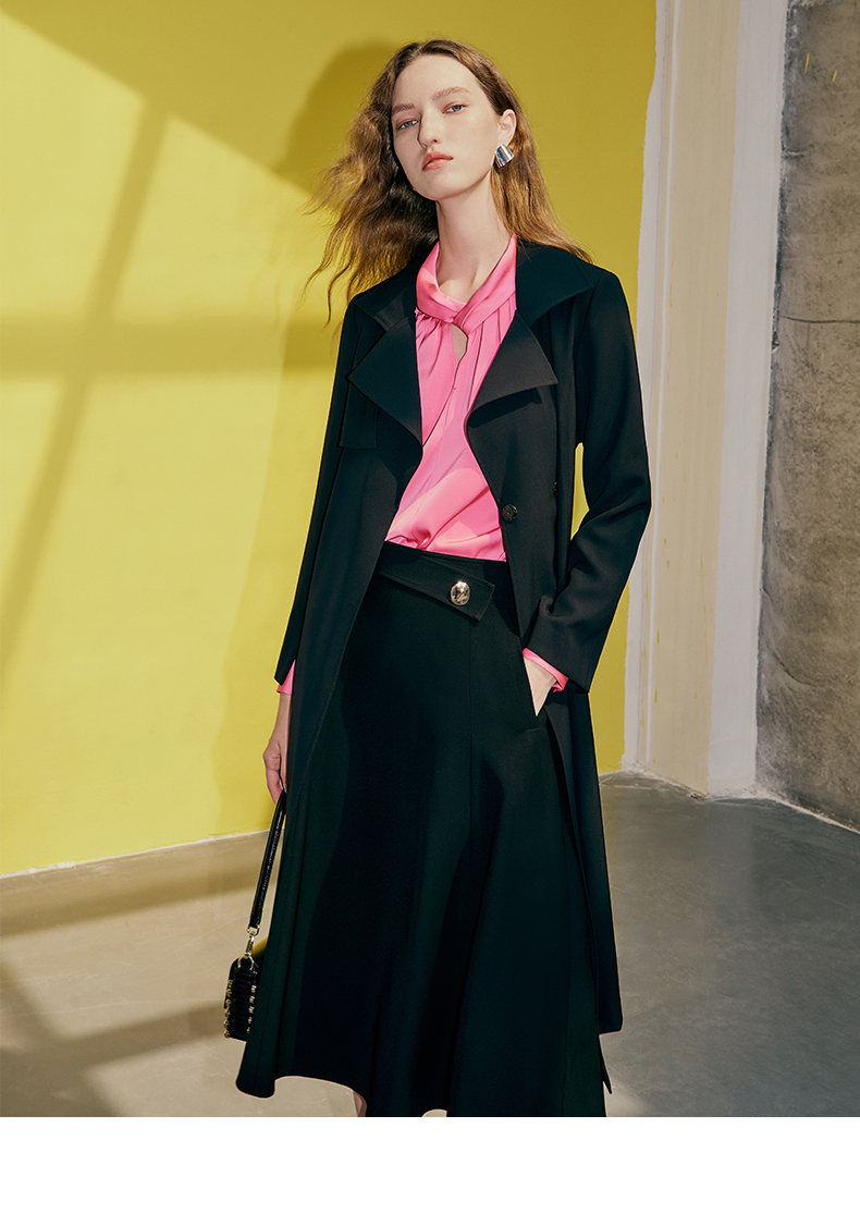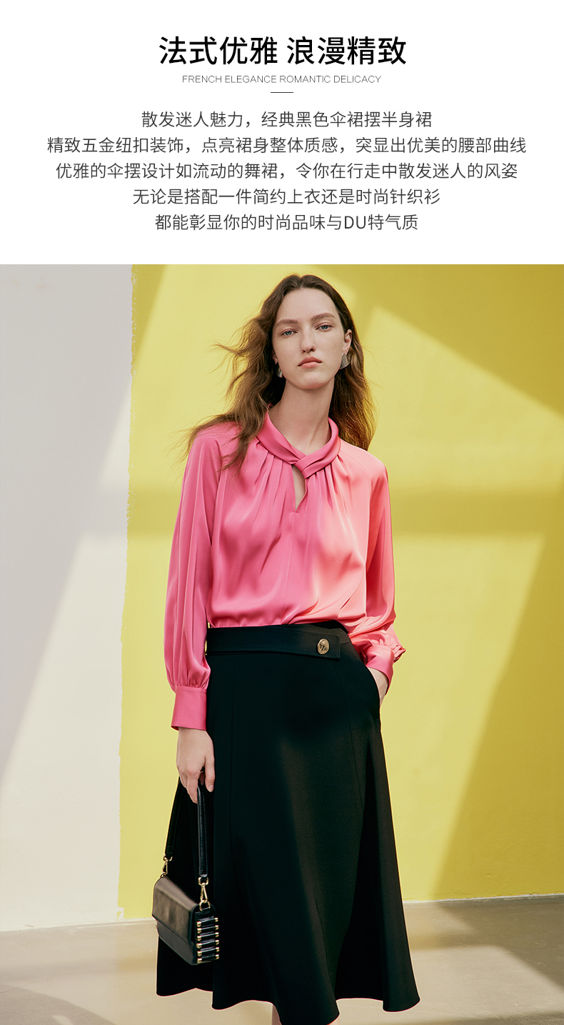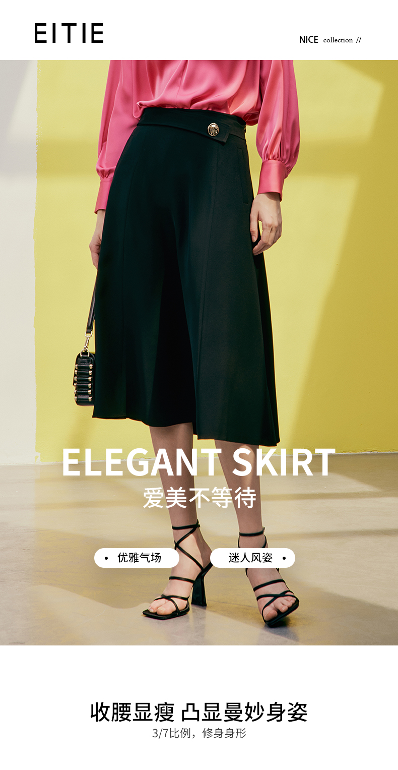 EITIE爱特爱春季新款A字黑色半裙7306005