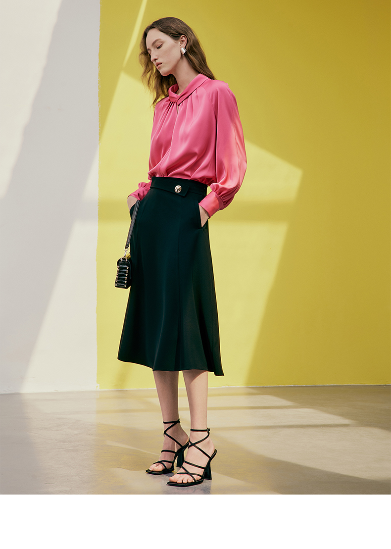 EITIE爱特爱春季新款时尚百搭通勤显瘦垂感伞裙A字半身裙女裙A2206905