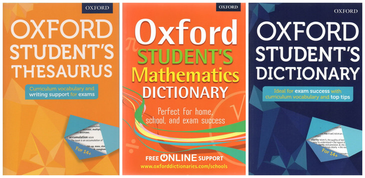 这套牛津词典的适度年龄大概是中学阶段,这个级别里共包含三本:Oxford Student's Mathematics Dictionary,Oxford Student's Dictionary,Oxford Student's Thesaurus: