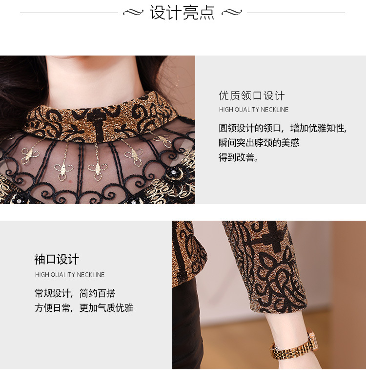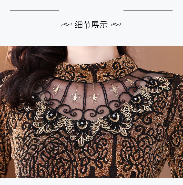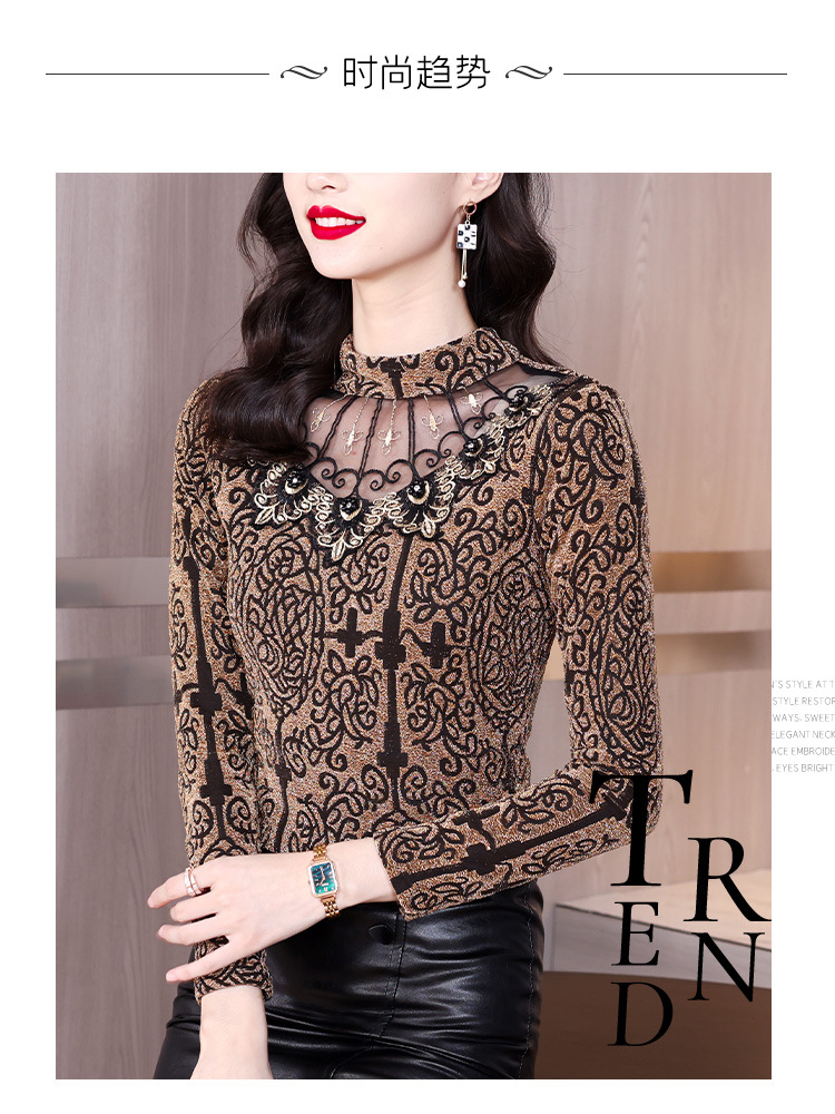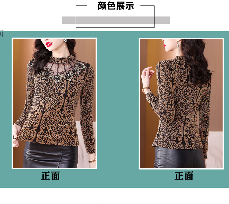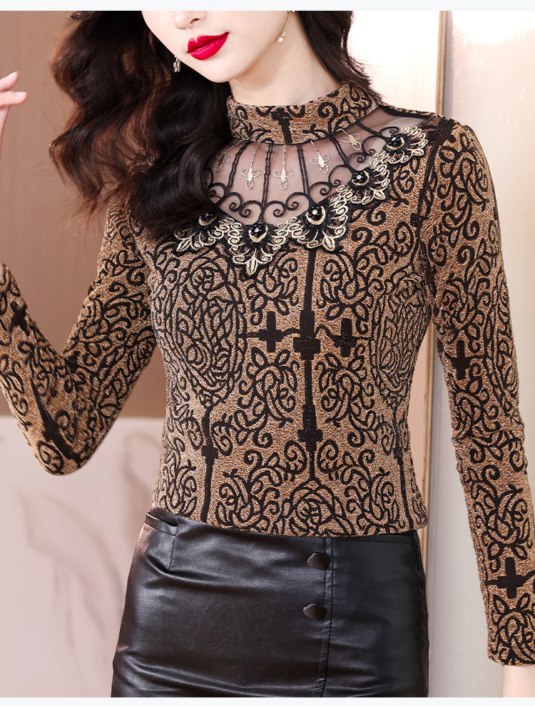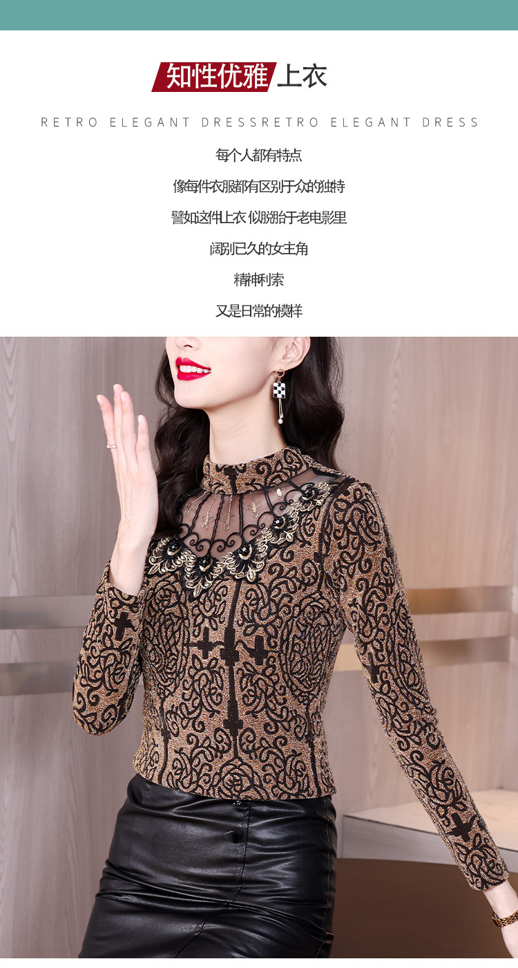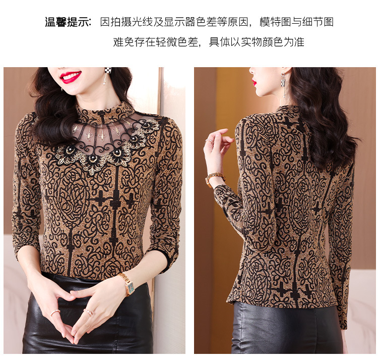 KQL B41N675时尚洋气半高领蕾丝打底衫保暖上衣