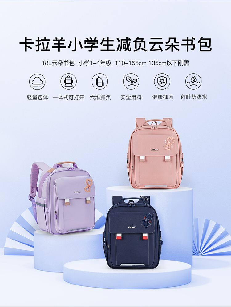 【云朵书包】卡拉羊小学1-3-6年级18L/20L超轻减负云朵背包 星愿 CX2178+CX2616