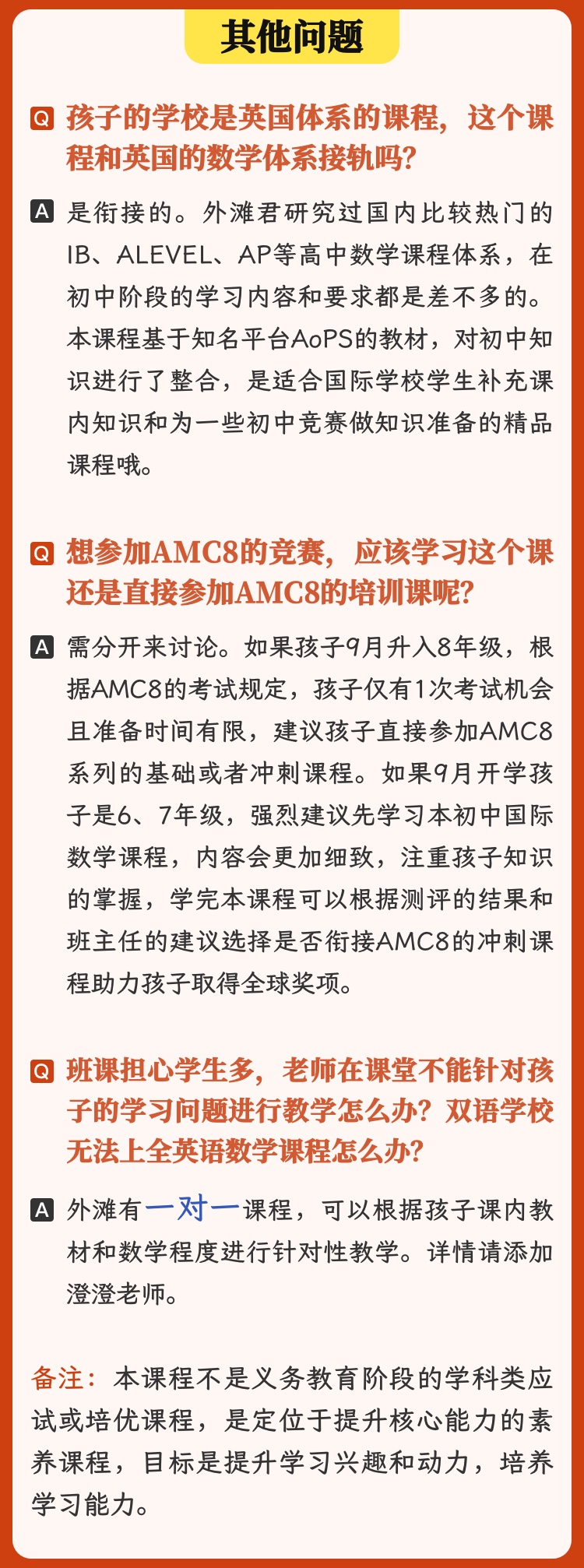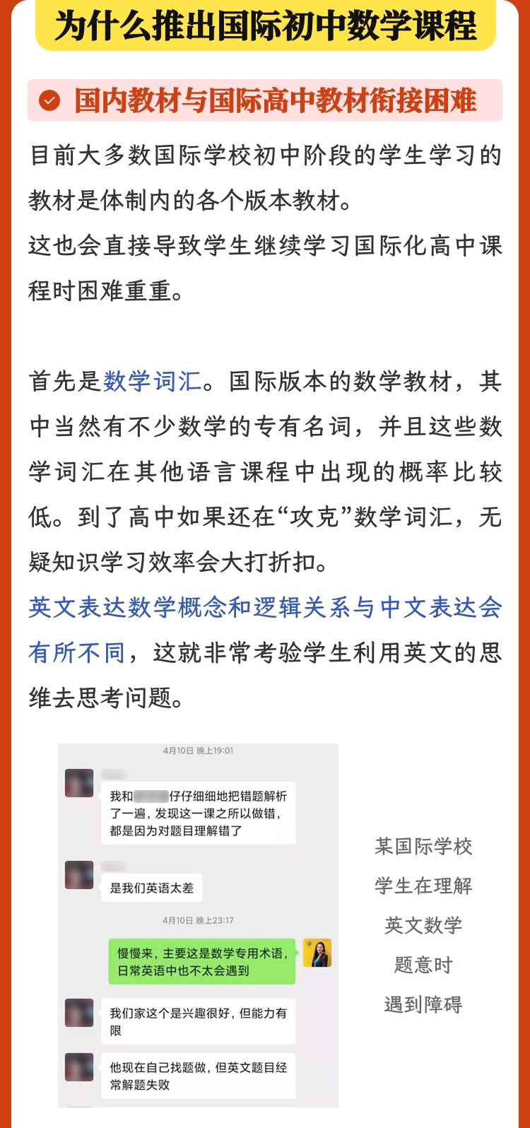 备注:本课程不是义务教育阶段的学科类应试或培优课程,是面向国际化学校初中国际课程