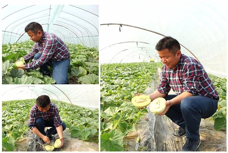 看到甜瓜开花结果 他也开心的笑了