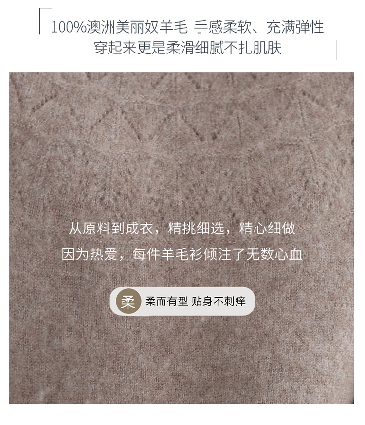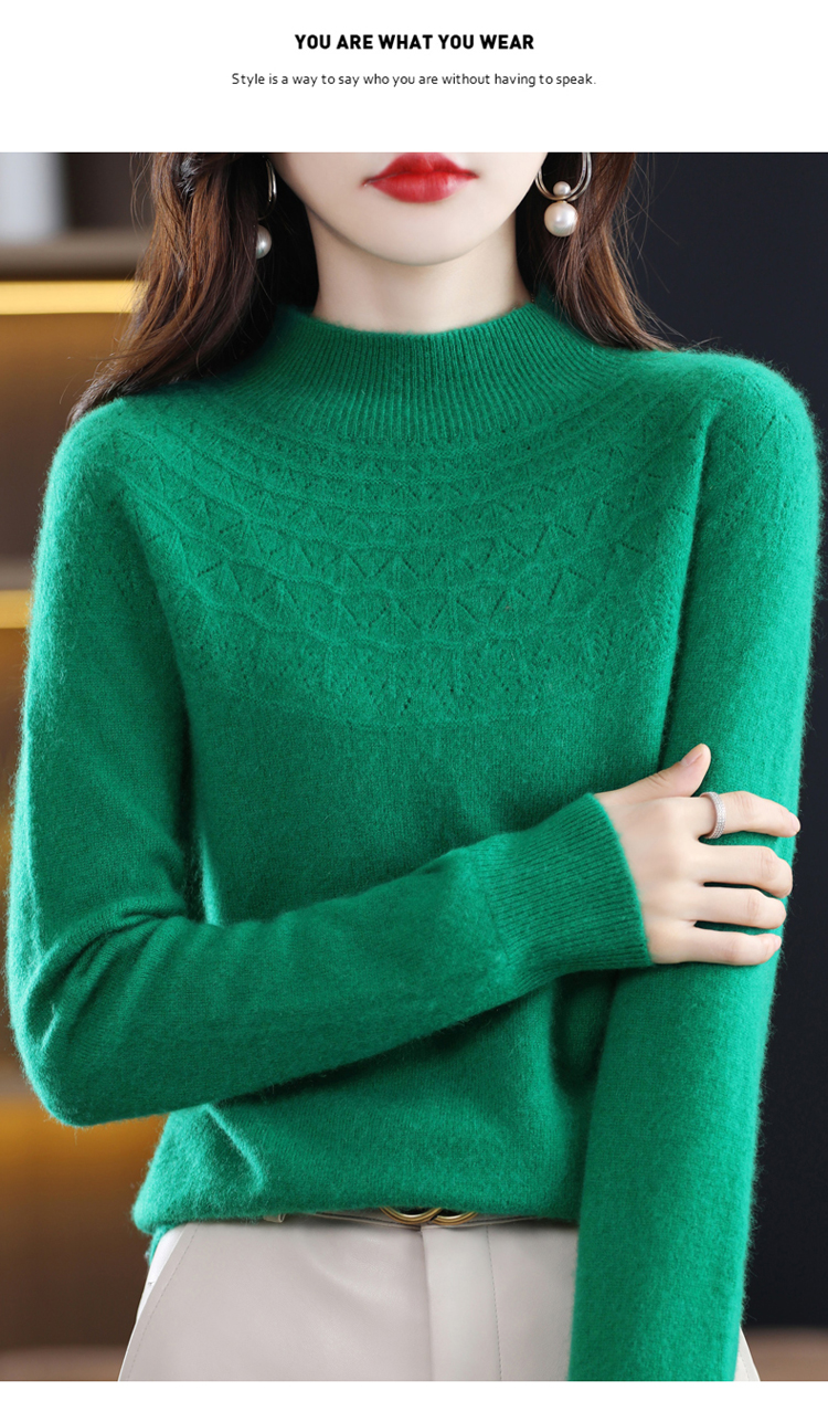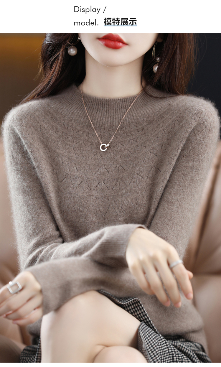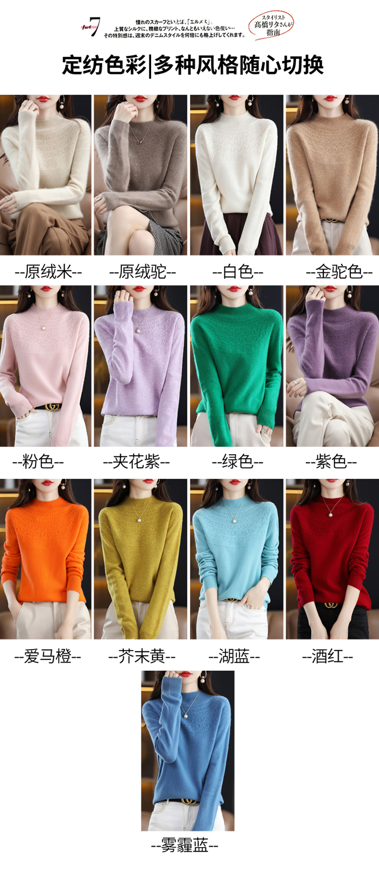 TS-003 100羊毛衫女半高领显瘦毛衣无缝羊绒针织打底衫秋冬镂空宽松上衣