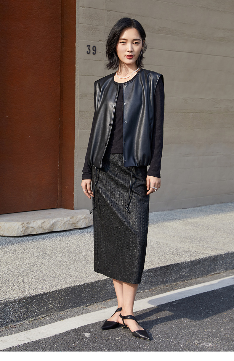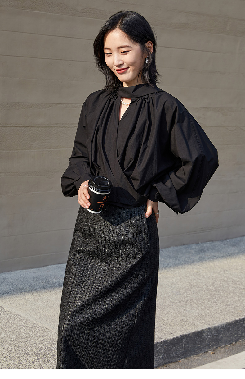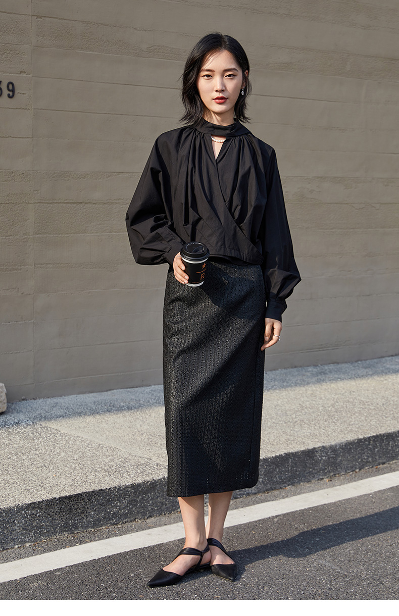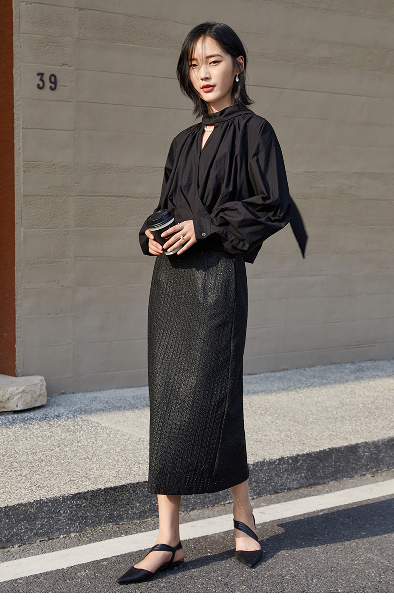 秋季新款黑色亮丝半身裙女 中长款修身显瘦包臀一步裙