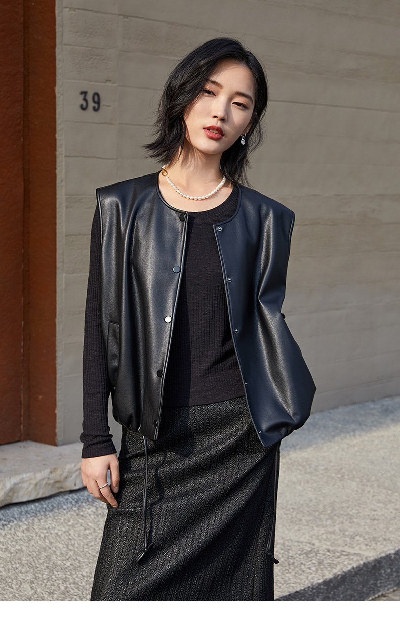 奶杏色连帽短外套女 春秋款宽松显瘦拉链上衣 肌理感休闲夹克