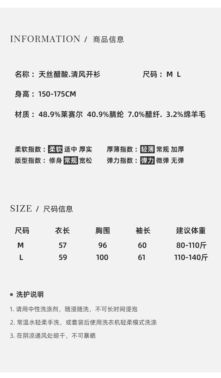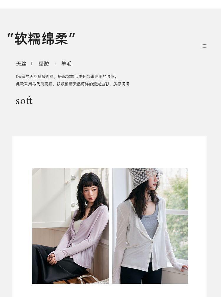 【2025春季新品】天丝醋酸羊毛V领开衫 莫兰迪色系贝壳扣 莱赛尔罩衫微透 薄款外套纽扣衫长袖上衣