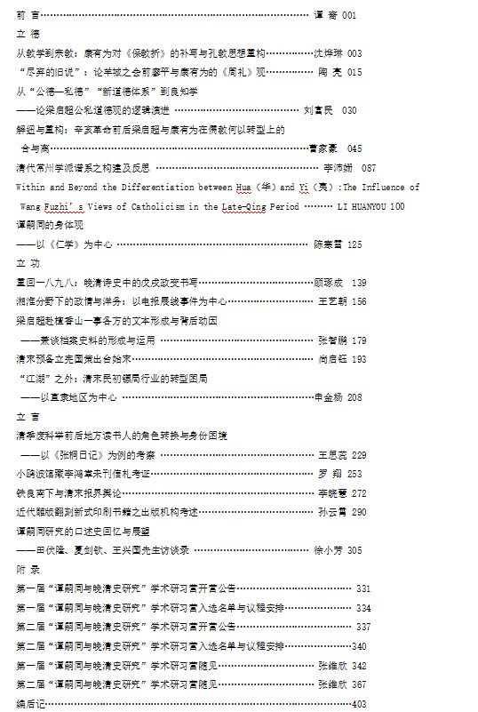 本书是第一、二届“谭嗣同与晚清史研究”学术研习营入选成果的选集,共收文章20篇,其中一些在《史林》等核心期刊发表,一定程度上代表了研究水准。该研习营创办于2023年,由湖南省谭嗣同爱国公益基金会联合全国高校中晚清史研究重镇共同举办,前两届分别召开于湖南大学岳麓书院和复旦大学历史学系,延请国内权威学者十余名担任导师,从海内外百余篇年轻学人研究成果中严格遴选,并通过研习营组织的学术交流打磨提升,代表了晚清史研究的前沿水平。附录所收本活动的观感记,翔实记录了这一融合了论文讲评、游学、圆桌讨论等方式的创新型学术活动筹办、举行、内容、反响等全貌,使本书在汇集学术前沿动态的同时兼具学术史价值。